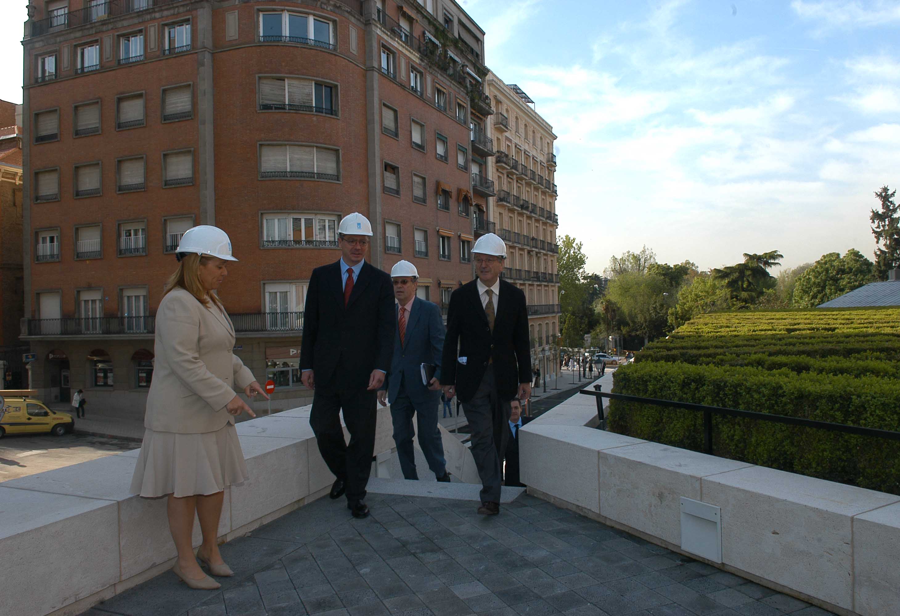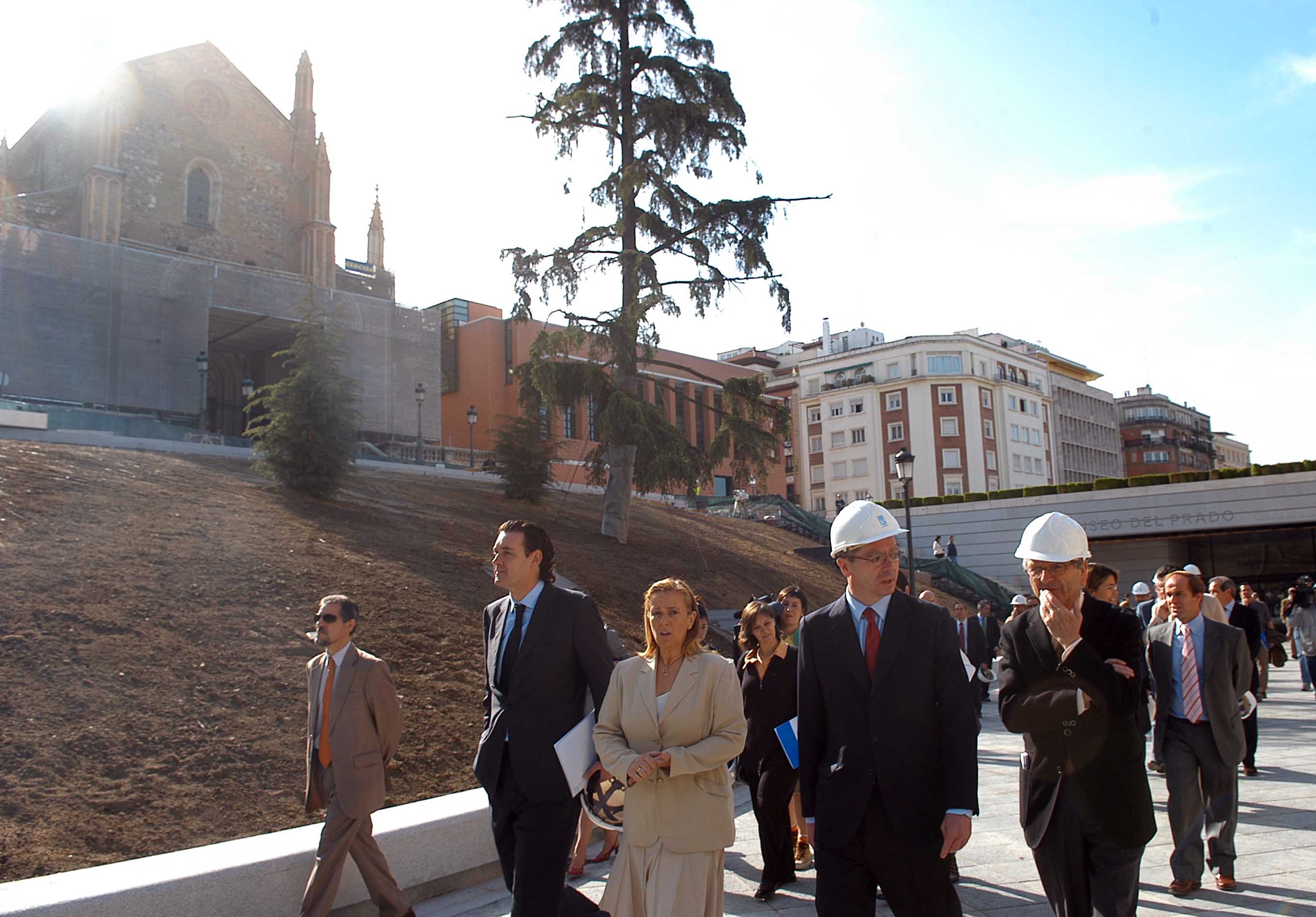 El alcalde de la Ciudad, Alberto Ruiz-Gallardón, acompañado por la concejala de Urbanismo, Pilar Martínez, ha visitado hoy las obras de mejora del Eje Prado-Recoletos. En un acto al que también ha asistido el arquitecto Rafael Moneo, autor de la urbanización del entorno del Museo del Prado, Ruiz-Gallardón ha recorrido esta zona, ha comprobado el desmantelamiento de la gasolinera de la plaza de Neptuno, y ha visitado la nueva plaza de Las Letras, junto al edificio de Caixaforum./