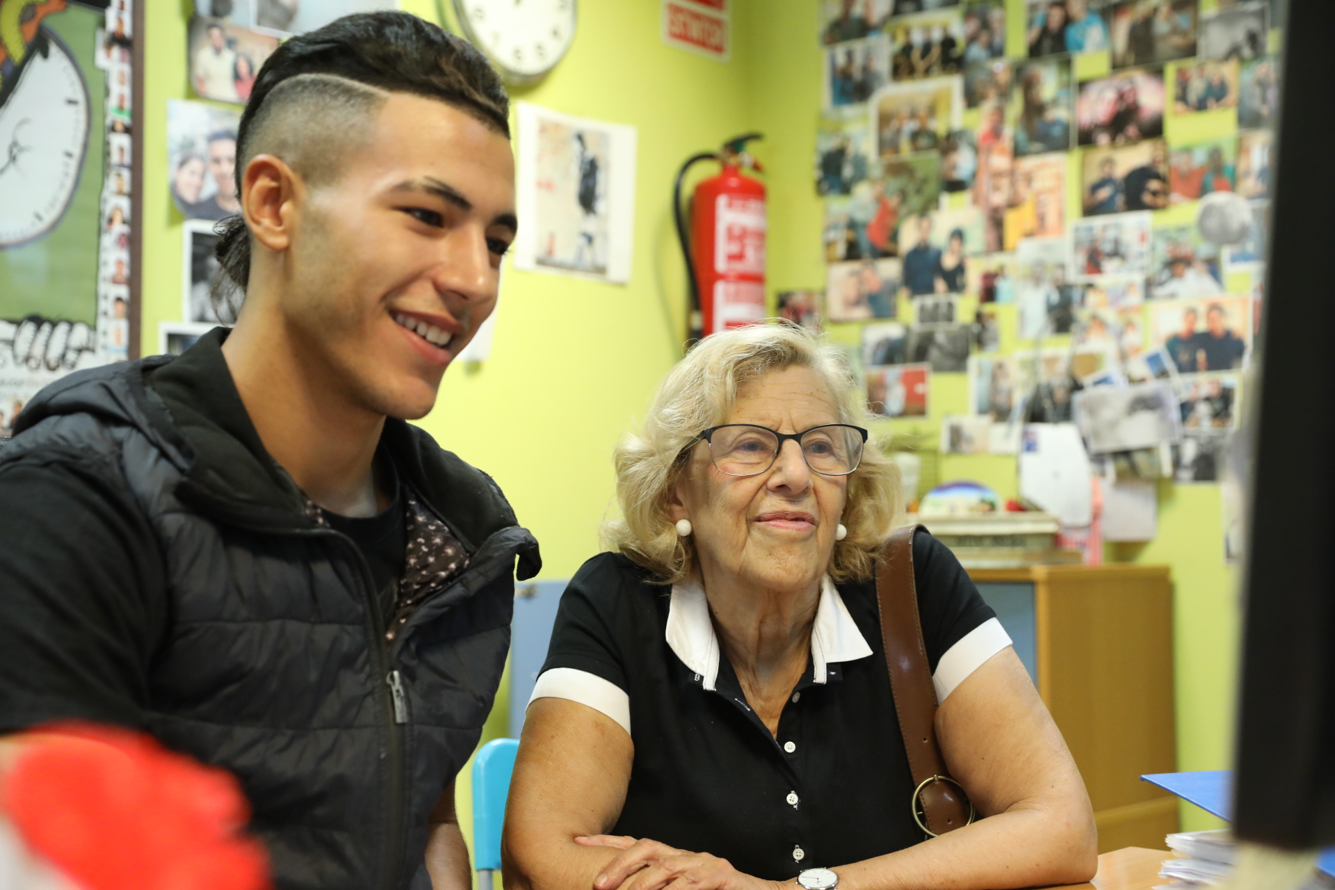 La alcaldesa de Madrid, Manuela Carmena, acompañada por la delegada de Equidad, Derechos Sociales y Empleo, Marta Higueras, ha visitado hoy lunes el centro de atención a jóvenes en situación de calle, ubicado en el distrito de Usera. Este dispositivo se enmarca dentro del Programa ASPA. Línea de Autonomía Personal y Tránsito a la Vida Adulta, que lleva a cabo el Ayuntamiento de Madrid para atender a jóvenes de 18 a 21 años que se encuentran en riesgo de exclusión, que viven en alojamientos inadecuados, inseguros (casas ocupadas, albergues, etc…), sin apoyos ni recursos personales ni económicos. En lo que va de año se han atendido a 73 jóvenes.