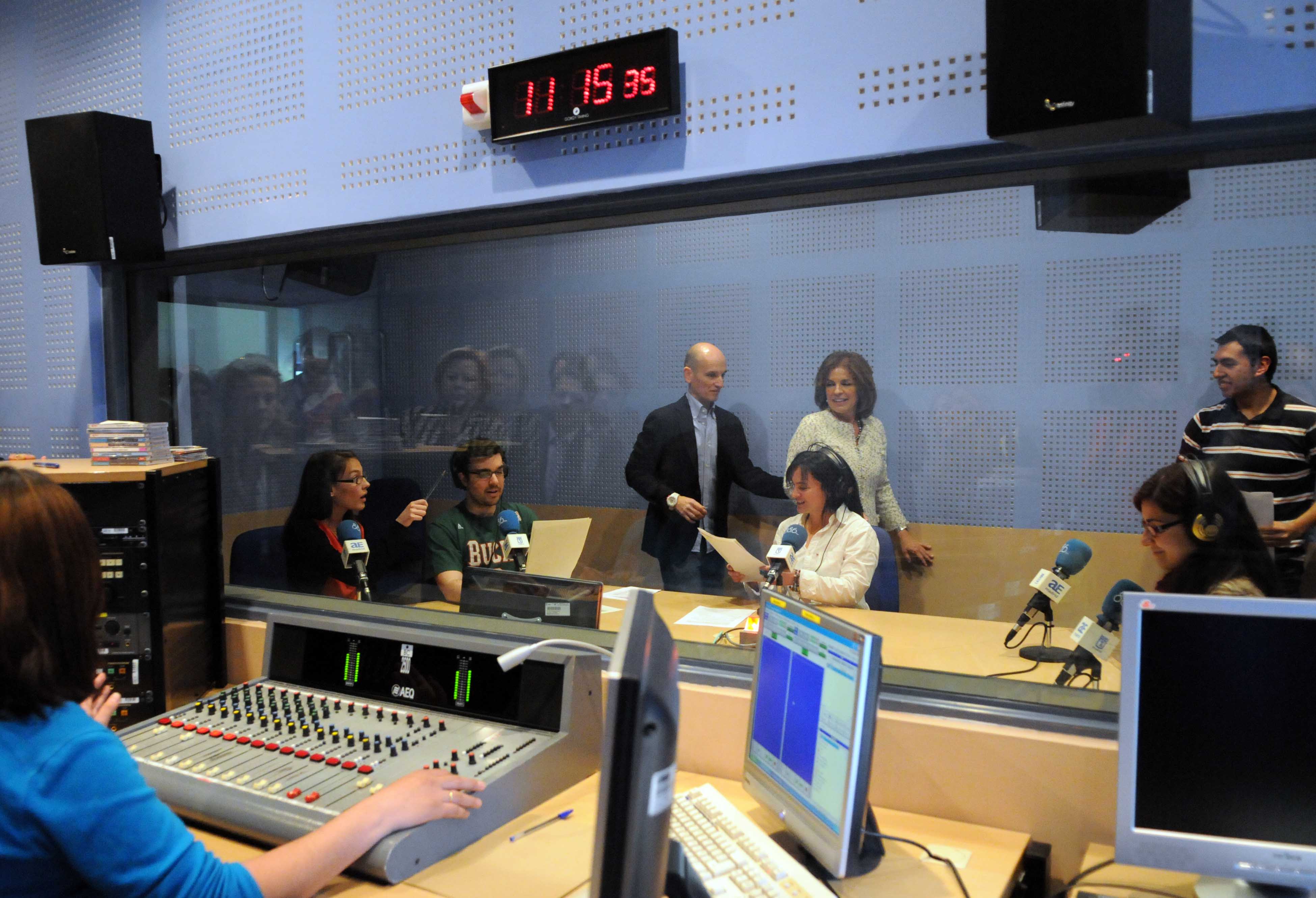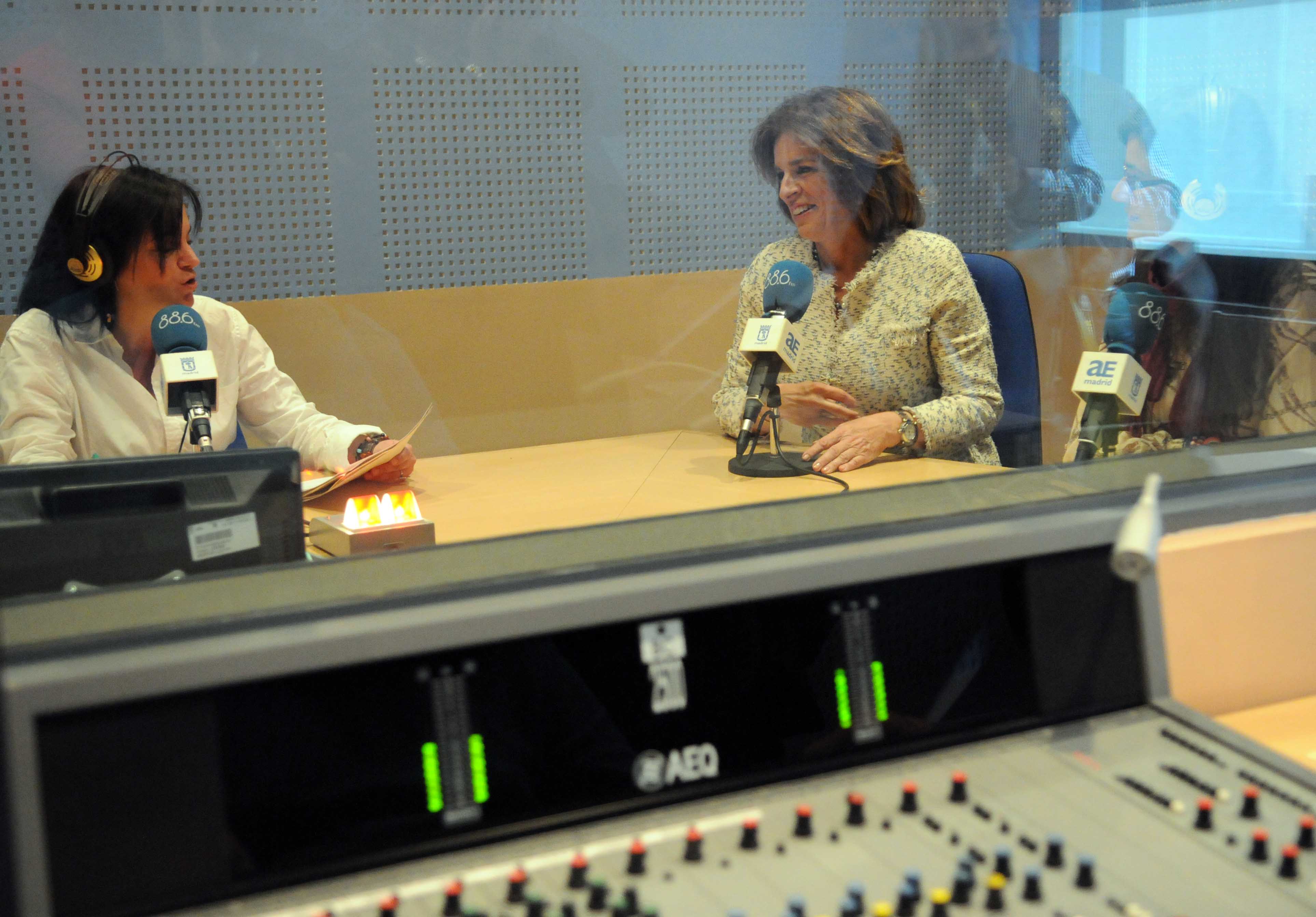 La alcaldesa de la Ciudad de Madrid, Ana Botella, ha recorrido esta mañana el Centro de Formación de Barajas de la Agencia municipal para el Empleo. "Madrid resiste mejor la crisis", manifestó posteriormente en el estudio de radio que posee el centro para los alumnos del taller de radio.