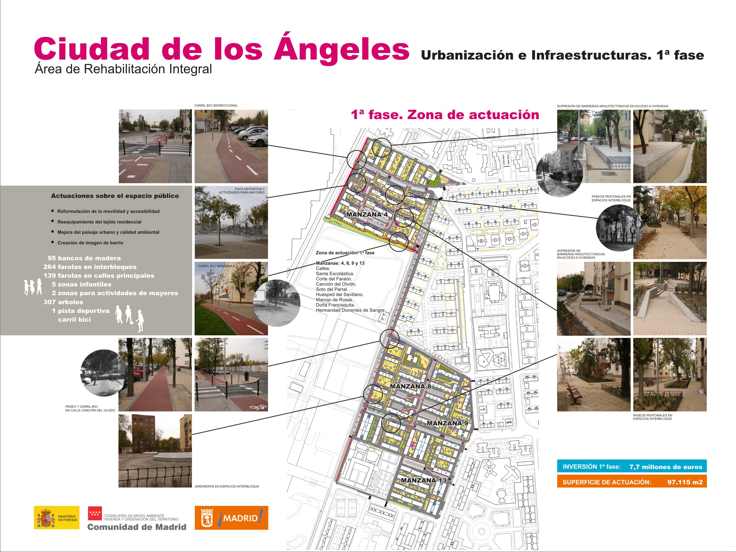 Para abordar esta problemática, se van a invertir hasta 2011 en el Área de Rehabilitación Integral de Ciudad de los Ángeles 68,5 millones de euros, de los cuales 51,9 permitirán mejorar la habitabilidad, accesibilidad y sostenibilidad de las viviendas, y 16,5 para modernizar sus infraestructuras. El Ayuntamiento de Madrid aporta 32,2 millones de euros, el 47% del total, destinándose 21,6 millones a vivienda y 10,5 a infraestructuras. El Ministerio de Vivienda participa con 17,7 millones de euros, y la Comunidad de Madrid con 18,5 millones.
