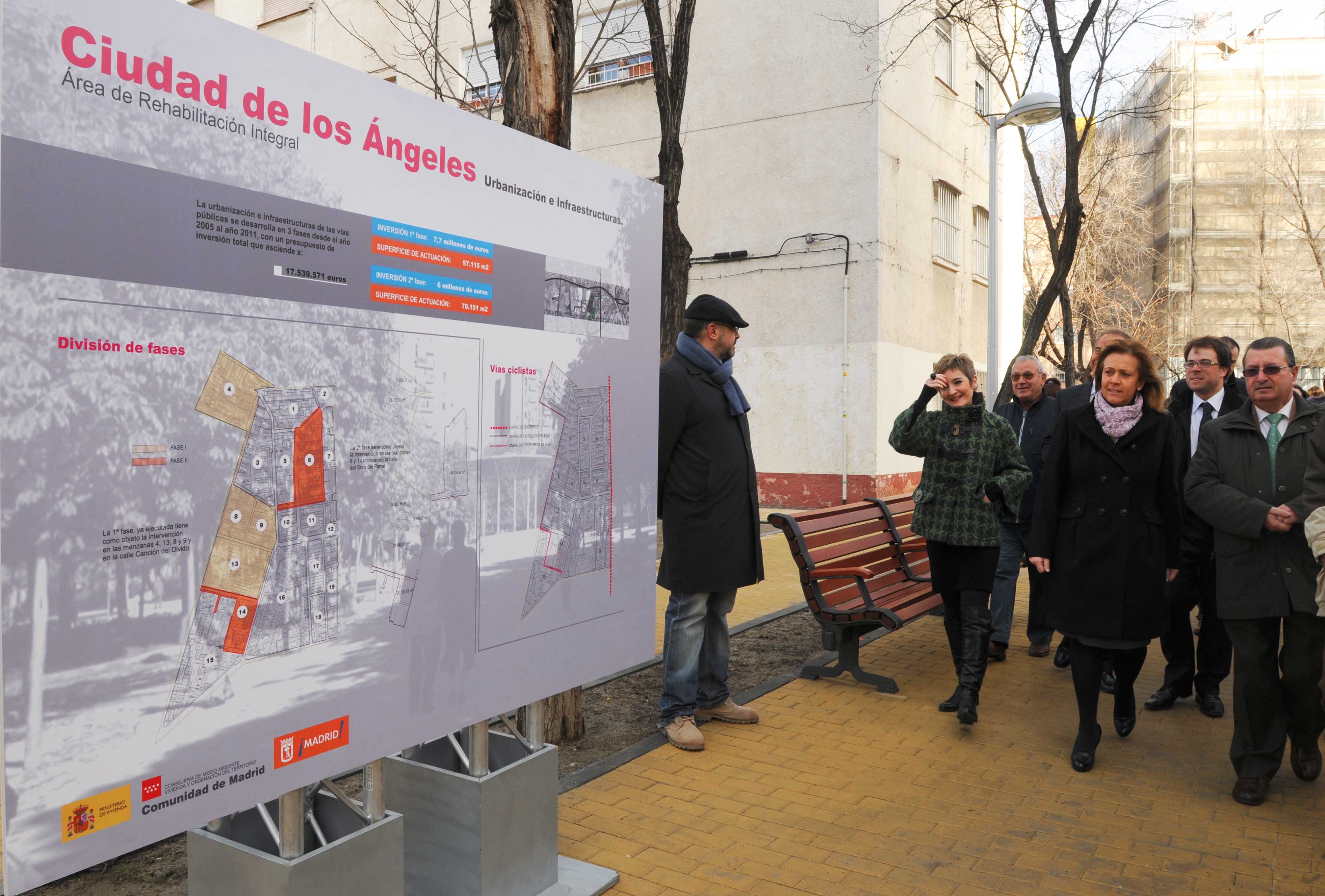 Mejorar la pavimentación de calzadas y aceras, renovar todas las infraestructuras, incorporar nuevo mobiliario urbano y ajardinamiento, eliminar barreras arquitectónicas y crear un carril ciclista que comunique las distintas zonas, han sido los objetivos de la primera fase de las obras de urbanización e infraestructuras que se han realizado en el Área de Rehabilitación Integral de Ciudad de los Ángeles, con una inversión de 7,7 millones de euros. La delegada de Urbanismo y Vivienda, Pilar Martínez, ha efectuado hoy un recorrido por las obras que acaban de finalizar, durante el cual ha puesto de relieve que las actuaciones realizadas configuran un espacio público más integrado, accesible y con mayor calidad urbana y ambiental.