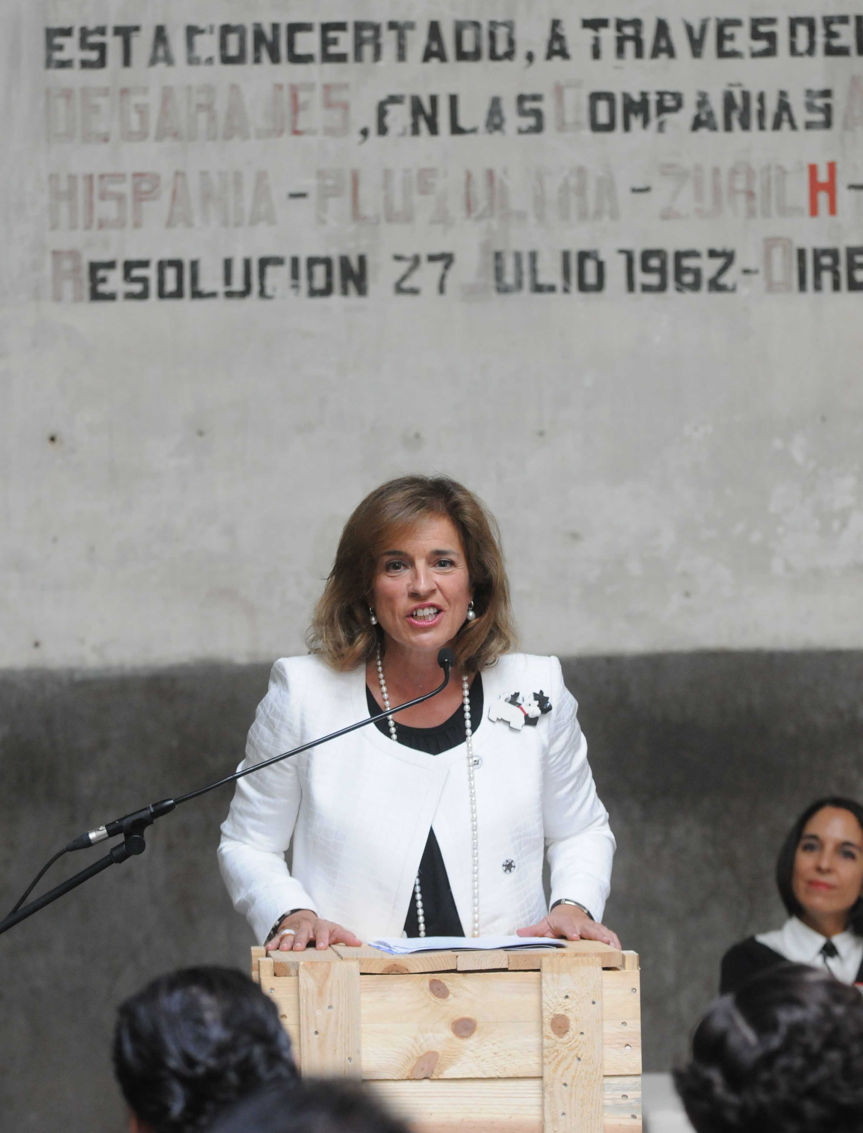 La alcaldesa de Madrid, Ana Botella, durante la presentación hoy de la primera Zona Franca de Industrias Creativas y Culturales (ICC) que se constituye en España. En el acto, que ha tenido lugar en el Barrio de Las Letras, la alcaldesa ha explicado que desde ahora y hasta 2015 todas las pymes pertenecientes a este sector y radicadas en este céntrico y turístico barrio madrileño disfrutarán de exenciones de hasta 5.000 euros anuales en los tributos municipales.