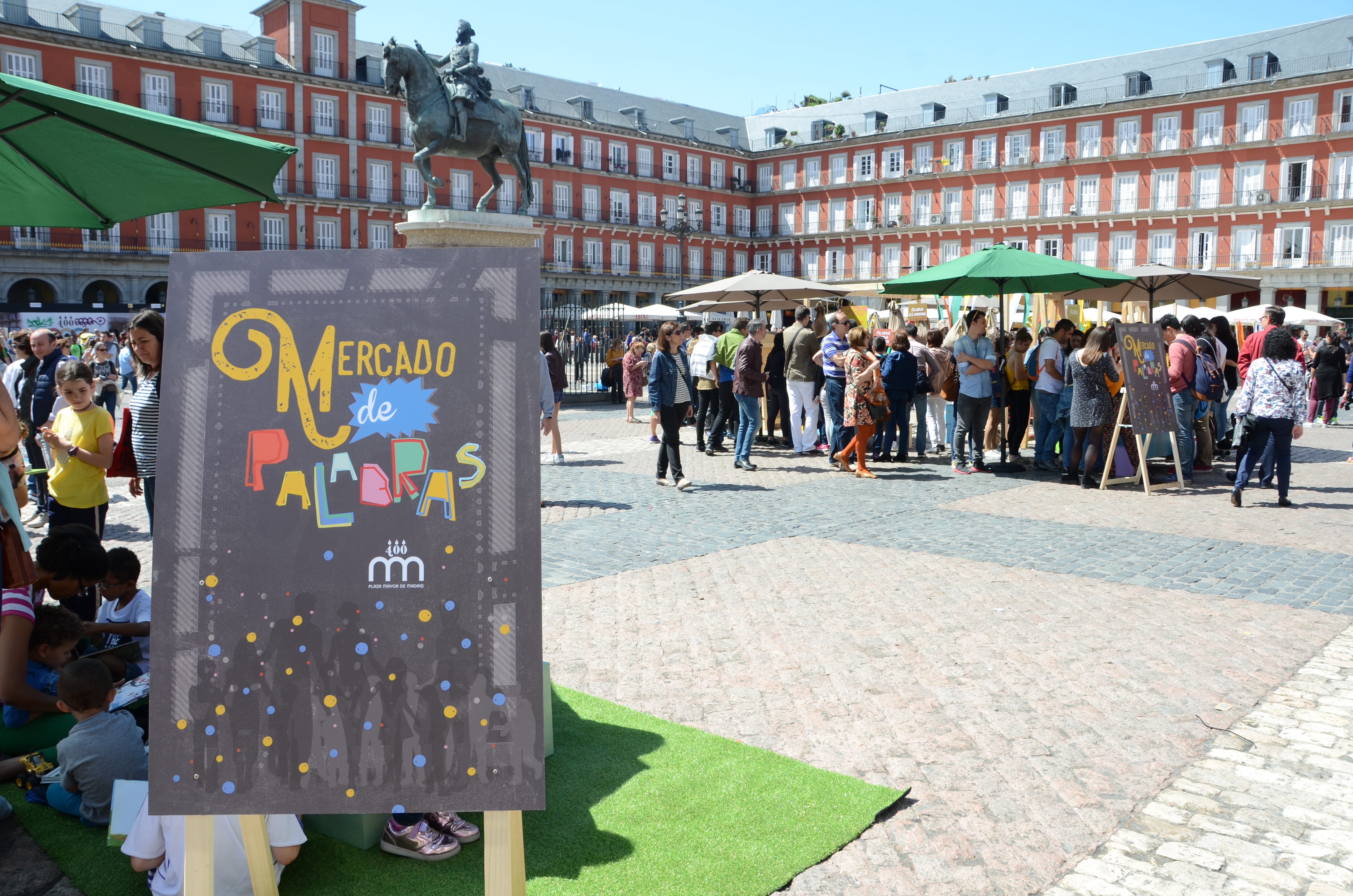 La Plaza Mayor en sus orígenes fue un mercado. En su cuarto centenario quiere recuperar ese espíritu con la palabra como protagonista. Por eso propone esta actividad lúdica y participativa para que toda la familia disfrute con lo que nos hace más genuinamente humanos: el lenguaje. En este particular mercado podremos degustar palabras, utilizar otras de segunda mano, pintarlas sobre tela, intercambiarlas con los transeúntes, hacer cadenas con ellas, narrar historias y escuchar cuentos. Niños partir de 6 años y adultos.