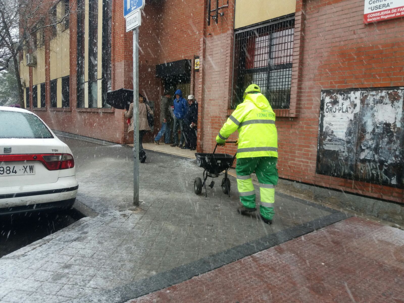 - Por la tarde se ha reforzado el servicio para retirar la nieve, hacer caminos en aceras y esparcir más sal con prioridad para los puntos de especial afluencia