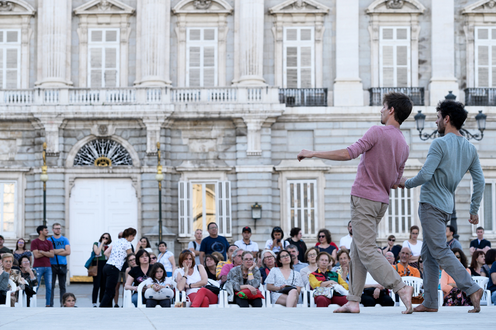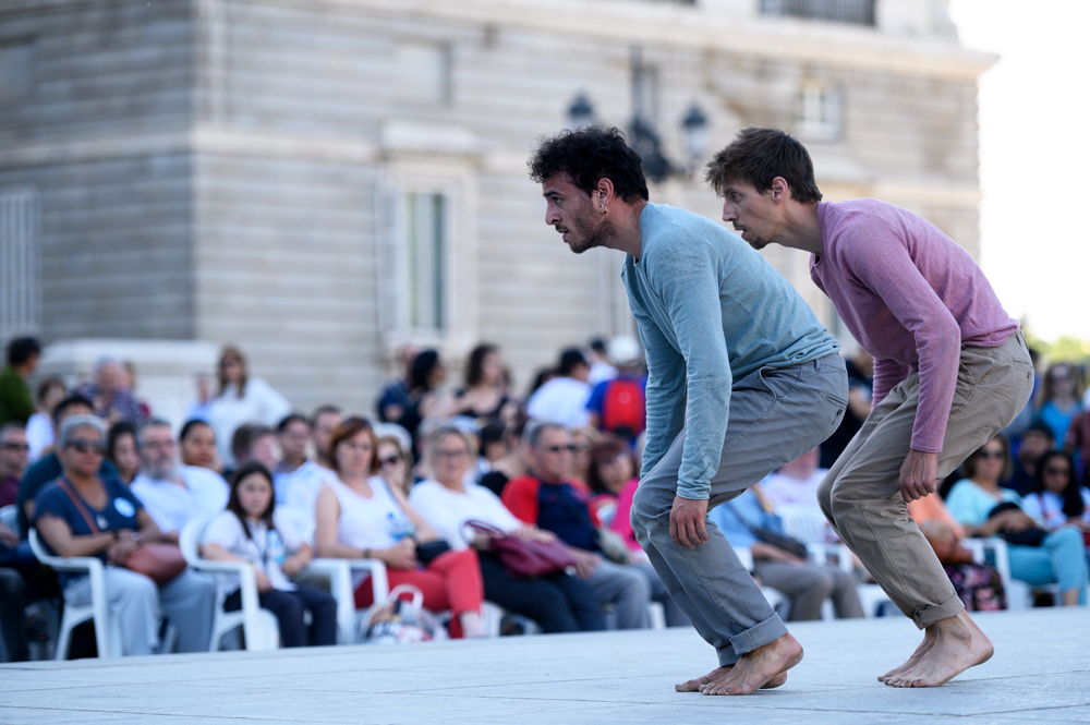 La Plaza de Oriente fue escenario de un singular espectáculo, Pez Esfinge, fruto del trabajo de investigación del artista Elías Aguirre sobre los detalles de la naturaleza submarina que pasan inadvertidos, lo que aparentemente está inmóvil: peces que parece quietos pero nadan contracorriente, peces invisibles sobre su color camuflado. Aguirre sumergió a los asistentes en este mundo submarino a través de sus variadas facetas: bailarín, coreógrafo, fotógrafo y artista plástico. Todo puesto al servicio de esta recreación de la naturaleza que se oculta bajo el mar.