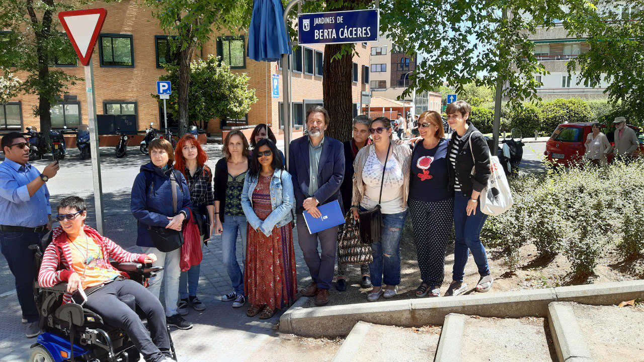 Para homenajear a la defensora de derechos humanos han acudido Beatriz Sevilla Valderas, de Ecologistas en Acción; Mirian García Torres, de Brigadas Internacionales de Paz y Karen Patricia Rodríguez, de la Red de Hondureñas Migradas de Madrid. También se han sumado al acto las mujeres del Espacio de Igualdad Nieves Torres y el concejal en funciones de Chamartín, Mauricio Valiente Ots, quien ha manifestado que esta denominación es una oportunidad para recordar y para conocer quién fue Berta Cáceres y también para mejorar nuestra ciudad. Según Valiente, "con el nombramiento de esta zona verde estamos llenando de referencia a un espacio que queremos que sea punto de encuentro y punto de crecimiento ciudadano, siguiendo el ejemplo de Berta Cáceres".