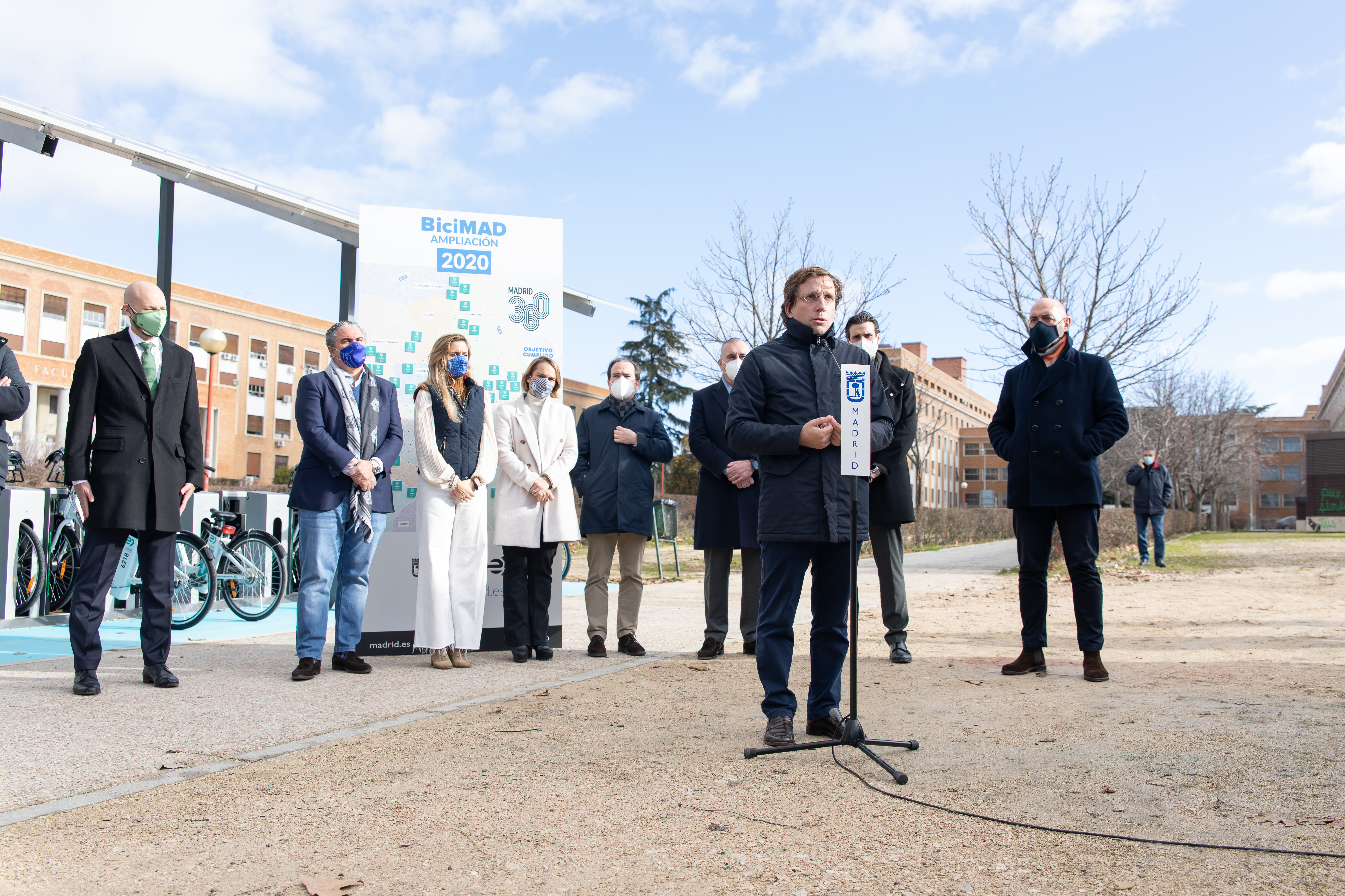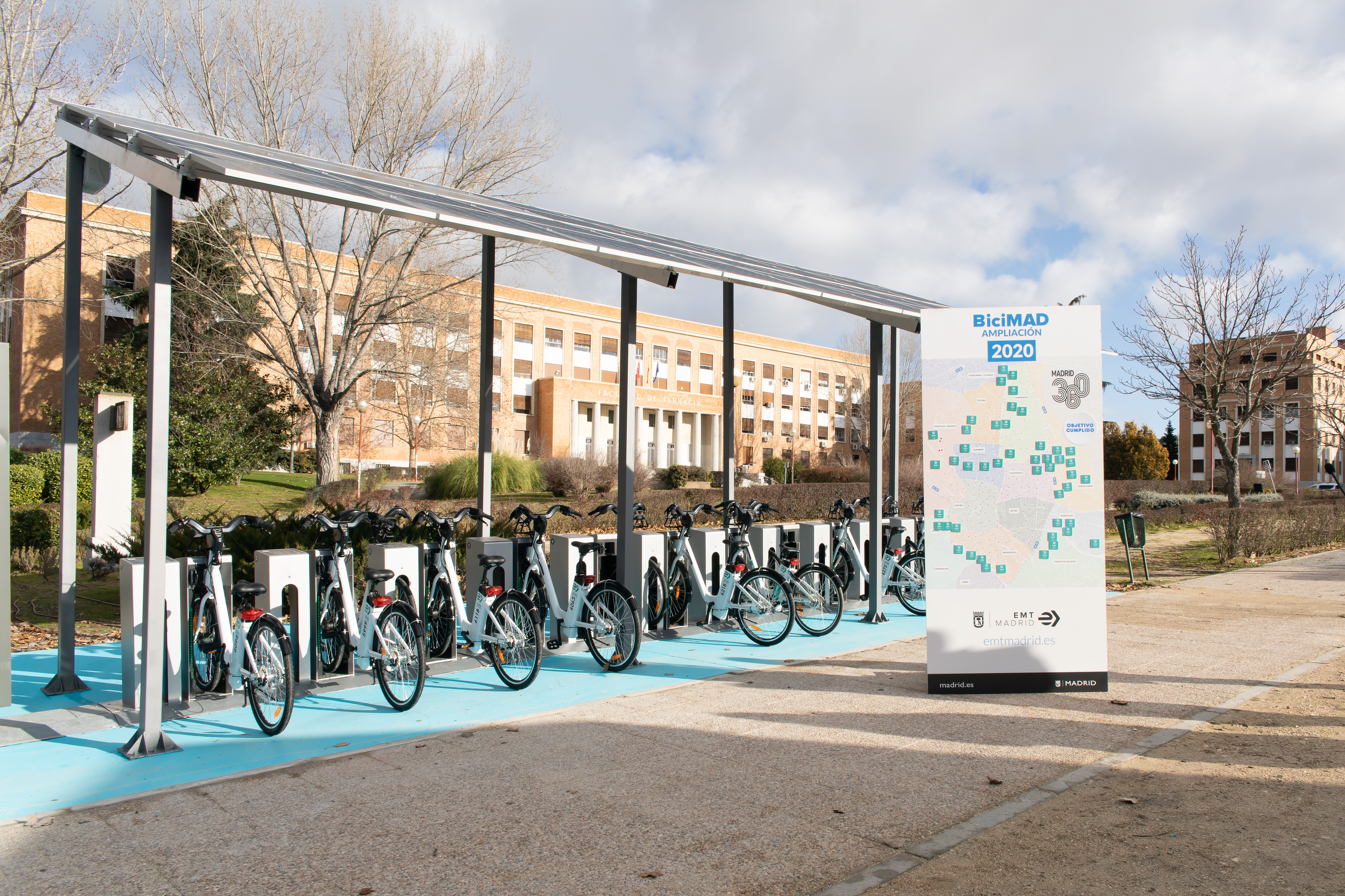 BiciMAD ha llegado por primera vez a Ciudad Universitaria, una zona de alta demanda potencial, y lo ha hecho de la forma más sostenible. El alcalde ha explicado que tres de las 50 nuevas estaciones de esta ampliación funcionarán por primera vez de forma íntegra con energía solar gracias al equipamiento de generación fotovoltaico que se ha instalado en las bases 258, 259 y 260, situadas todas en el campus universitario.