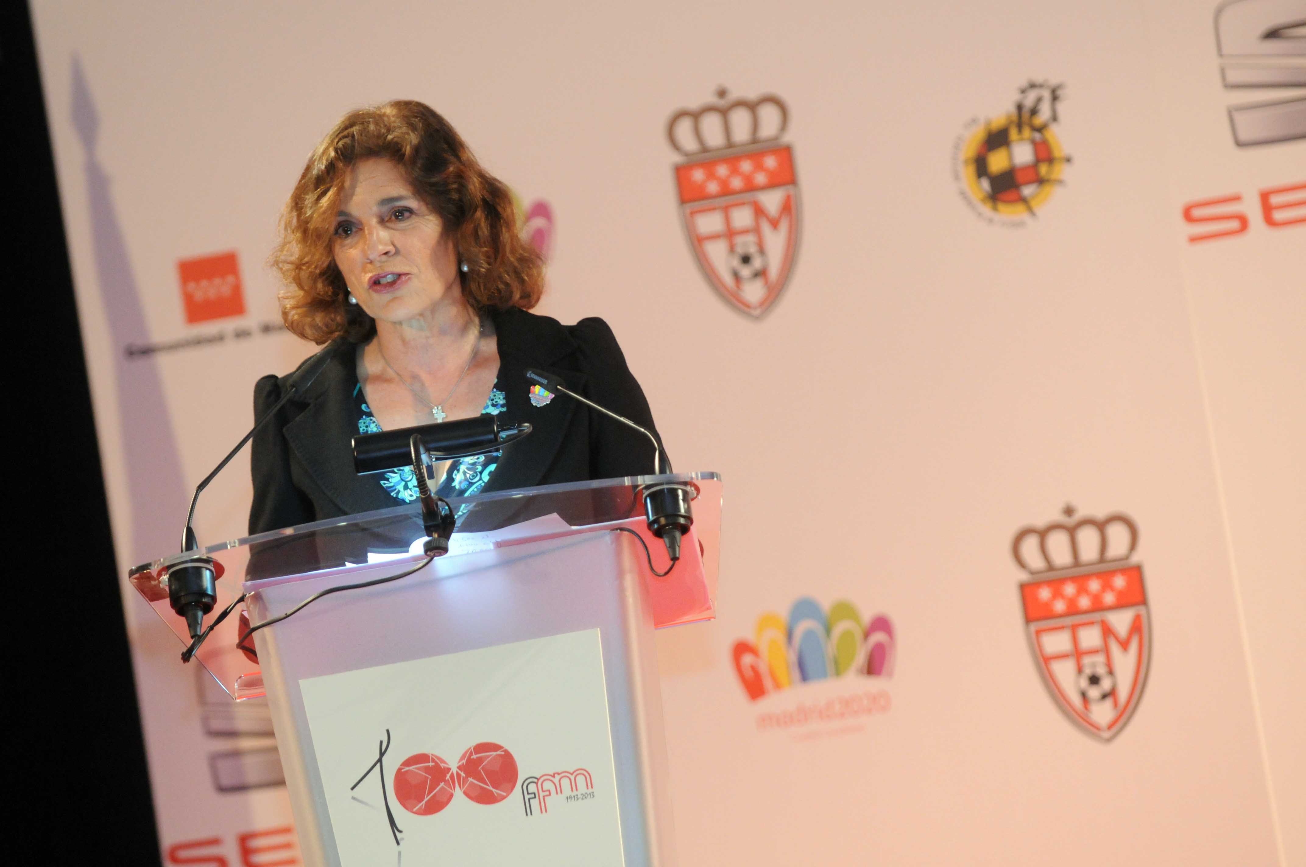 La alcaldesa de Madrid, Ana Botella, ha participado al mediodía de hoy en la celebración del Centenario de la Federación de Fútbol de Madrid, que ha tenido lugar en la sede del Comité Olímpico Español. La alcaldesa ha reconocido el trabajo “de todos los que han hecho posible que decenas de miles de deportistas hayan convertido el fútbol en una forma de vida en nuestra región y en nuestra ciudad”, y ha destacado la proyección internacional de la capital española gracias a este deporte. La colaboración entre la Federación y el Ayuntamiento se resume en los 53000 jugadores que han competido en torneos deportivos y en los más de 2.000 alumnos que han asistido a las 16 escuelas que desarrollan conjuntamente cada año. “Este esfuerzo nos ayuda a convertir el deporte madrileño en un referente de calidad, un prestigio que es, sin duda, un valor imprescindible para optar a los Juegos Olímpicos de 2020”