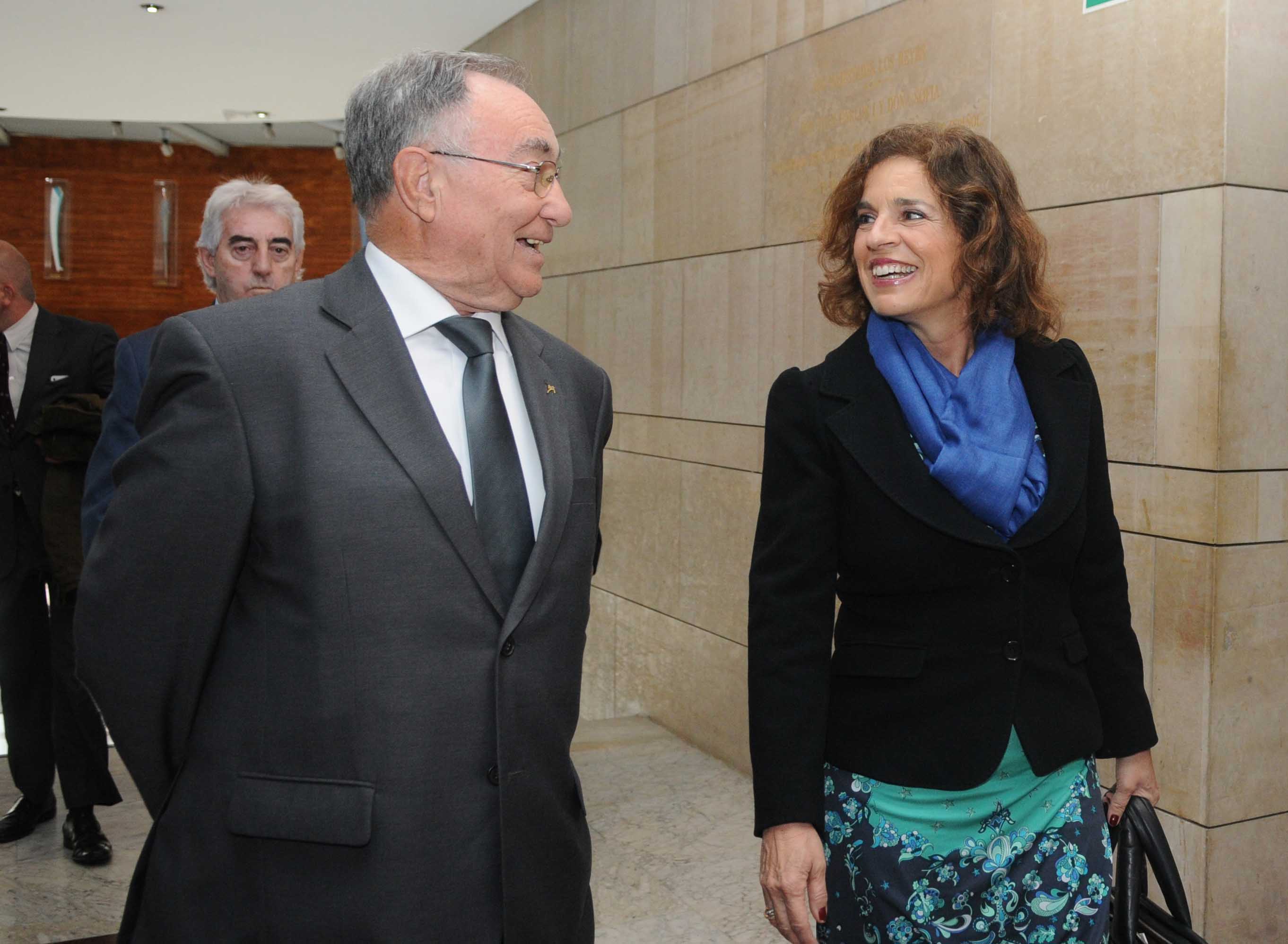 Distintas imágenes de la celebración del Centenario de la Federación de Fútbol de Madrid, hoy en la sede del COE, en la que ha participado la alcaldesa de Madrid, Ana Botella.