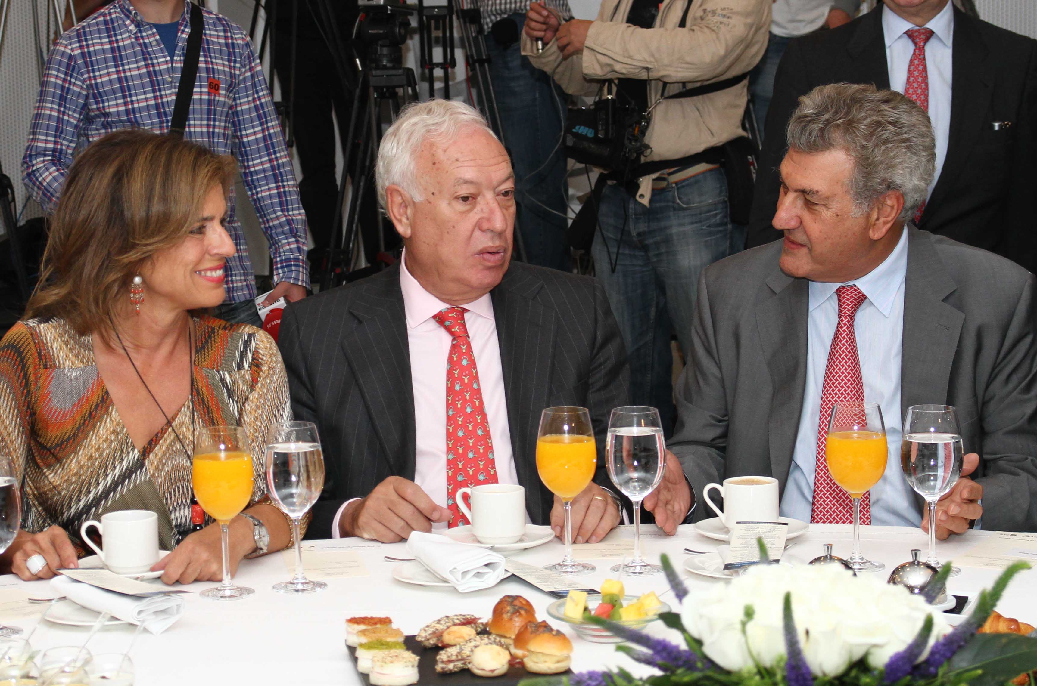 Diferentes momentos del desayuno informativo del Forum Europa, dedicado esta mañana al presidente del Partido Popular del País Vasco y candidato a lehendakari, Antonio Basagoiti, en el que ha estado presente la alcaldesa de Madrid, Ana Botella.