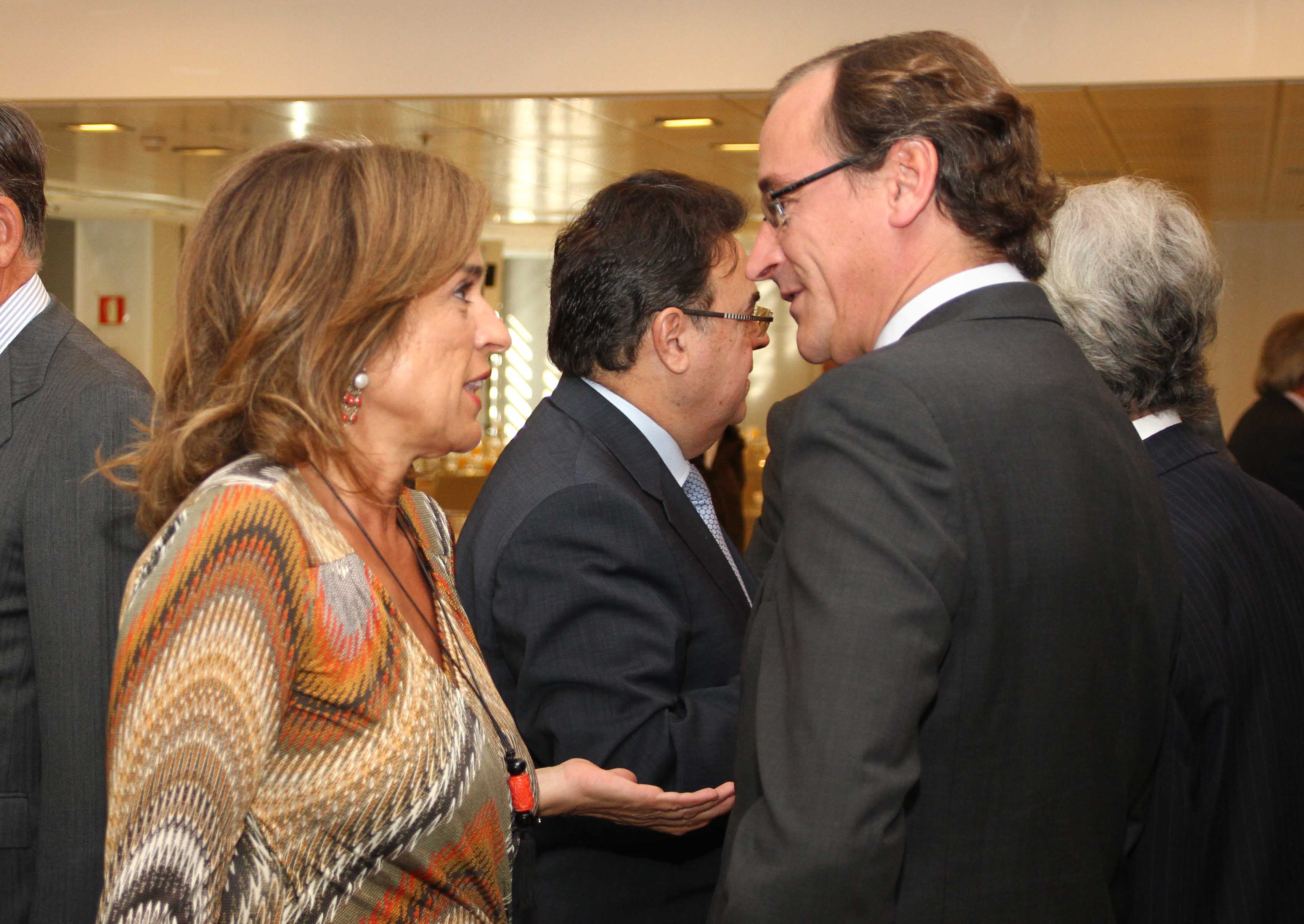 La alcaldesa de Madrid, Ana Botella, ha asistido esta mañana al desayuno informativo del Forum Europa, en el que ha participado el presidente del Partido Popular del País Vasco, Antonio Basagoiti. A la intervención del candidato del PP a la presidencia del Gobierno Vasco tampoco han faltado numerosos políticos, entre los que se encontraba el presidente del Gobierno, Mariano Rajoy.