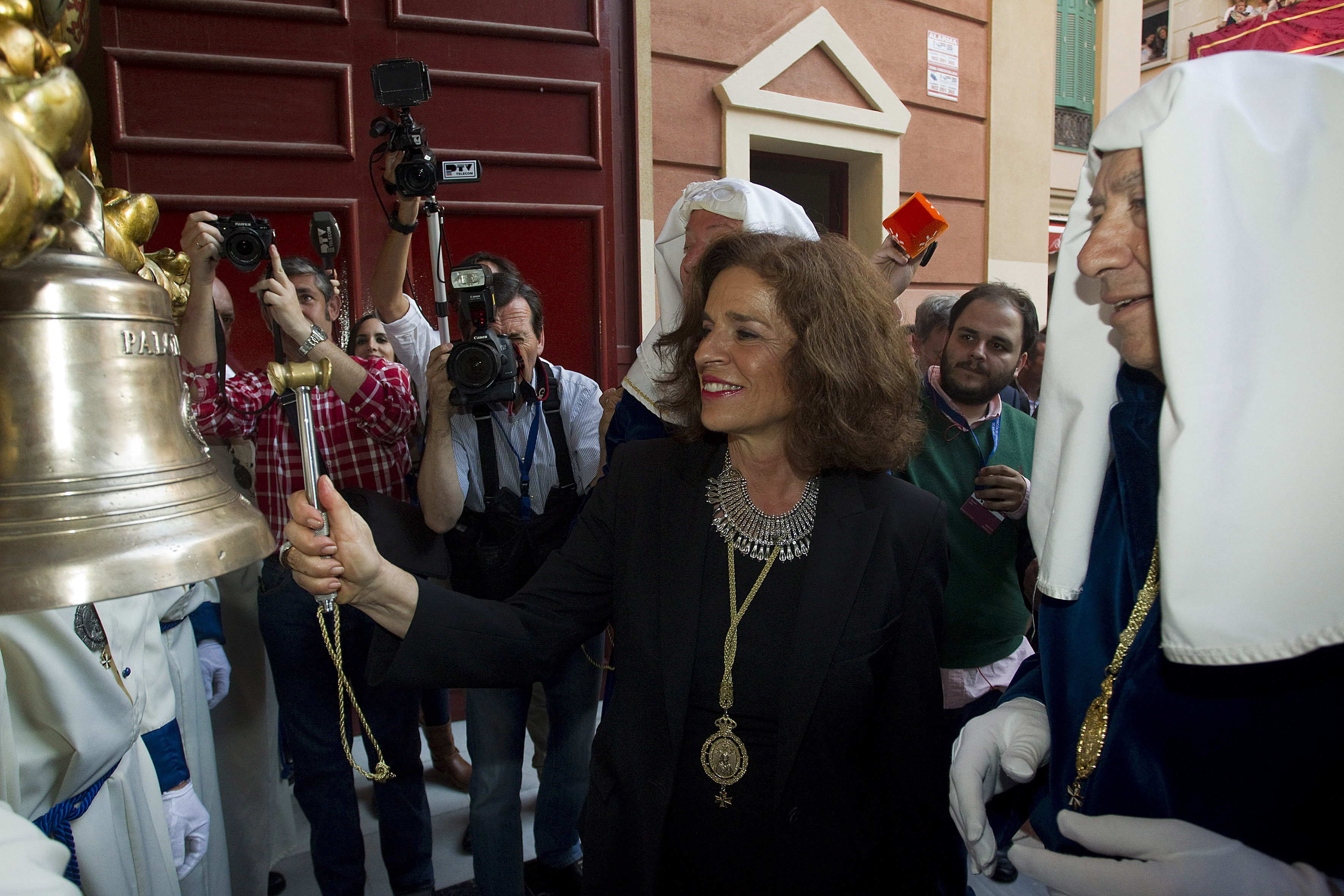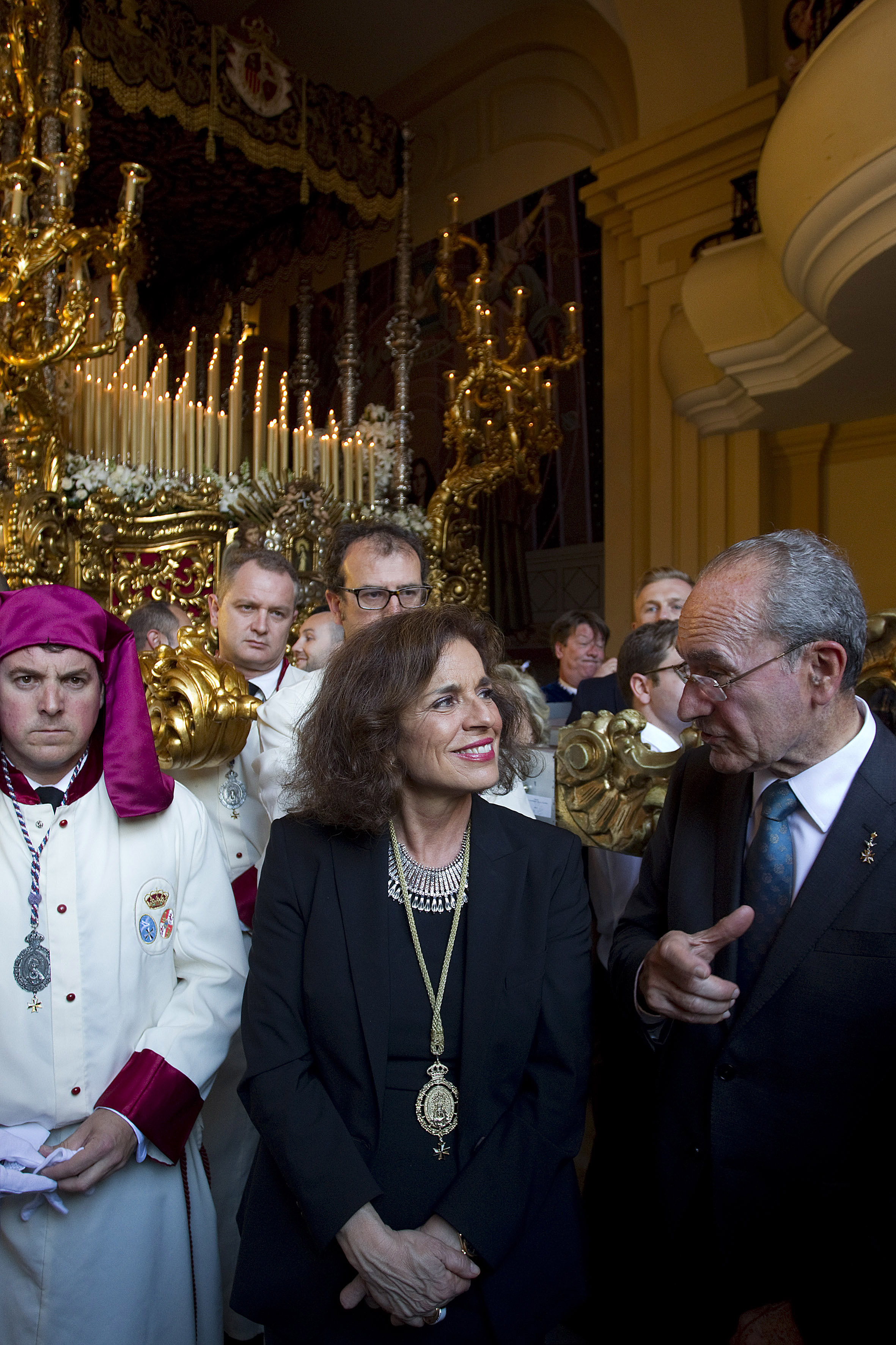 La alcaldesa de Madrid, Ana Botella, acompañada por una delegación municipal de la capital, ha asistido a la salida de la procesión de la Virgen de la Paloma, que ha recorrido las calles de Málaga. El Ayuntamiento de Madrid es Hermano Mayor Honorario de la Cofradía de Jesús de la Puente del Cedrón y María Santísima de la Paloma desde el año 1944. En las fotos, la alcaldesa junto a José María Álvarez del Manzano, y miembros de la Hermandad malagueña, en la Plaza de San Francisco, de donde partía la procesión. (Fotos EFE)