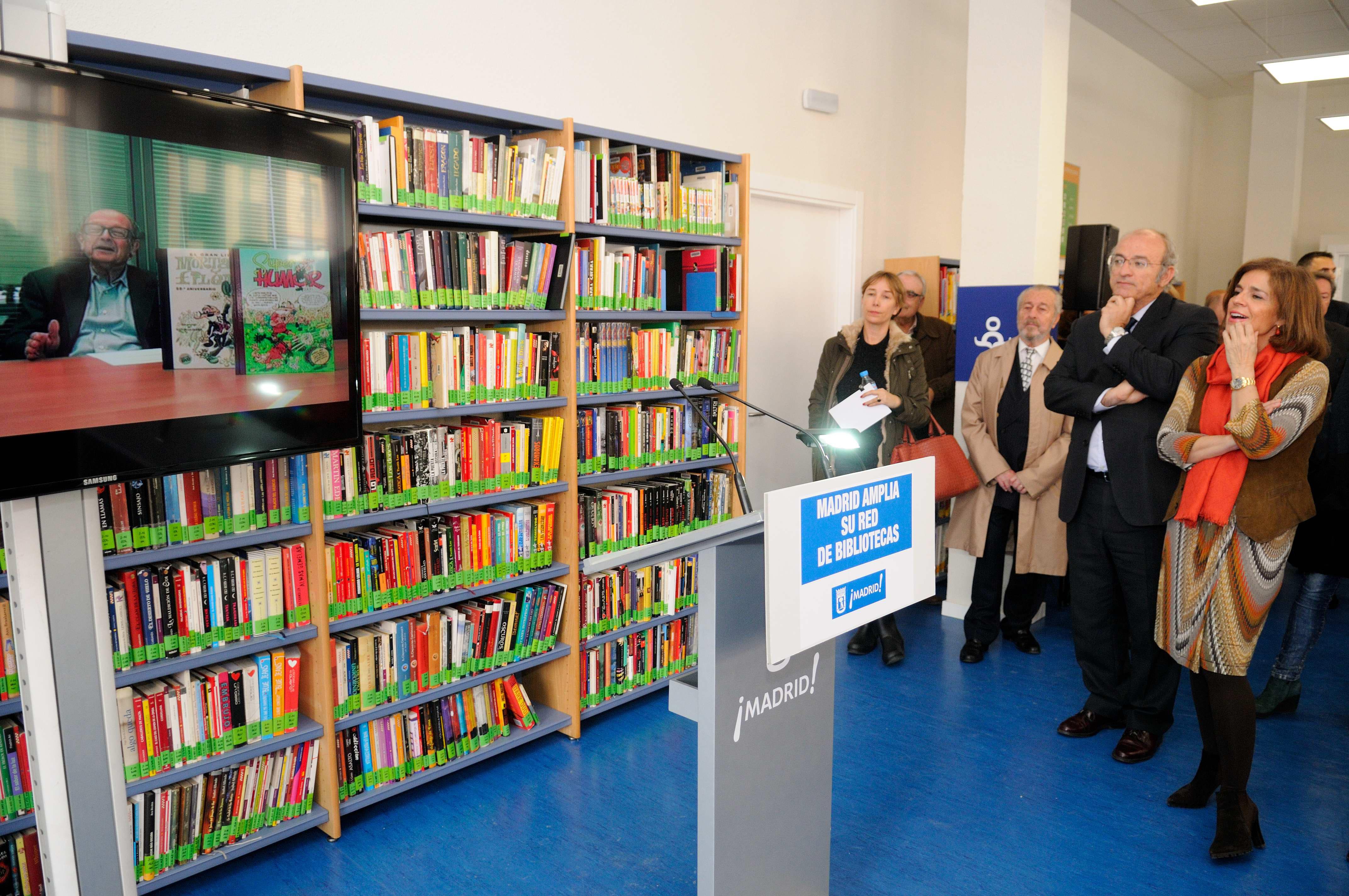 La alcaldesa de Madrid, Ana Botella, ha inaugurado este mediodía la ampliación de la Biblioteca Municipal de Chamartín, que lleva el nombre del dibujante Francisco Ibáñez. La biblioteca, en la que se han invertido 282.000 euros, dispone de amplias salas de lectura, servicio de navegación gratuita por Internet, espacios destinados a Prensa y colección audiovisual; y un fondo bibliográfico compuesto por 38.472 obras. Botella ha destacado de Ibáñez, que no ha podido asistir por motivos de agenda, que “es uno de los autores y creadores de humor gráfico español más conocidos y traducidos, por lo que agradezco mucho la deferencia de dar su nombre al centro”.