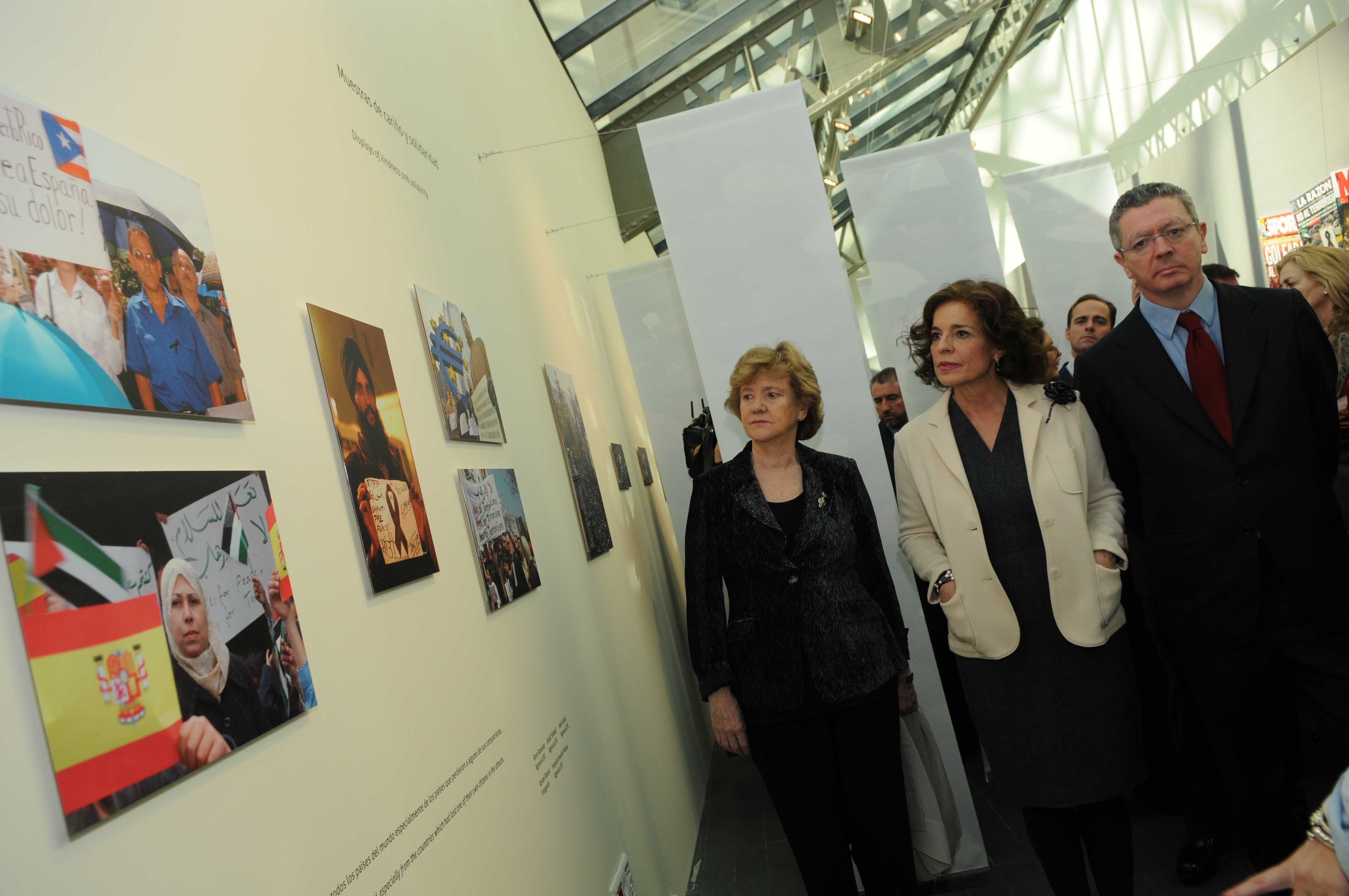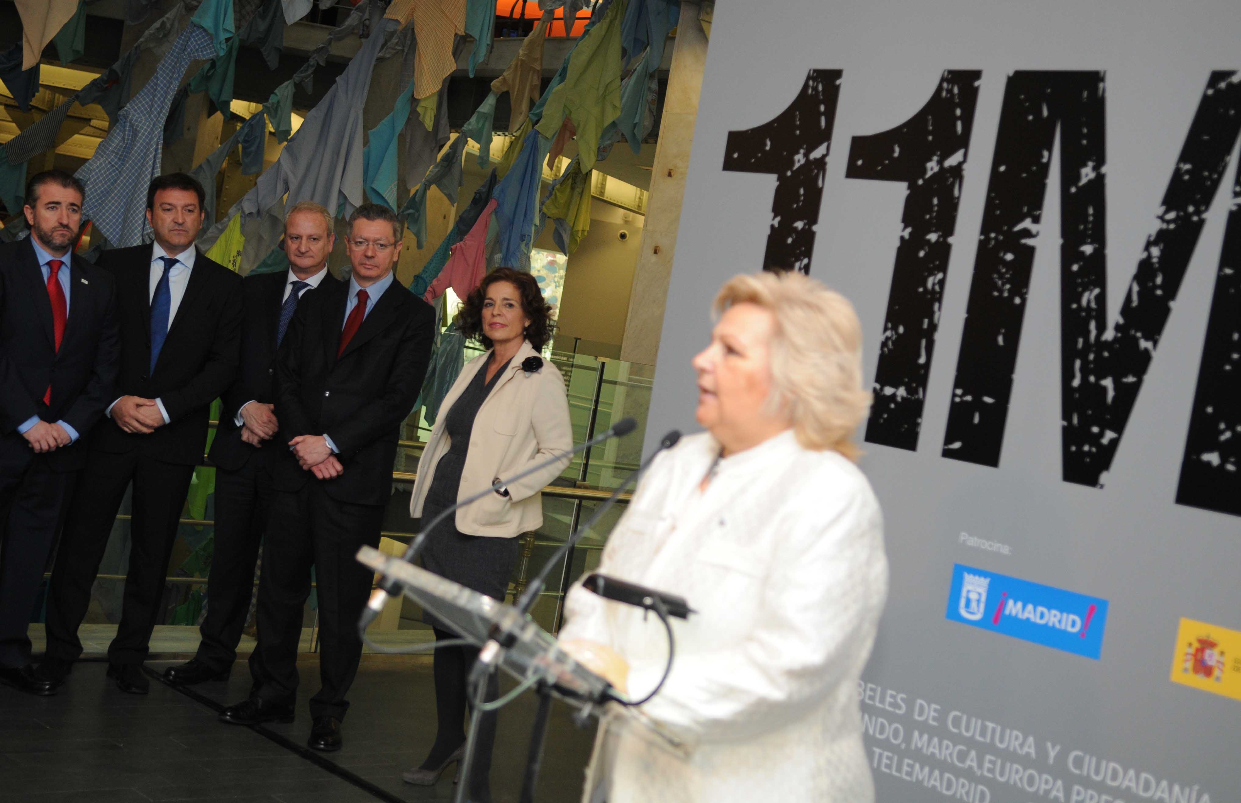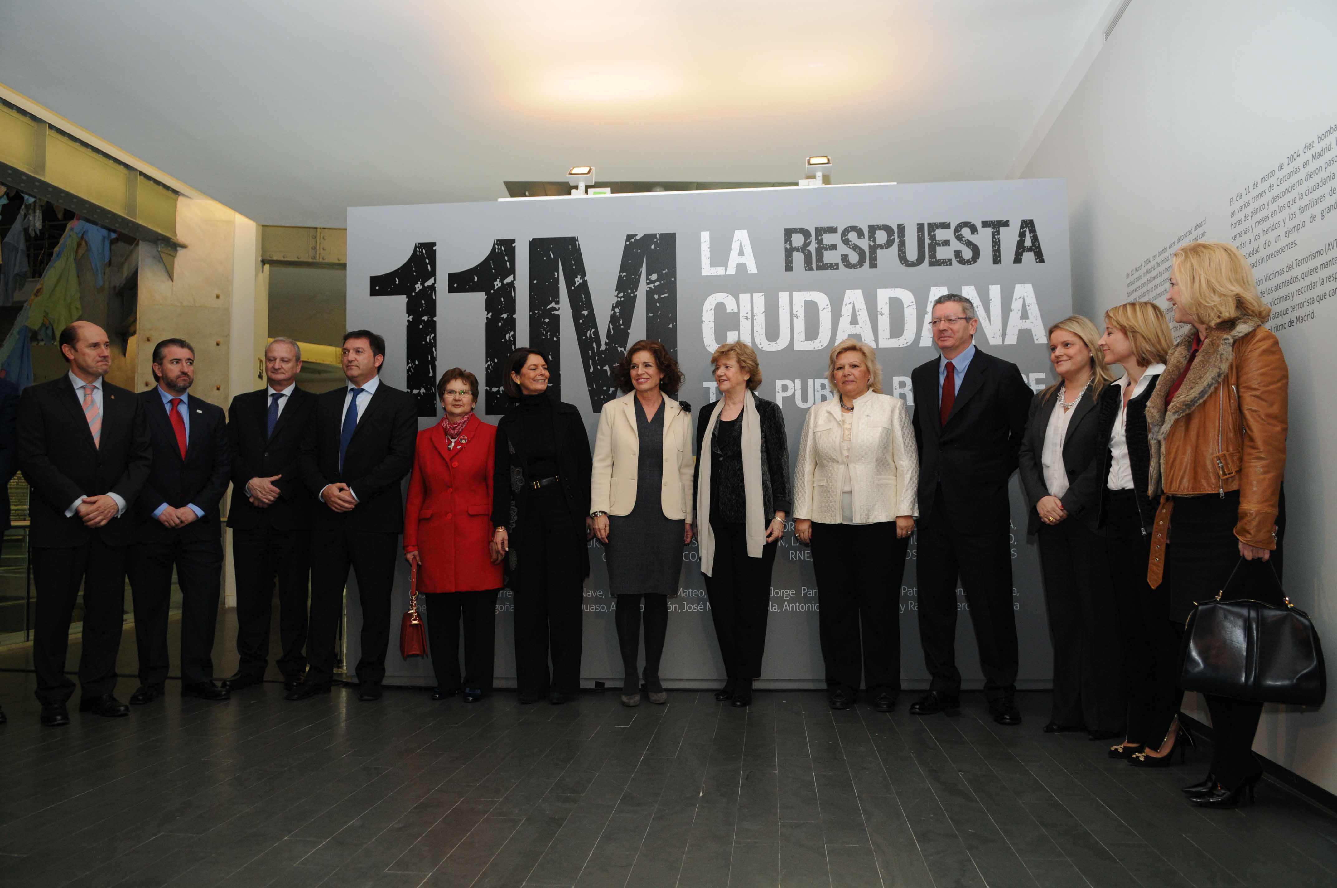 La alcaldesa de Madrid, Ana Botella, acompañada por la presidenta de la Asociación de Víctimas del Terrorismo, Ángeles Pedraza; el ministro de Justicia, Alberto Ruiz-Gallardón, y la Defensora del Pueblo, Soledad Becerril, entre otras personalidades, ha inaugurado hoy la muestra “11 M: la respuesta ciudadana”, que refleja, a través de fotografías y documentos sonoros, la reacción de todo un pueblo ante el peor atentado que ha padecido la ciudad.