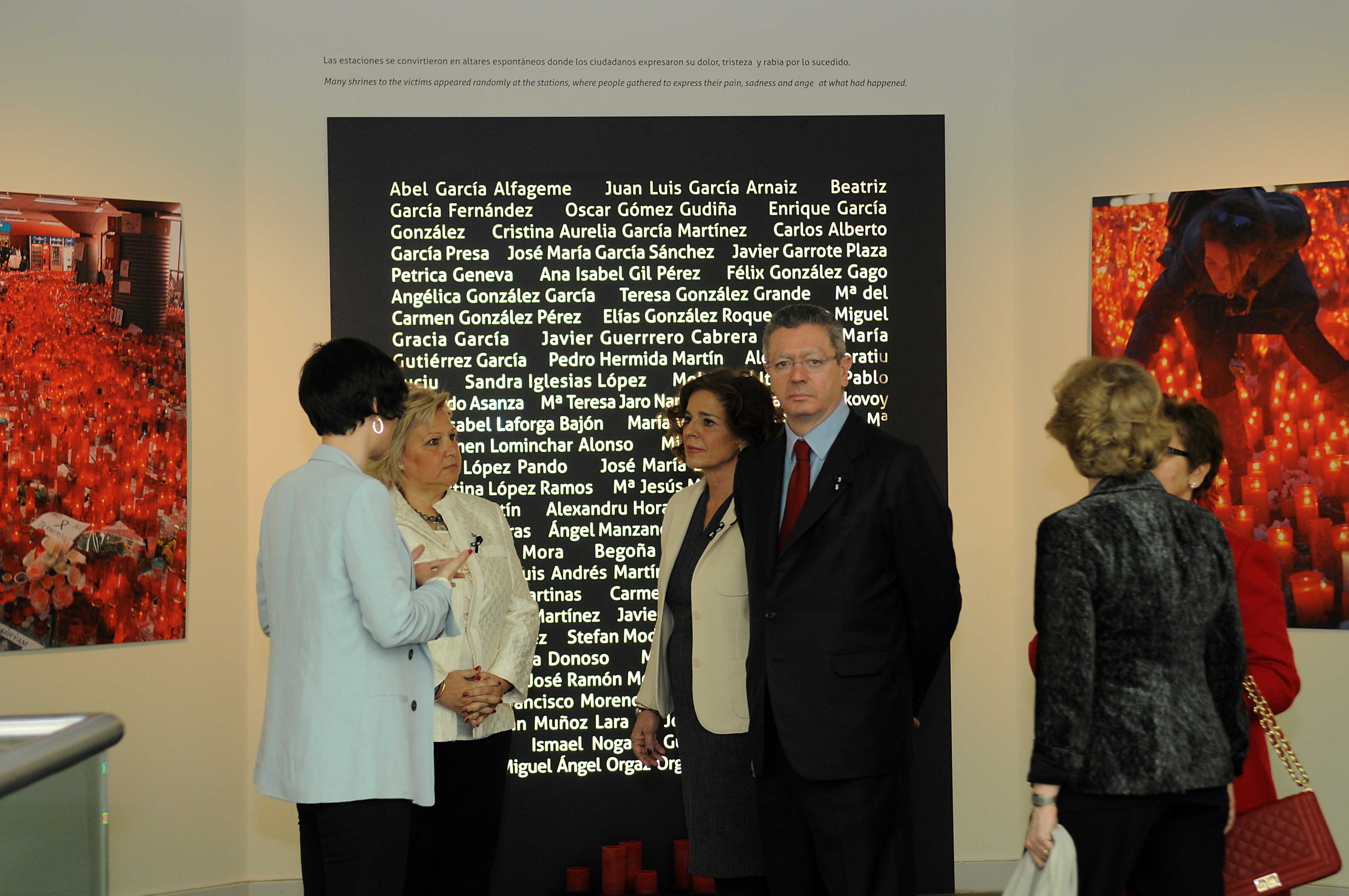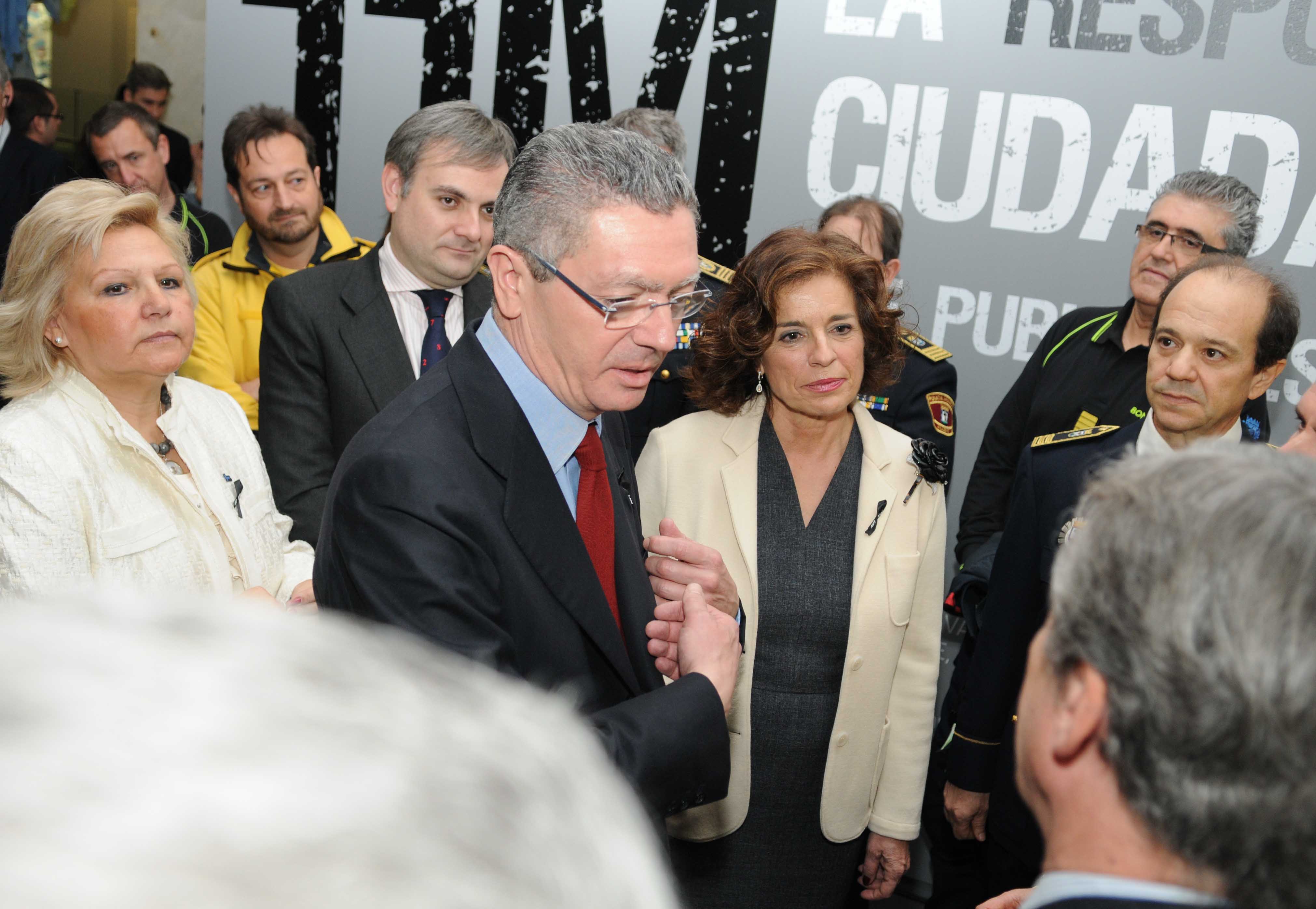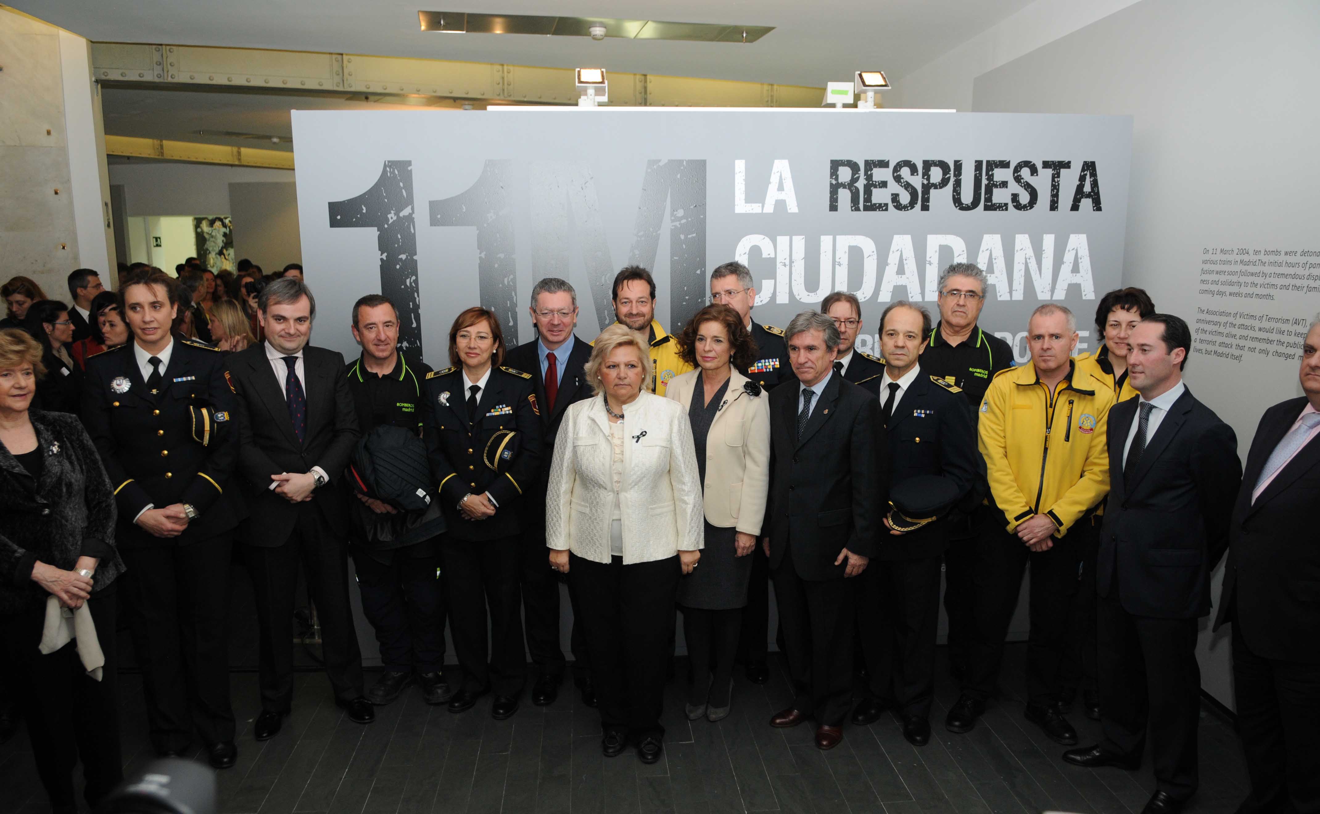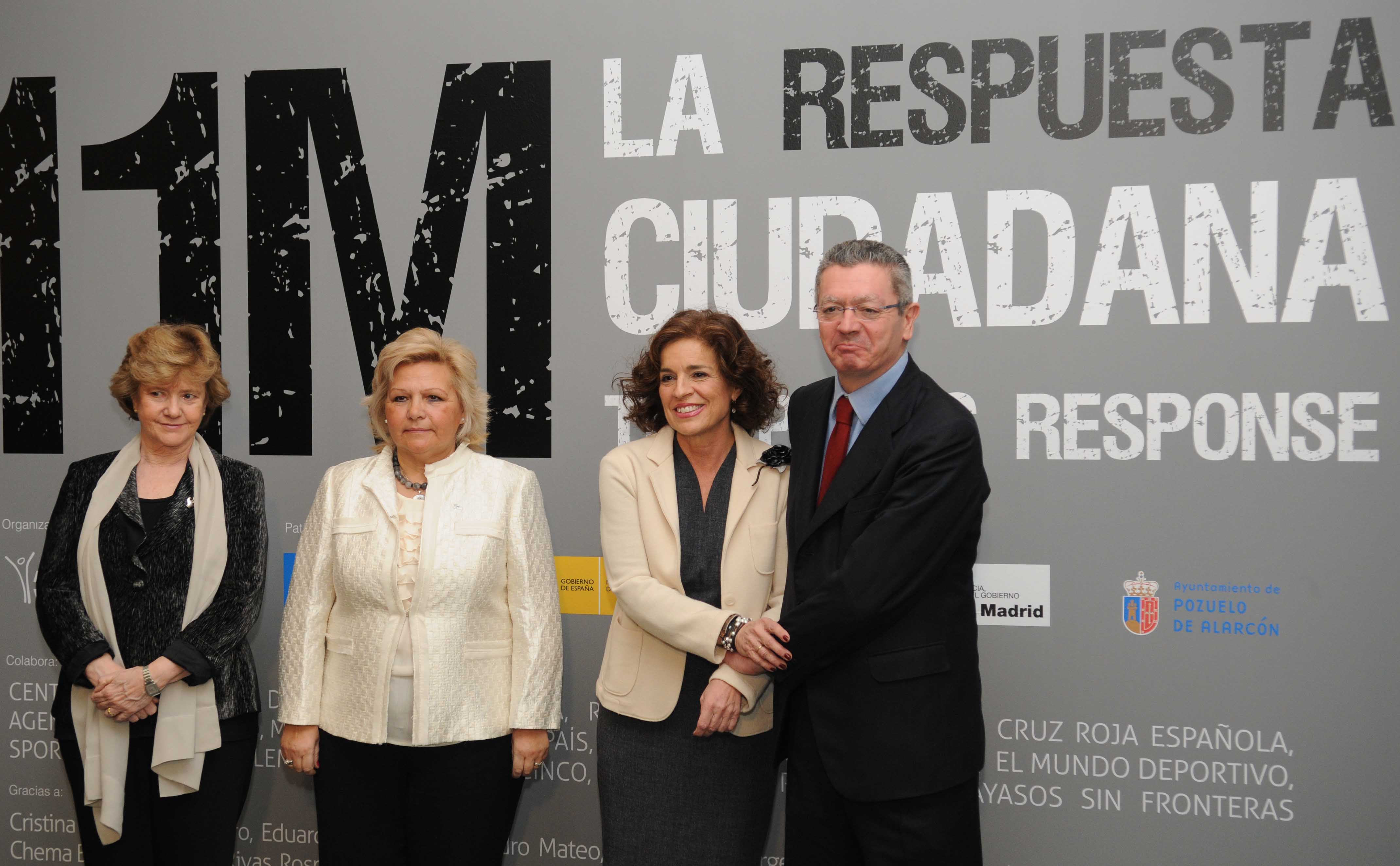 La alcaldesa de Madrid, Ana Botella, acompañada por la presidenta de la Asociación de Víctimas del Terrorismo, Ángeles Pedraza; el ministro de Justicia, Alberto Ruiz-Gallardón, y la Defensora del Pueblo, Soledad Becerril, entre otras personalidades, ha inaugurado hoy la muestra “11 M: la respuesta ciudadana”, que refleja, a través de fotografías y documentos sonoros, la reacción de todo un pueblo ante el peor atentado que ha padecido la ciudad.