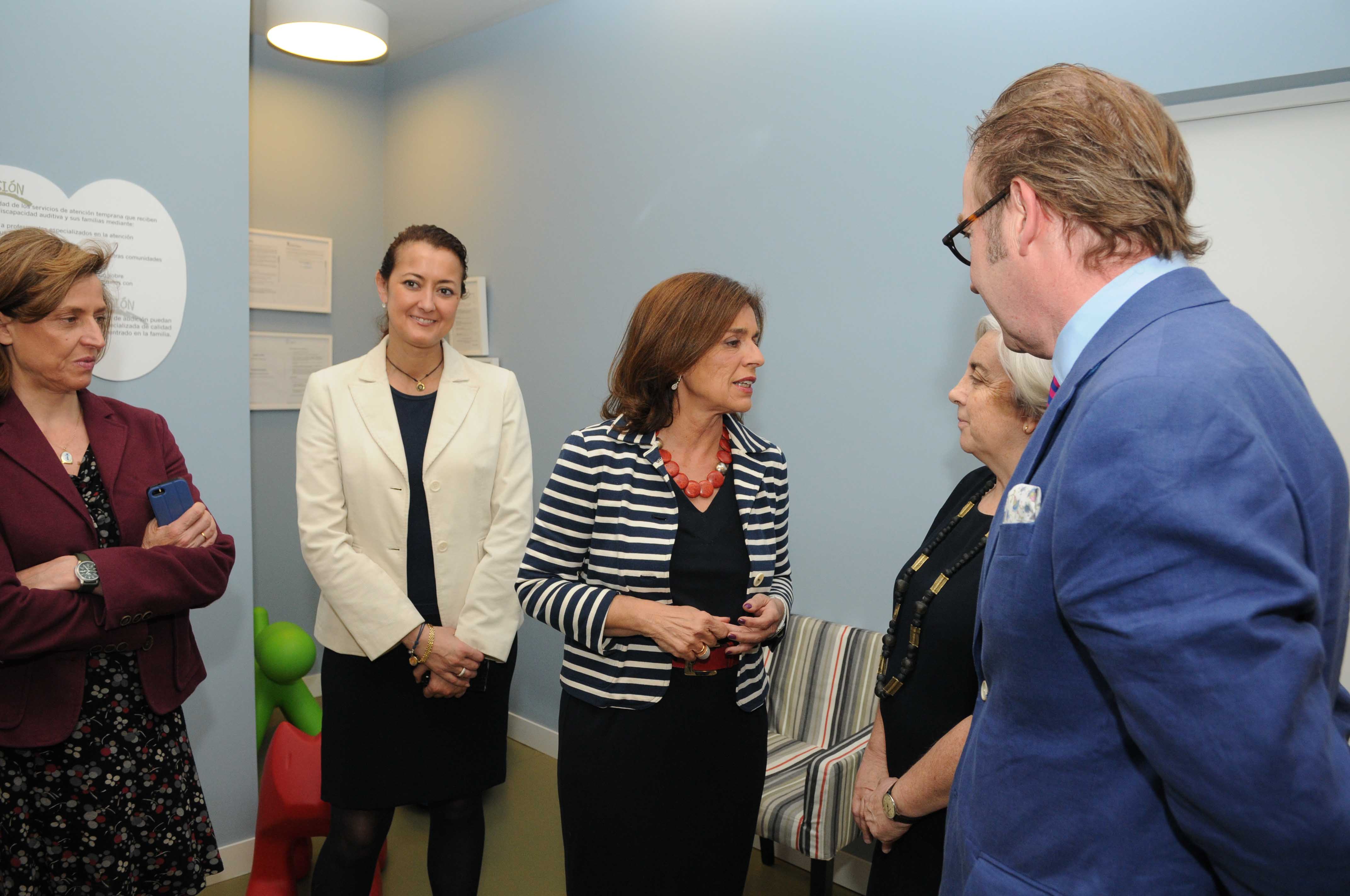 La alcaldesa de Madrid, Ana Botella, ha visitado este mediodía el Centro de Atención Temprana de la Fundación Oír es Clave, un lugar pionero en Europa para la atención integral a niños de 0 a 6 años con cualquier tipo de discapacidad auditiva, y también a sus familias. Se trata de una entidad benéfica británica que desarrolla su actividad en España a través de su delegación “CLAVE, atención a la deficiencia auditiva”, cuyo objetivo es actuar sobre las disciplinas que inciden en el desarrollo integral de las personas con discapacidad auditiva y su entorno, para mejorar sus condiciones de vida. CLAVE se centra en primera instancia en informar y ayudar a los profesionales involucrados en el diagnóstico, en la amplificación, en la intervención y en la educación de las personas con discapacidad auditiva. Asimismo ofrece formación mediante talleres y conferencias a padres y a personas con problemas auditivos. La Fundación Oír es Clave también trabaja para orientar sobre la mejora de las condiciones acústicas de los edificios, difundir las ayudas técnicas de tecnología existentes para la comunicación y asegurar la accesibilidad en los entornos sociales. Así mismo colabora con diferentes instituciones para facilitar la comprensión social de los problemas derivados de la falta de audición y cooperar en la adopción de las medidas necesarias para atenderlos adecuadamente./