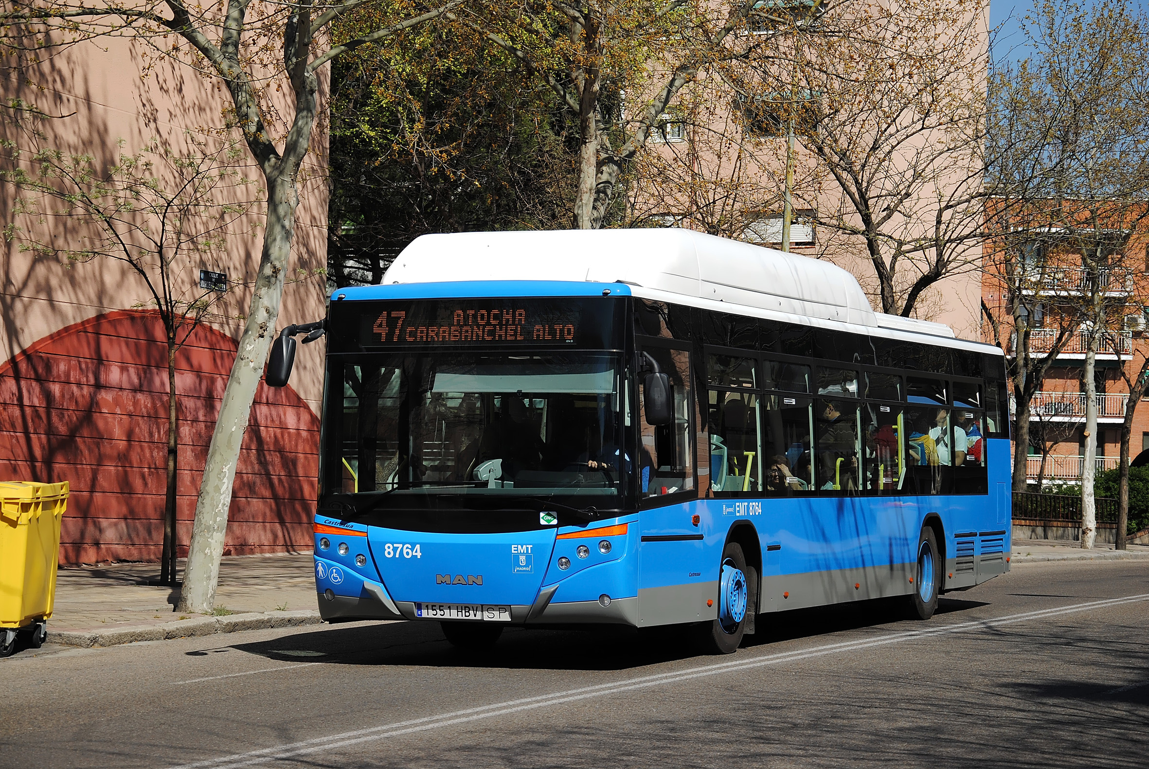 Los autobuses más "limpios" y sostenibles de la Empresa Municipal de Transportes (EMT) ya circulan por las calles de distintos distritos del sur de Madrid. El Ayuntamiento de la ciudad y la EMT han comenzado a incorporar autobuses propulsados por GNC (Gas Natural Comprimido) a los Centro de Operaciones de Entrevías y Carabanchel, desde los que se presta servicio a las líneas de todo el arco sur de la capital (desde el distrito de Latina hasta el de Vallecas Villa). Tras concluirse las obras de construcción de sendas estaciones de repostado de GNC en cada una de estas dos cocheras, la EMT ha comenzado a incorporar autobuses de este combustible a esos dos centros de operaciones y a varias de sus líneas.