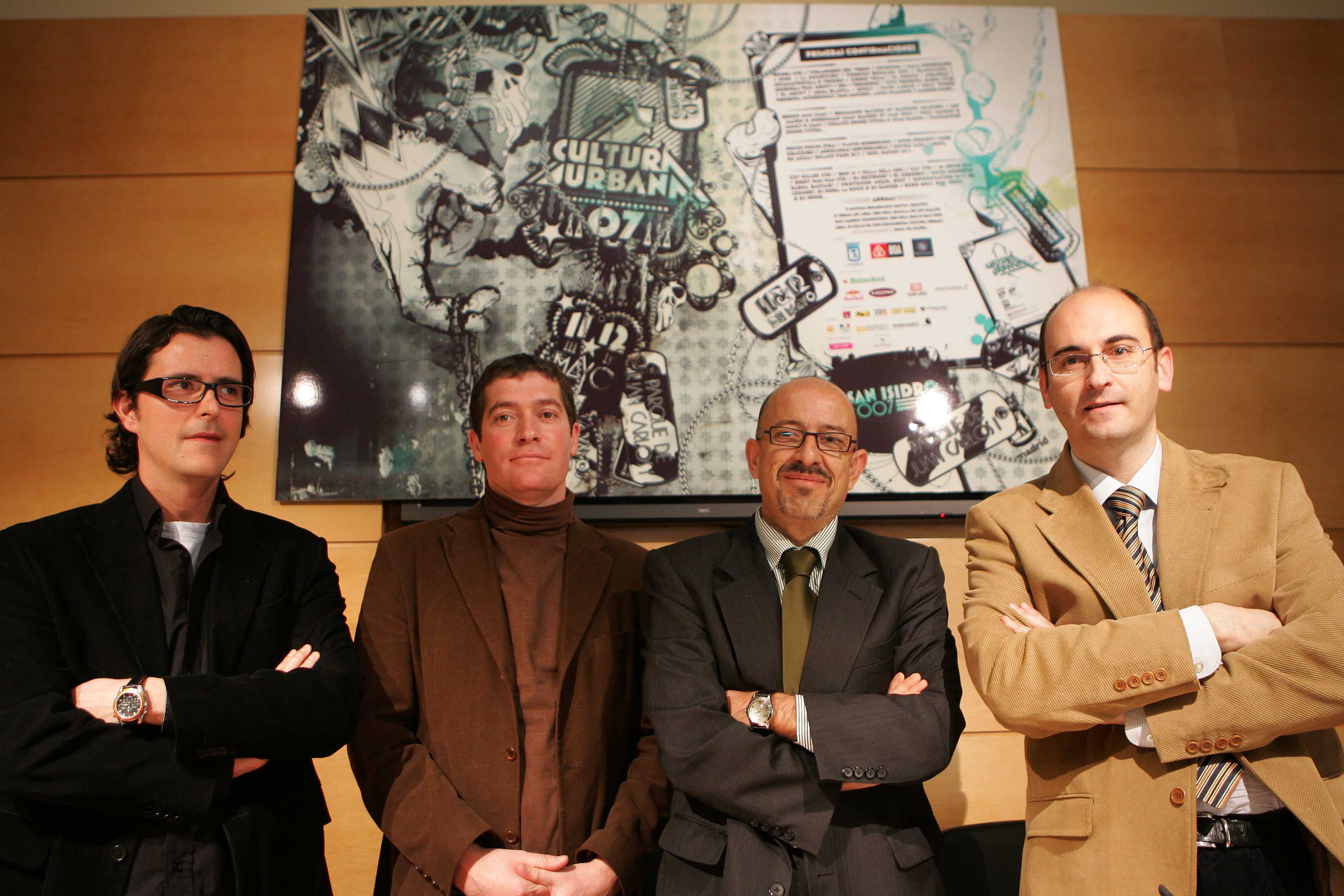 Sergio Muñoz, y Fernando Luaces, directores de Cultura Urbana y Manuel Lagos, director general de actividades culturales del Ayto. de MAdrid, y Paco Galindo director de la Fundación Autor en la presentación del Festival CULTURA URBANA 07