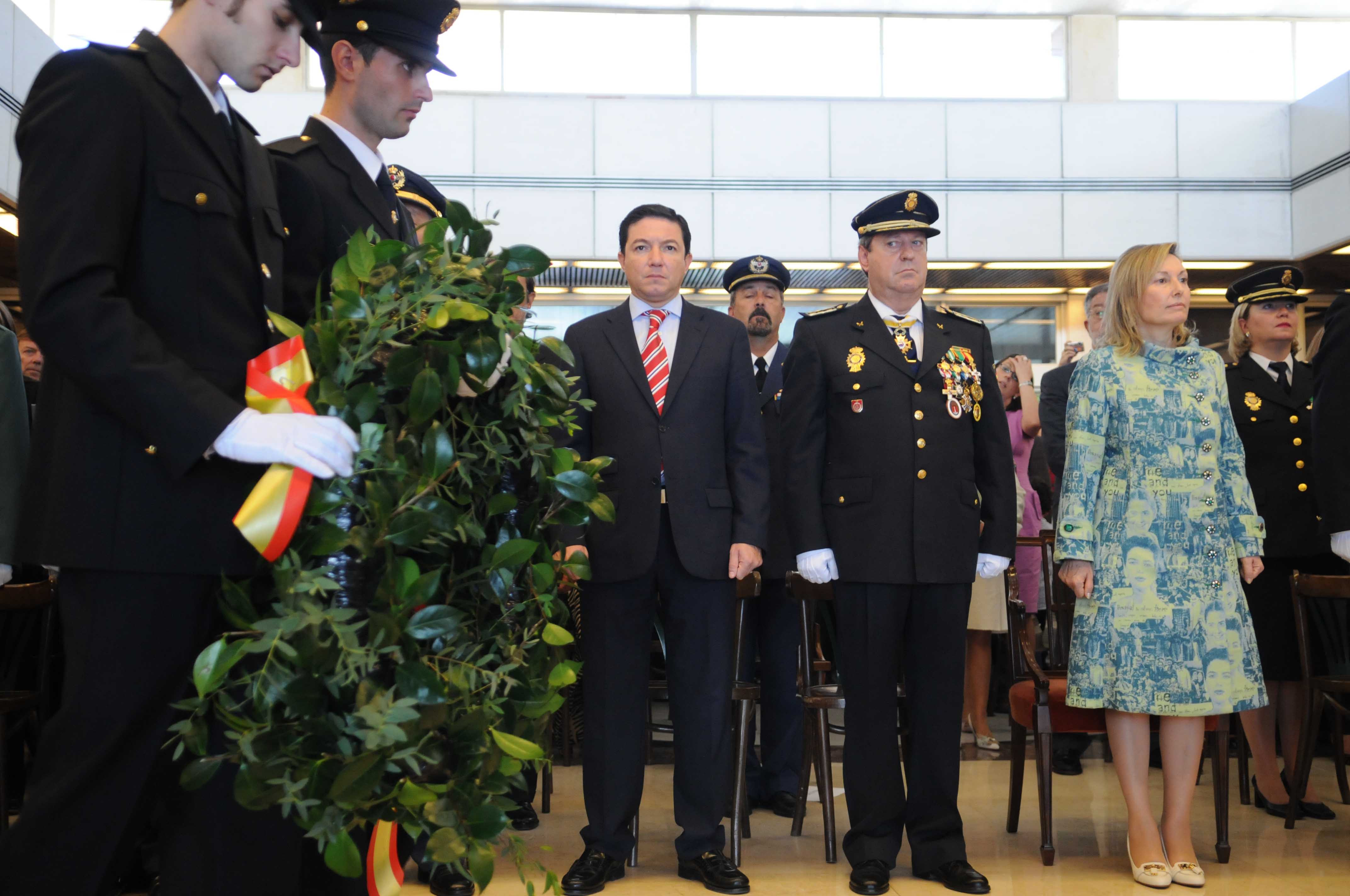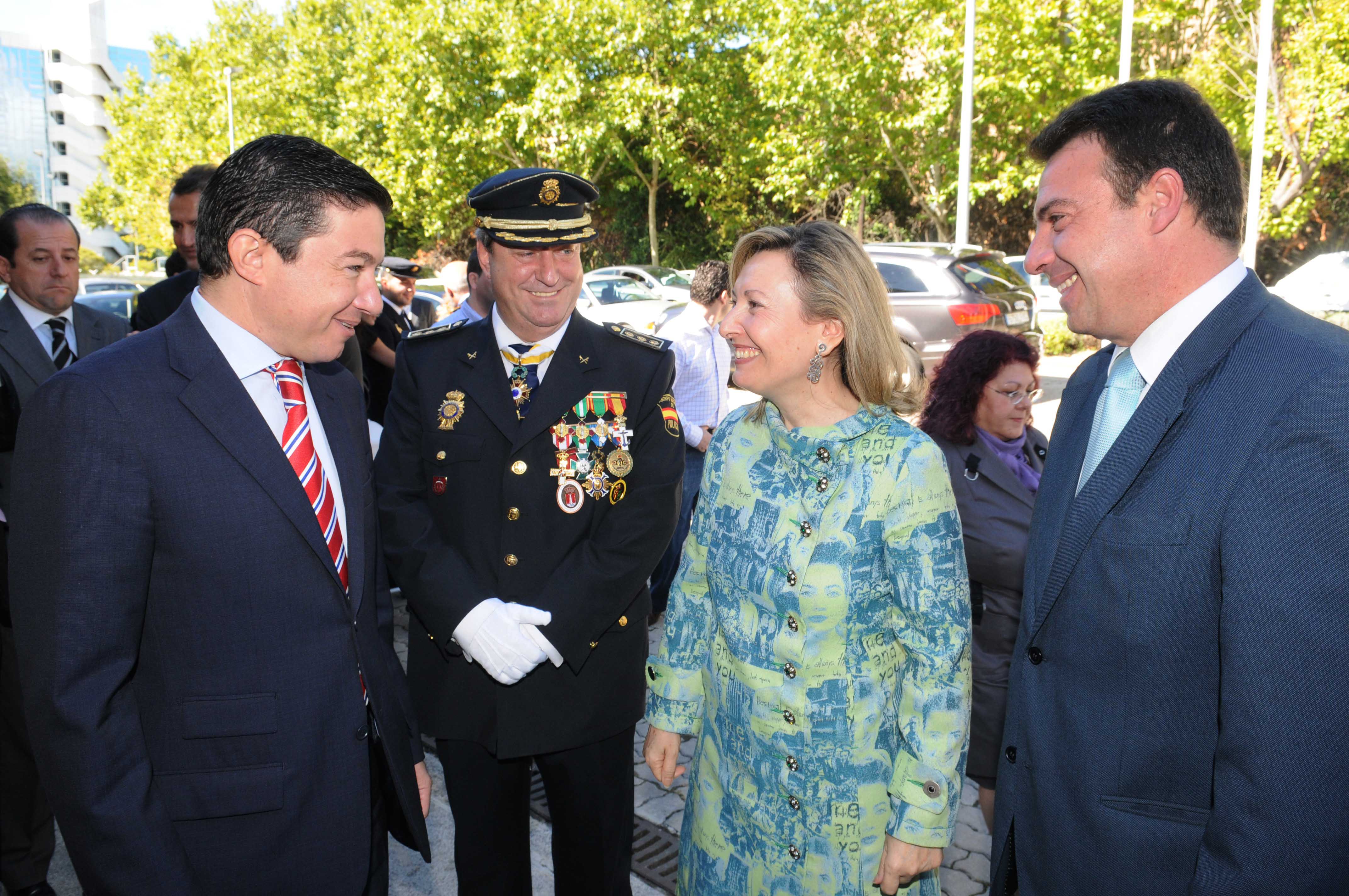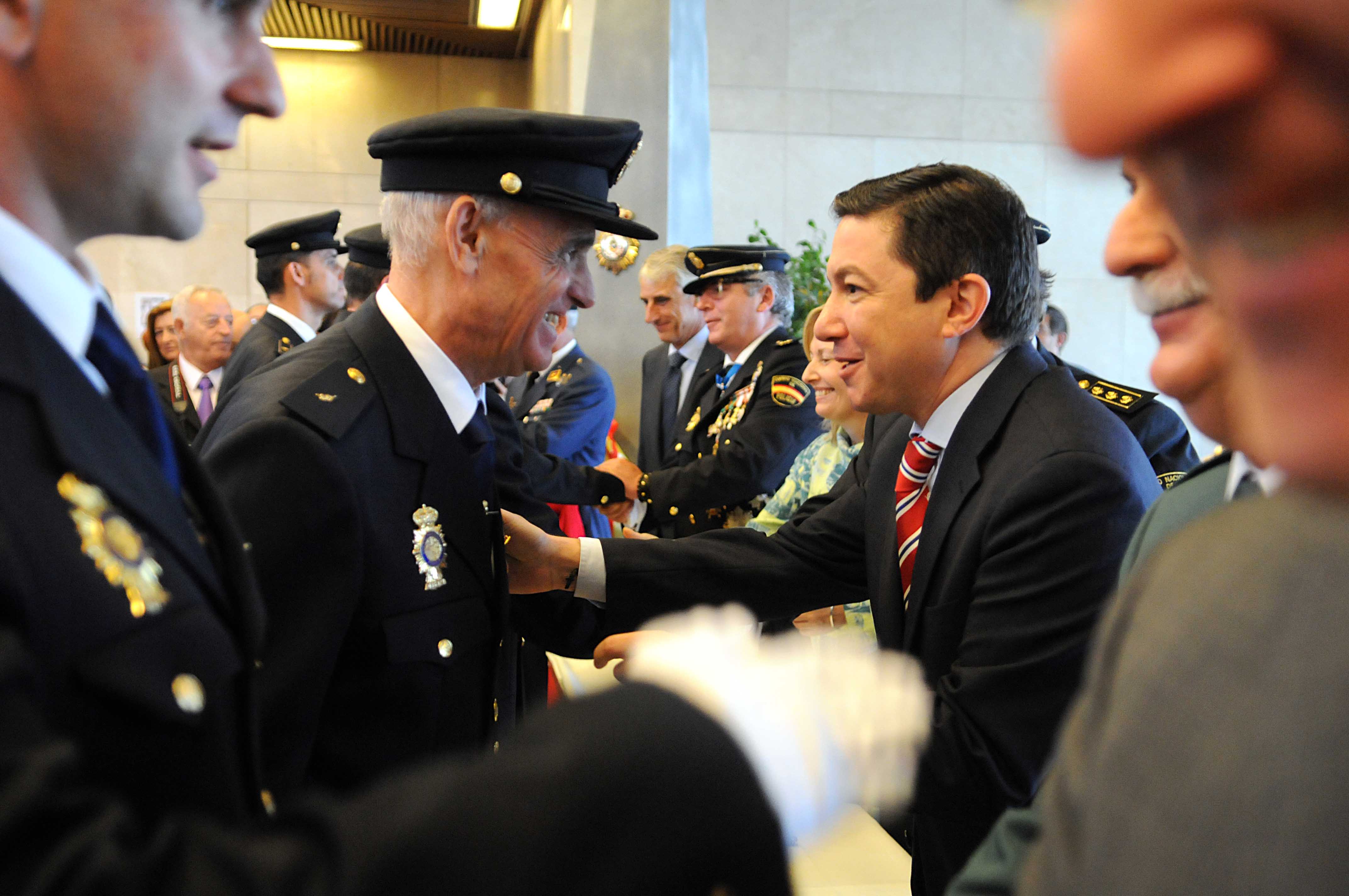 El delegado de Seguridad y Movilidad, Pedro Calvo, ha asistido a los actos de celebración del Patrón de Policía Nacional, los Santos Ángeles Custodios, que se han desarrollado esta mañana en el Pabellón del Estado del Aeropuerto de Madrid-Barajas, en la Terminal 1. Cerca de 60 personas entre agentes nacionales, guardias civiles, ciudadanos e instituciones han recibido un reconocimiento por su colaboración con las Fuerzas y Cuerpos de Seguridad del Estado.