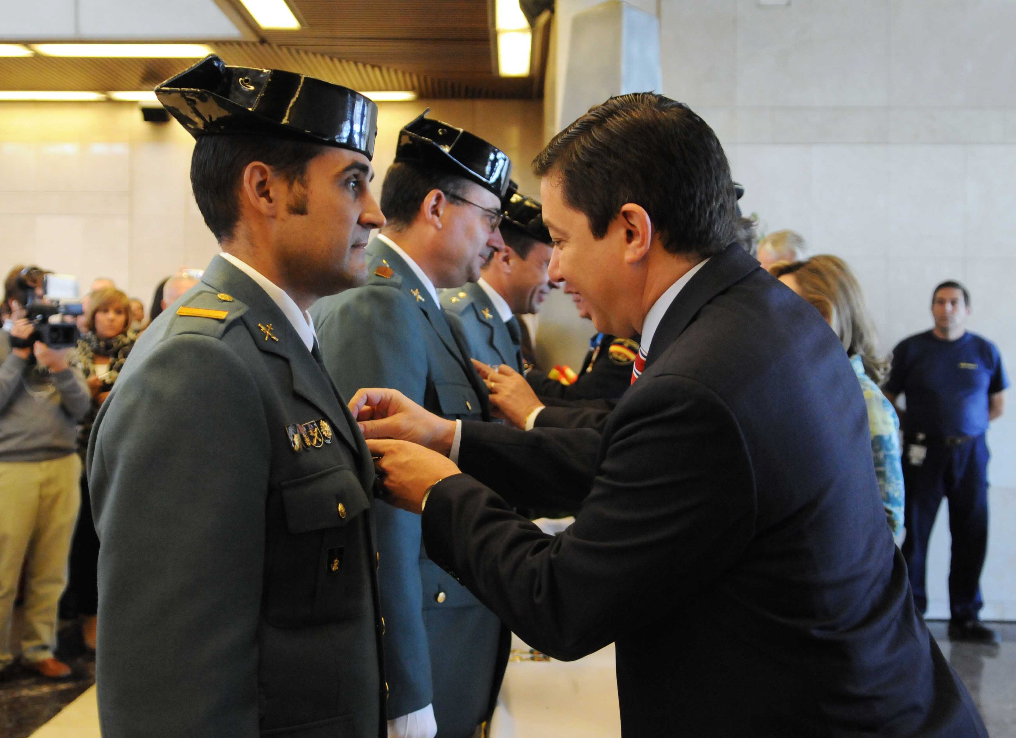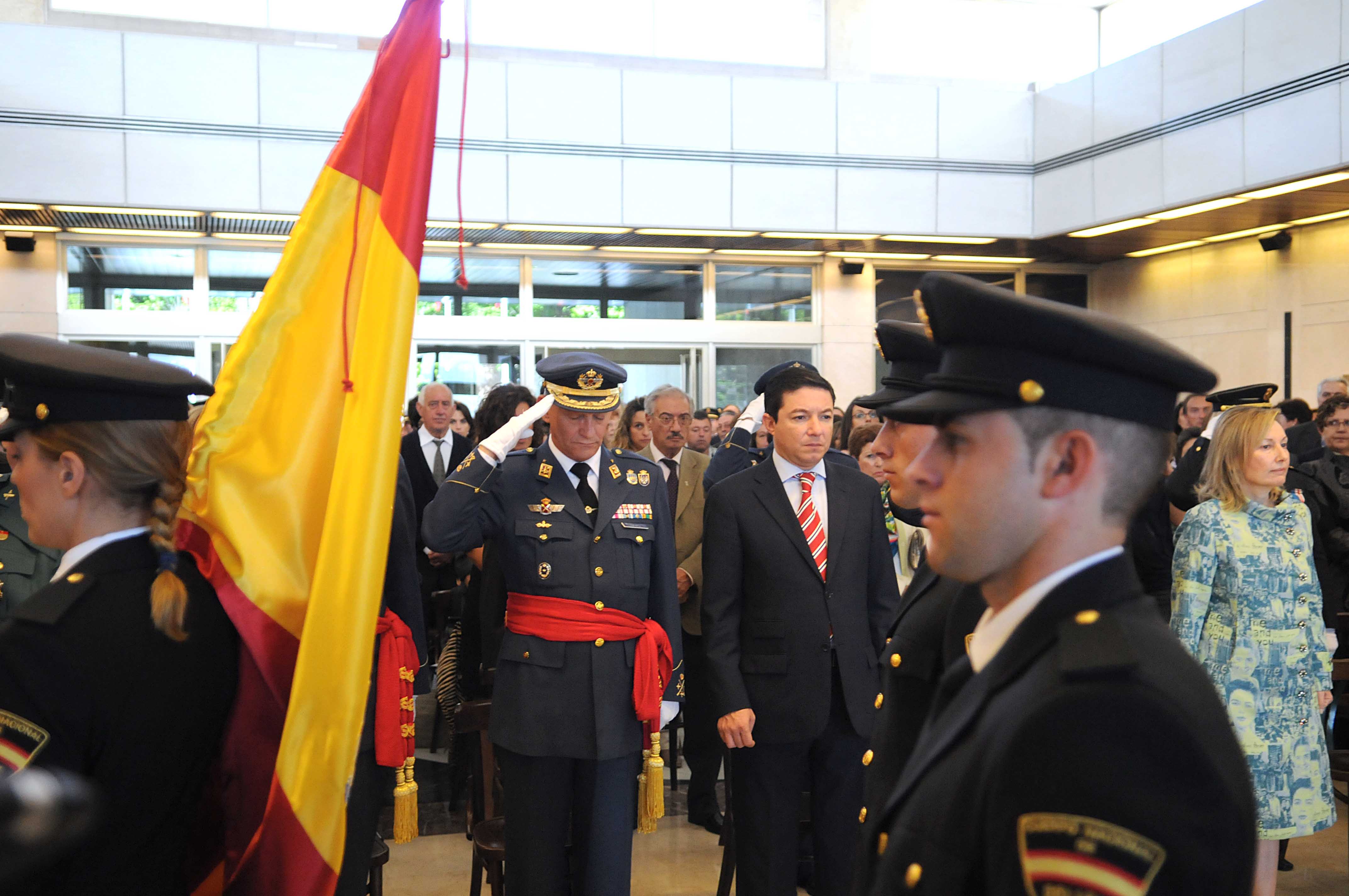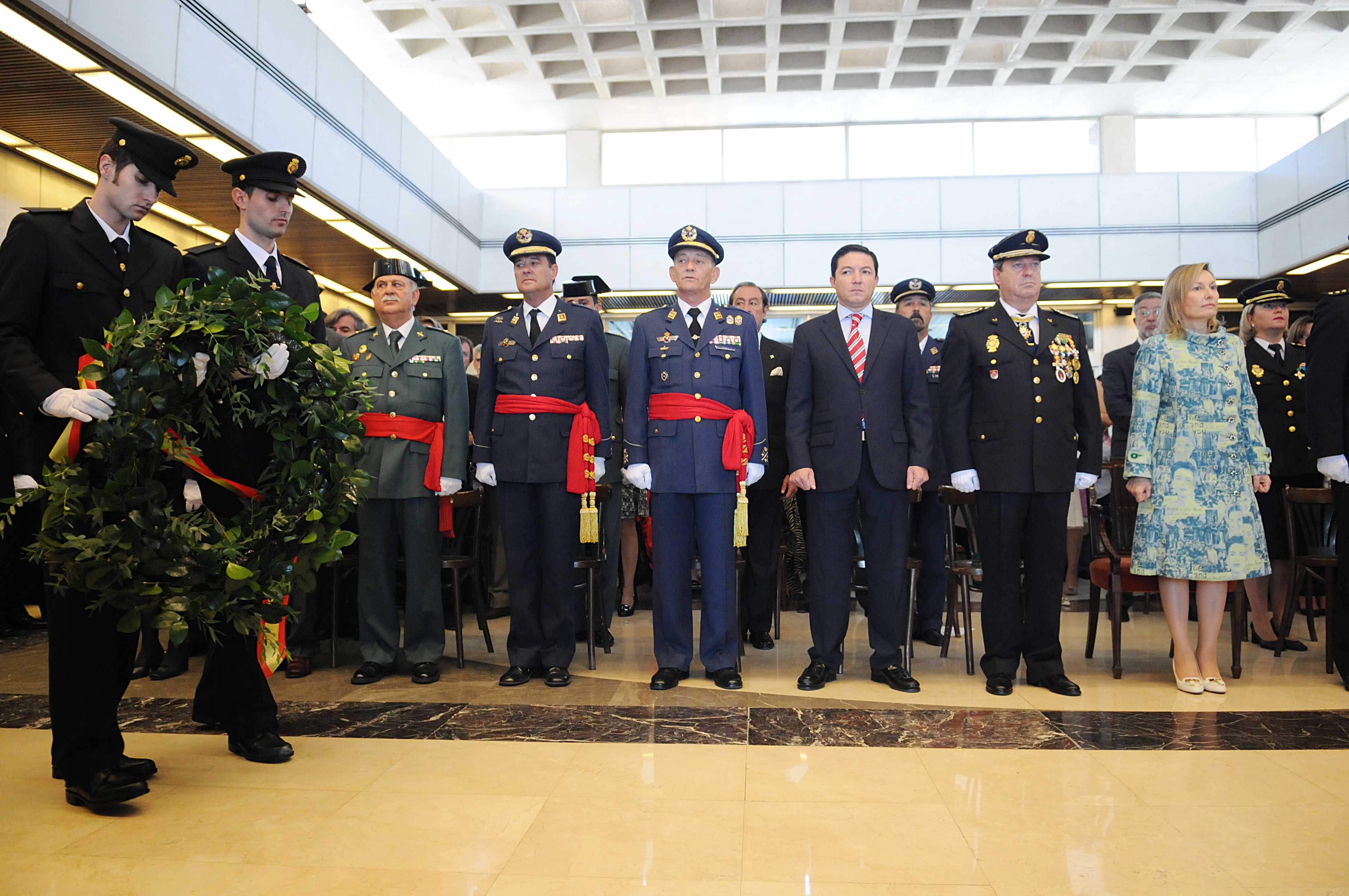 El delegado de Seguridad y Movilidad, Pedro Calvo, ha asistido a los actos de celebración del Patrón de Policía Nacional, los Santos Ángeles Custodios, que se han desarrollado esta mañana en el Pabellón del Estado del Aeropuerto de Madrid-Barajas, en la Terminal 1. Cerca de 60 personas entre agentes nacionales, guardias civiles, ciudadanos e instituciones han recibido un reconocimiento por su colaboración con las Fuerzas y Cuerpos de Seguridad del Estado.