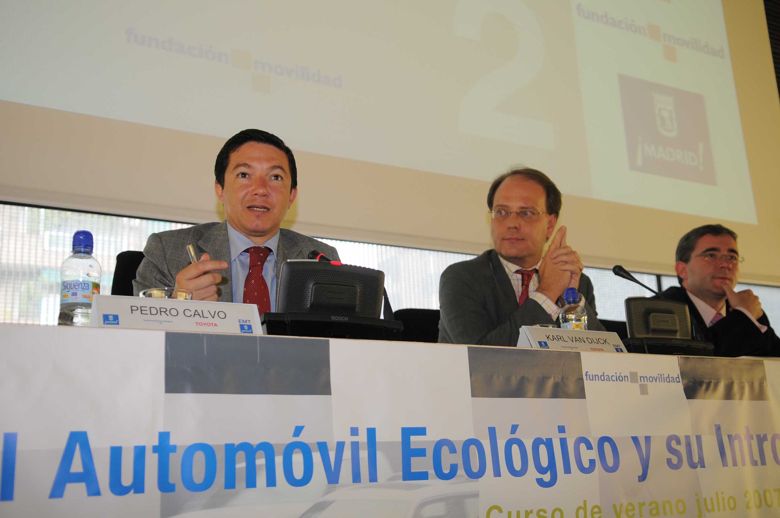 De izquierda a derecha, Antonio Lucio, director general de la Fundación Movilidad; Pedro Calvo, delegado de Movilidad; Karl Van Dijck, director de planificación de Toyota, y Javier Conde, director gerente de la Empresa Municipal de Transportes (EMT).