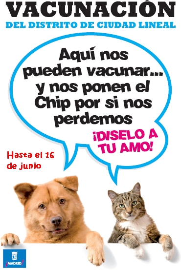 Hasta el 16 de junio los propietarios de perros y gatos pueden llevar a sus animales de compañía a los diferentes centros de vacunación distribuidos por toda la ciudad. Este año se ha modificado el emplazamiento de los dos centros con los que el distrito de Ciudad Lineal se suma a la campaña municipal.
