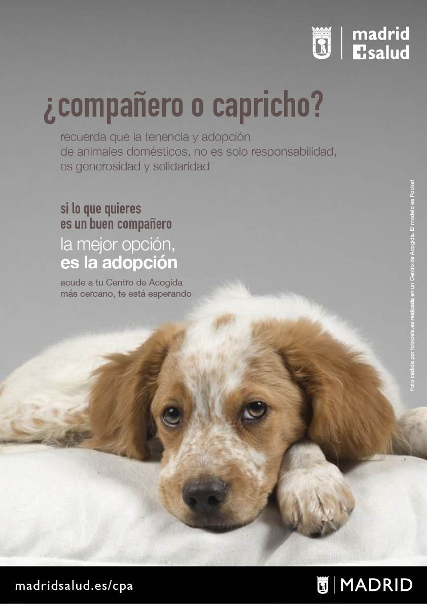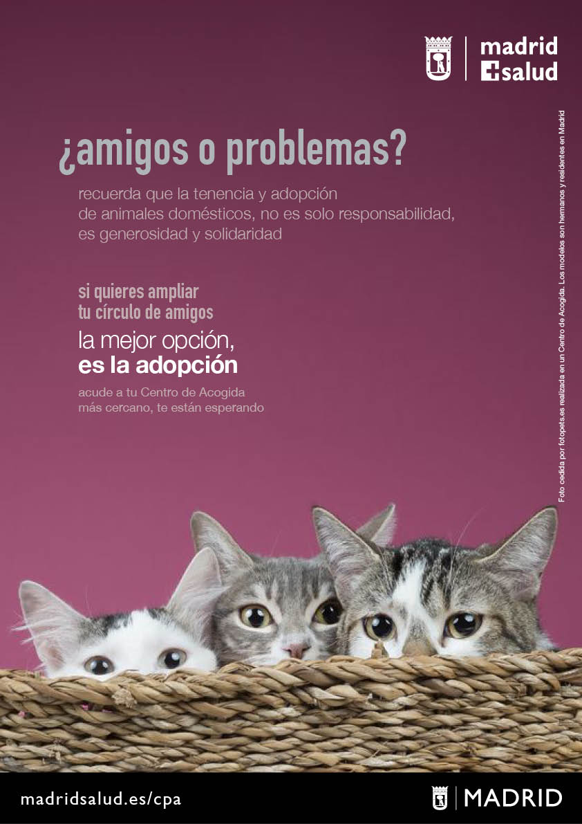 "¿Familia o juguete?", "Compañero o capricho?", "Colega o estorbo?", "Amigos o problemas?", "¿Magia o antojo?". Son cinco cuestiones básicas en torno a los animales de compañía sobre las que el Ayuntamiento de Madrid invita a reflexionar este fin de semana a través de una campaña de concienciación en radios y redes sociales, y cuyo objetivo es promover la tenencia responsable y la adopción frente a la compra.