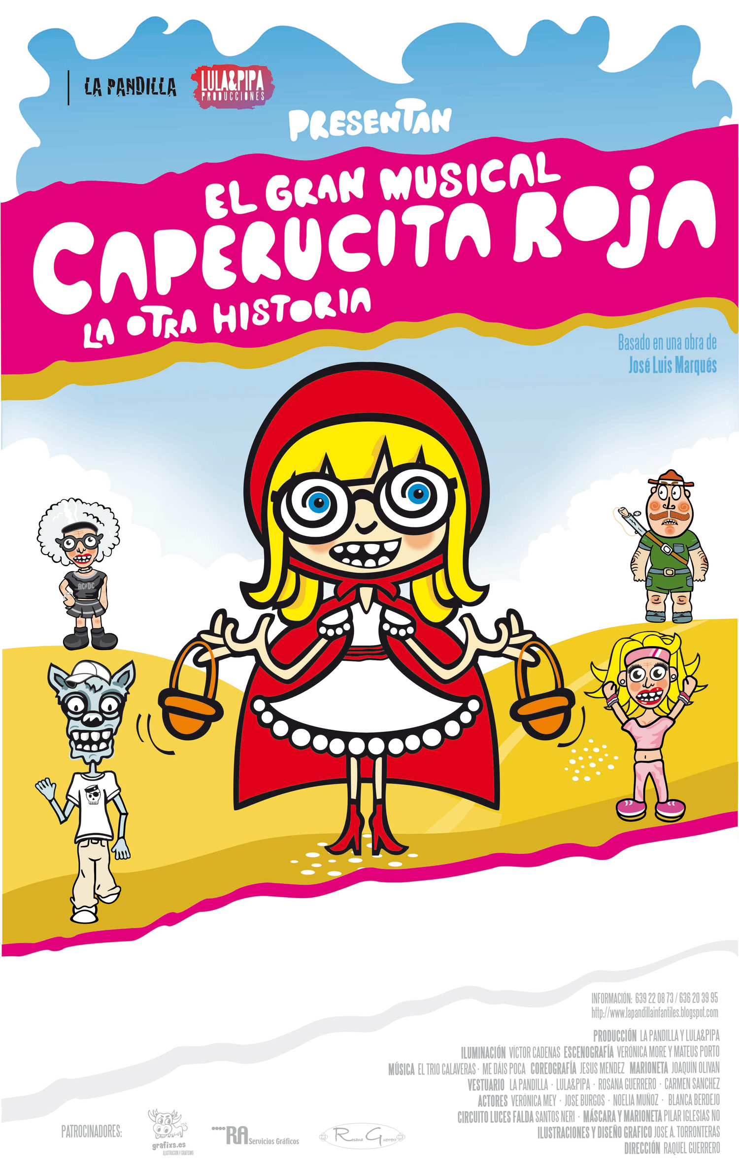 En la puesta en escena de esta nueva Caperucita colaboran dos grupos del actual circuito teatral madrileño: Amasumbu y Me Dais Poca que, dirigidos por Raquel Guerrero, consiguen convertir el clásico cuento en una fiesta musical en el que padres y niños disfrutarán a partes iguales.