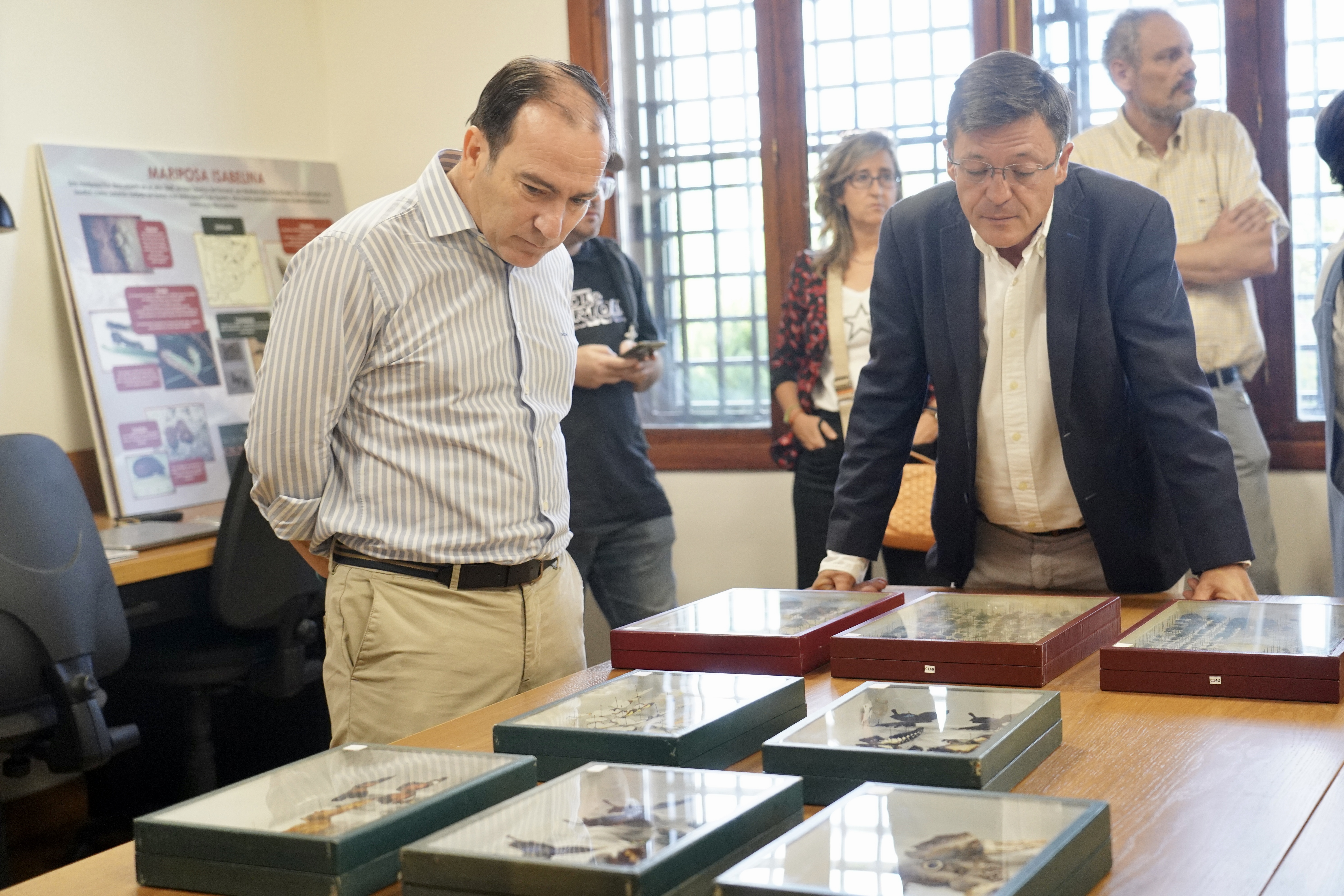 El delegado de Urbanismo, Medio Ambiente y Movilidad, Borja Carabante, y el concejal delegado de Limpieza y Zonas Verdes, José Antonio Martínez Páramo, han visitado hoy el Centro Entomológico Manuel Ortego, donde han destacado la importancia de la colección no sólo como valor del entorno natural y cultural del gran parque forestal madrileño, sino como una mejora de la experiencia de sus visitantes.