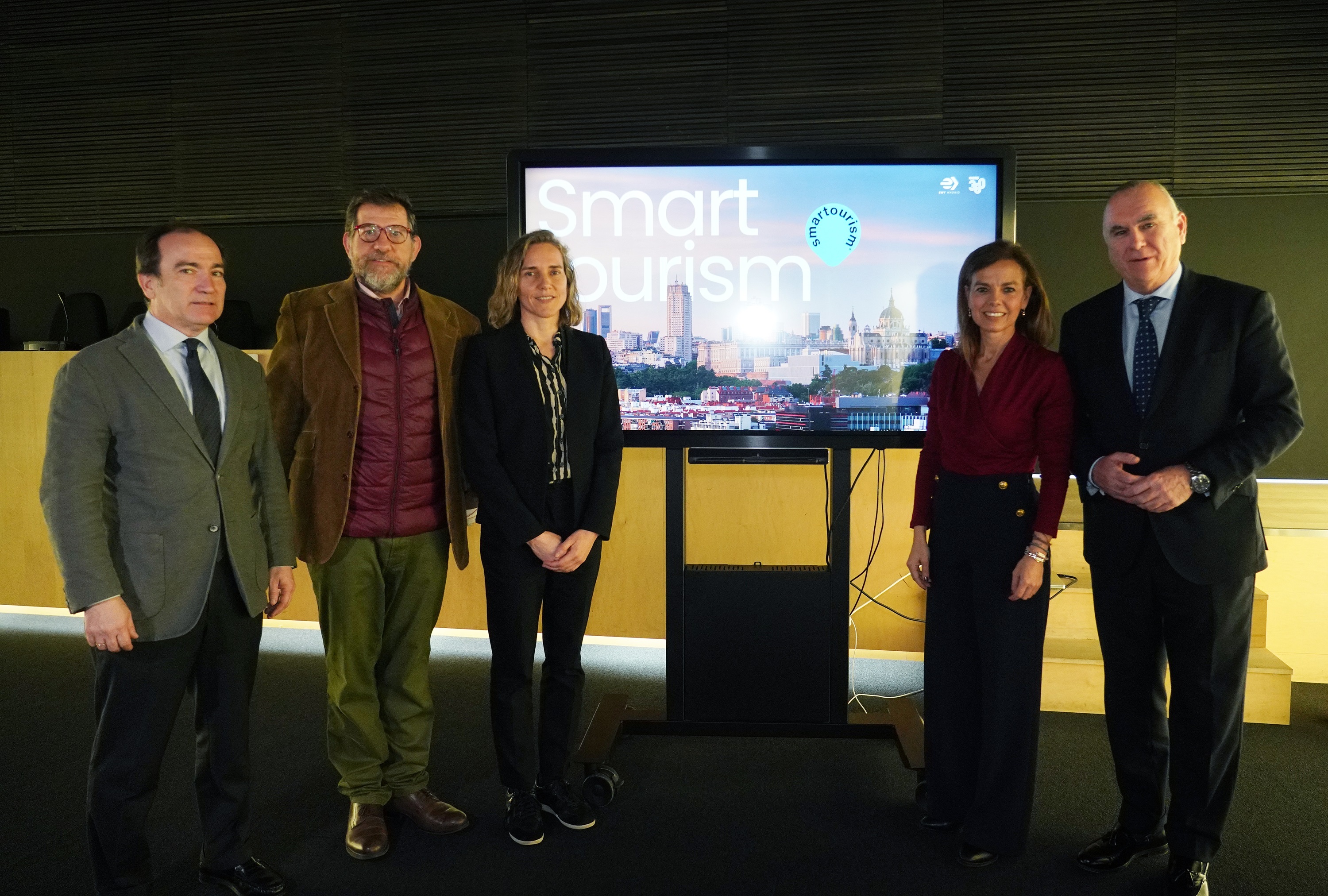 El delegado de Urbanismo, Medio Ambiente y Movilidad, Borja Carabante, junto la concejala delegada de Turismo, Almudena Maíllo, ha presentado esta mañana Smart Tourism, una innovadora herramienta destinada a mejorar la experiencia turística en la ciudad de Madrid y fomentar el uso del transporte público.