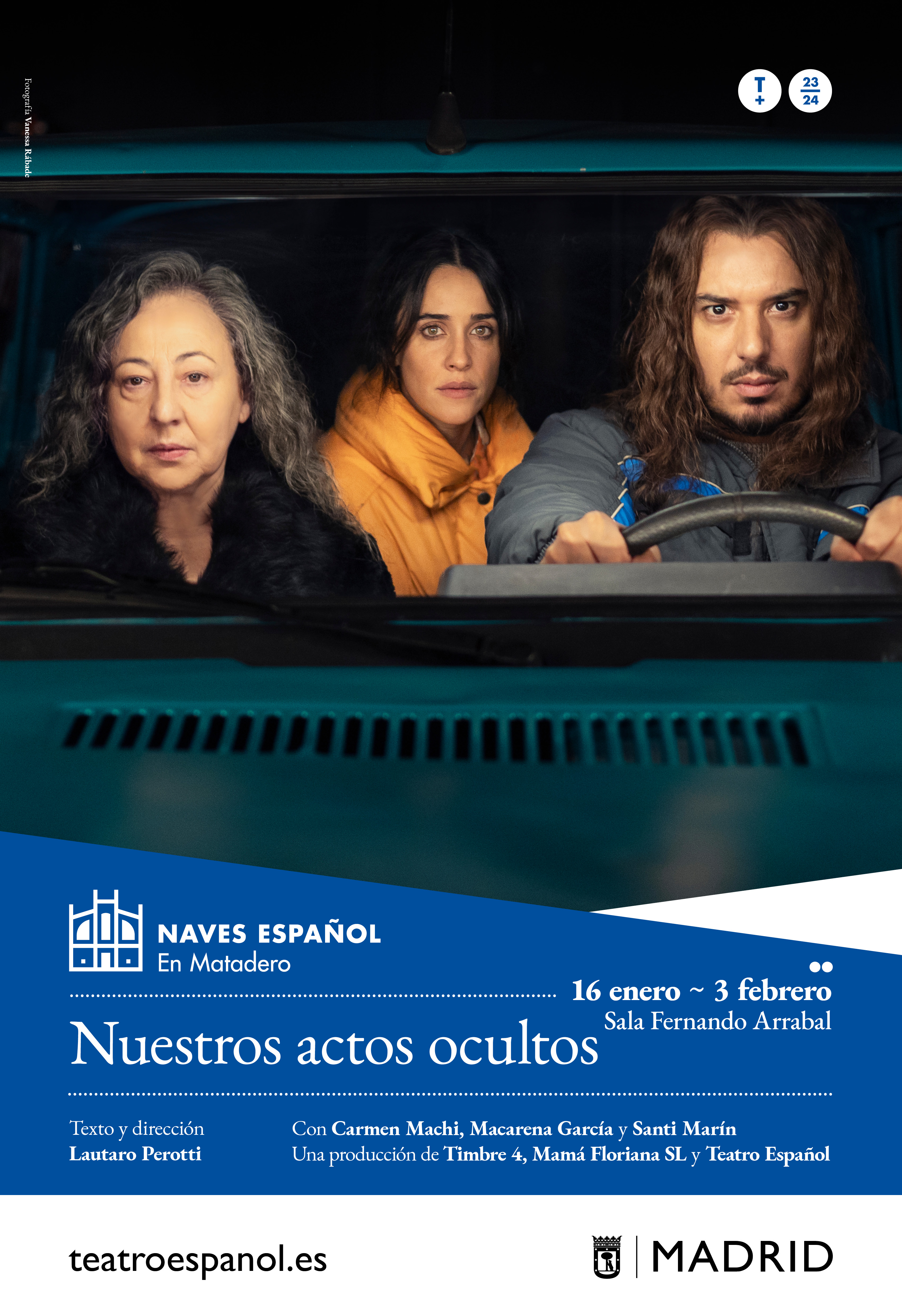 Naves del Español en Matadero, espacio del Área de Cultura, Turismo y Deporte, ha acogido hoy la presentación del estreno absoluto de Nuestros actos ocultos, obra escrita y dirigida por Lautaro Perotti, que podrá verse en la Sala Fernando Arrabal durante tres únicas semanas, del 16 de enero al 3 de febrero. El espectáculo, una historia familiar de relaciones rotas y soledades encontradas, está protagonizado por Carmen Machi, Macarena García y Santi Marín.