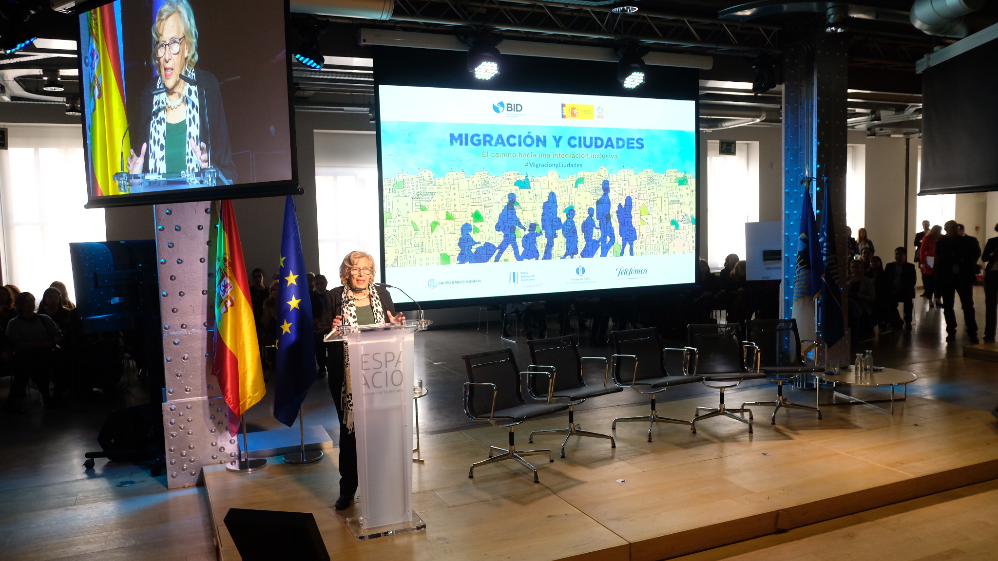 La alcaldesa de Madrid, Manuela Carmena, ha intervenido esta mañana en el acto ‘Migración y ciudades, el camino a una integración inclusiva’, organizado en el Espacio Fundación Telefónica dentro del contexto de la Plataforma sobre Migraciones y Desplazamiento Forzoso, coordinada por los Bancos Multilaterales de Desarrollo (BMD). Madrid es una de las más de cien ciudades del mundo que ha firmado el acuerdo Ciudades trabajando juntas por los migrantes y refugiados, que defiende que la migración sigue siendo ante todo un fenómeno urbano local.