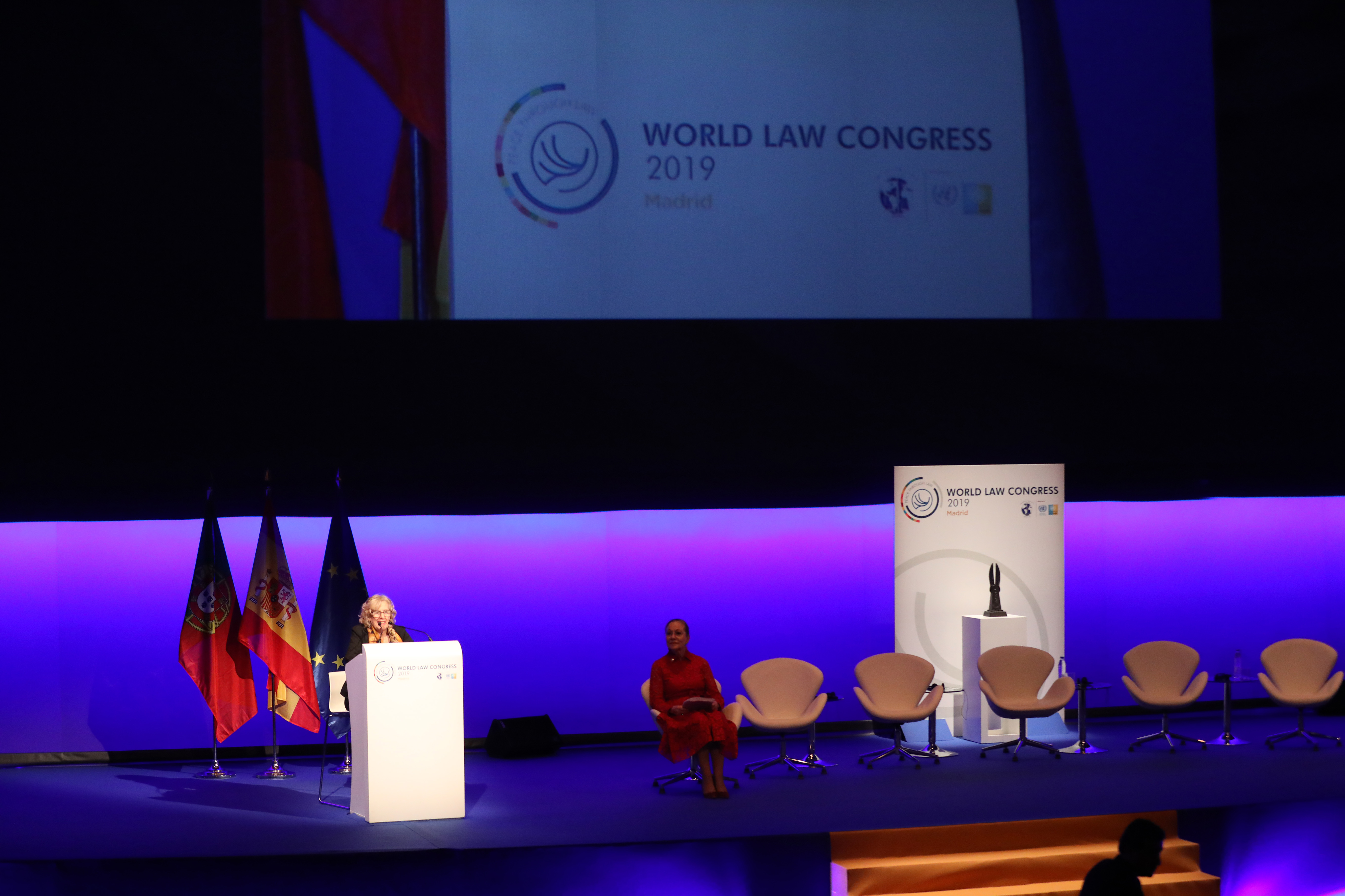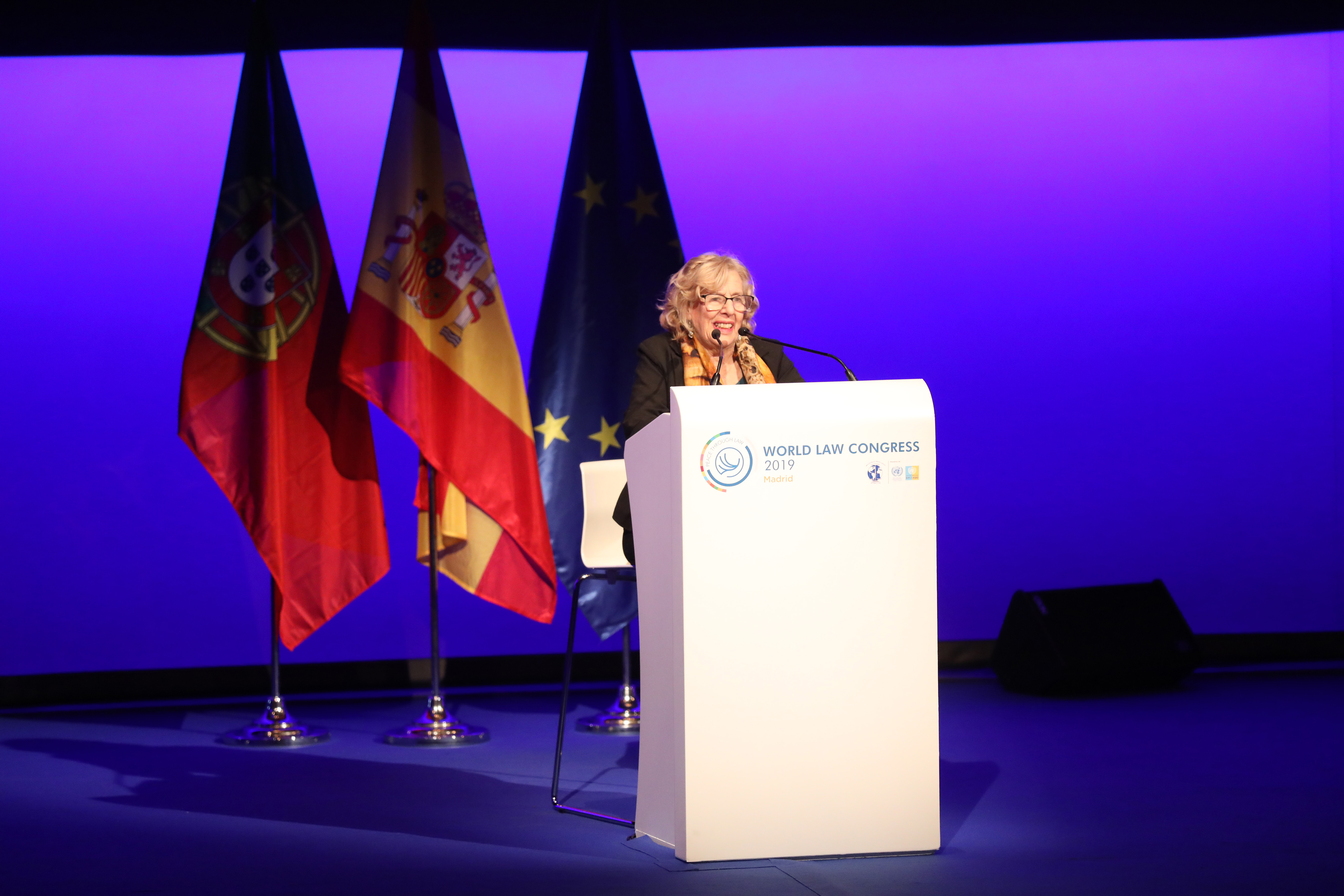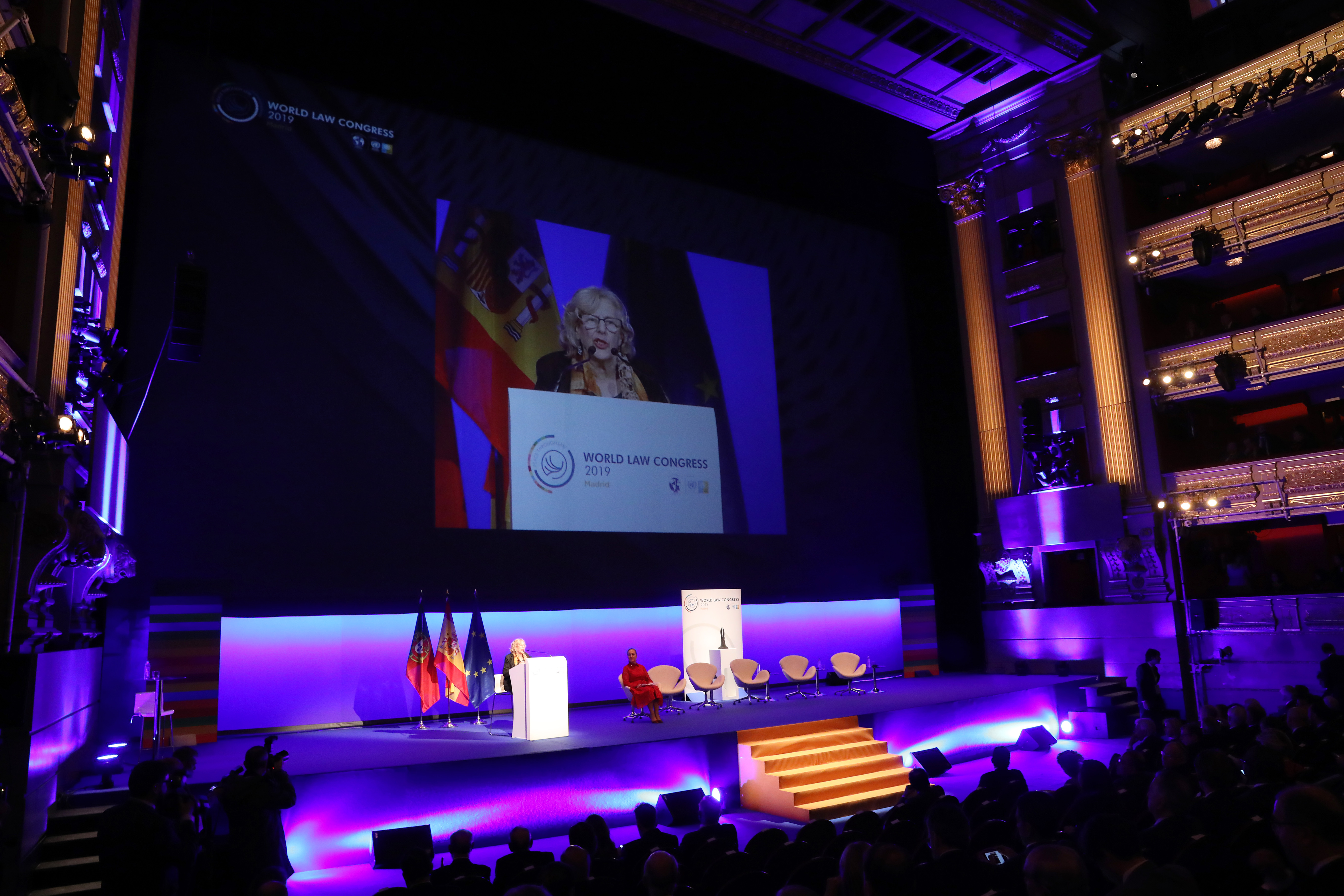 Manuela Carmena, alcaldesa de Madrid, ha abierto hoy el ‘Acto de afirmación de la paz a través del Derecho’, con el que se ha iniciado la segunda jornada de la XXVI edición del Congreso Bienal de la ‘World Jurist Association’ que, durante ayer y hoy, ha tenido como escenario el Teatro Real. A la cita han acudido más de 2000 juristas, procedentes de 67 países. Bajo el lema ‘Constitución, Democracia y Libertad’, el encuentro ha convertido a Madrid en la segunda ciudad del mundo, junto con Washington, que acoge este congreso en más de una ocasión. El evento se ha clausurado con la entrega al rey Felipe VI del premio ‘World Peace & Liberty Award’por “su inquebrantable compromiso con el Estado de derecho y la defensa de la democracia y la libertad”, un galardón que poseen estadistas como Winston Churchill y Nelson Mandela.
