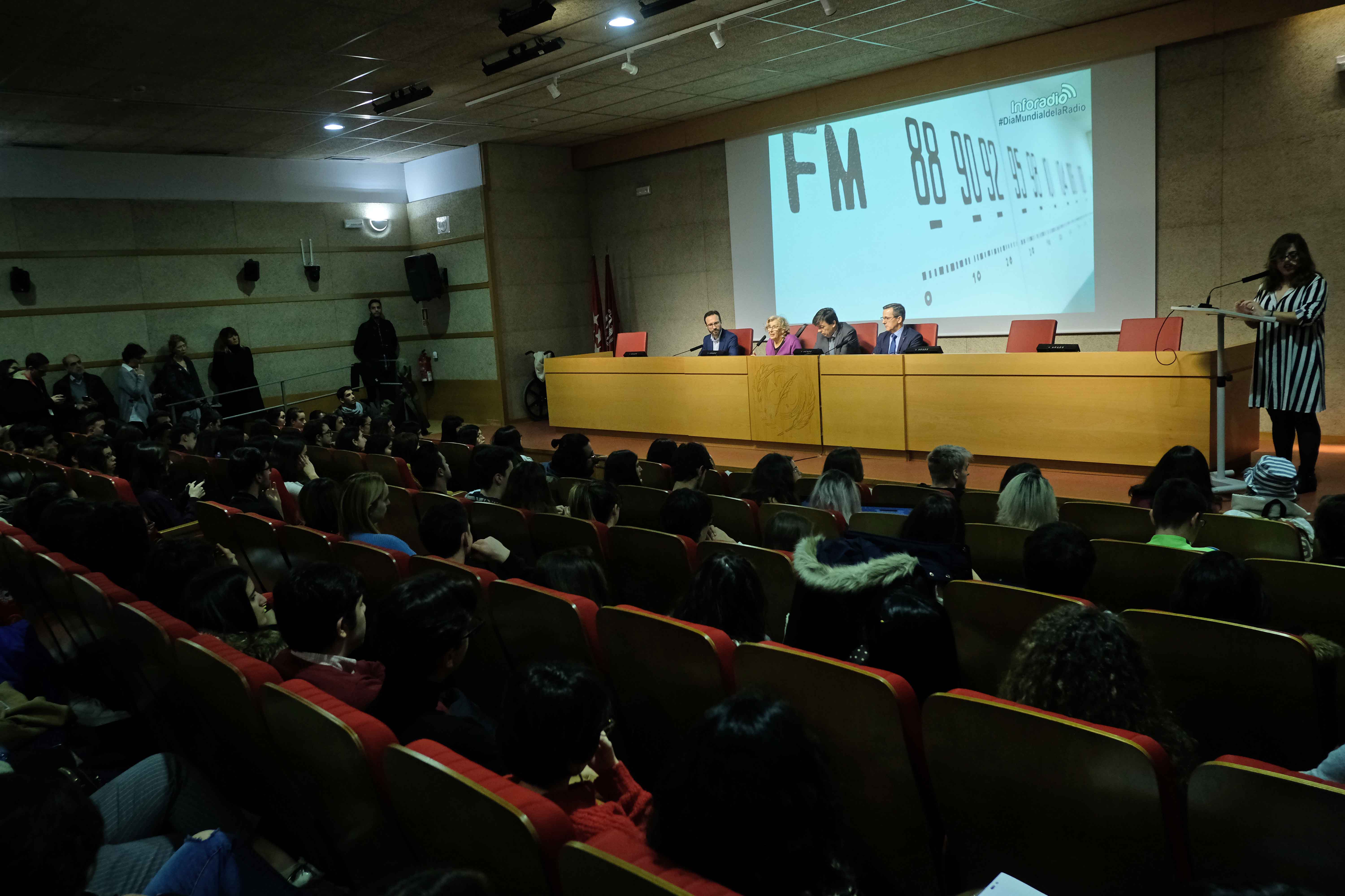 La alcaldesa de Madrid, Manuela Carmena, ha visitado hoy Inforadio, la radio de la Facultad de Ciencias de la Información de la Universidad Complutense de Madrid, con ocasión del Día Mundial de la Radio, para ser entrevistada por los alumnos. Carmena ha animado a los futuros periodistas a ser innovadores y a profundizar e investigar. En 2013, la UNESCO decidió dedicar el 13 de febrero a la radio para concienciar a los ciudadanos y a los medios de comunicación acerca de la importancia de esta plataforma.