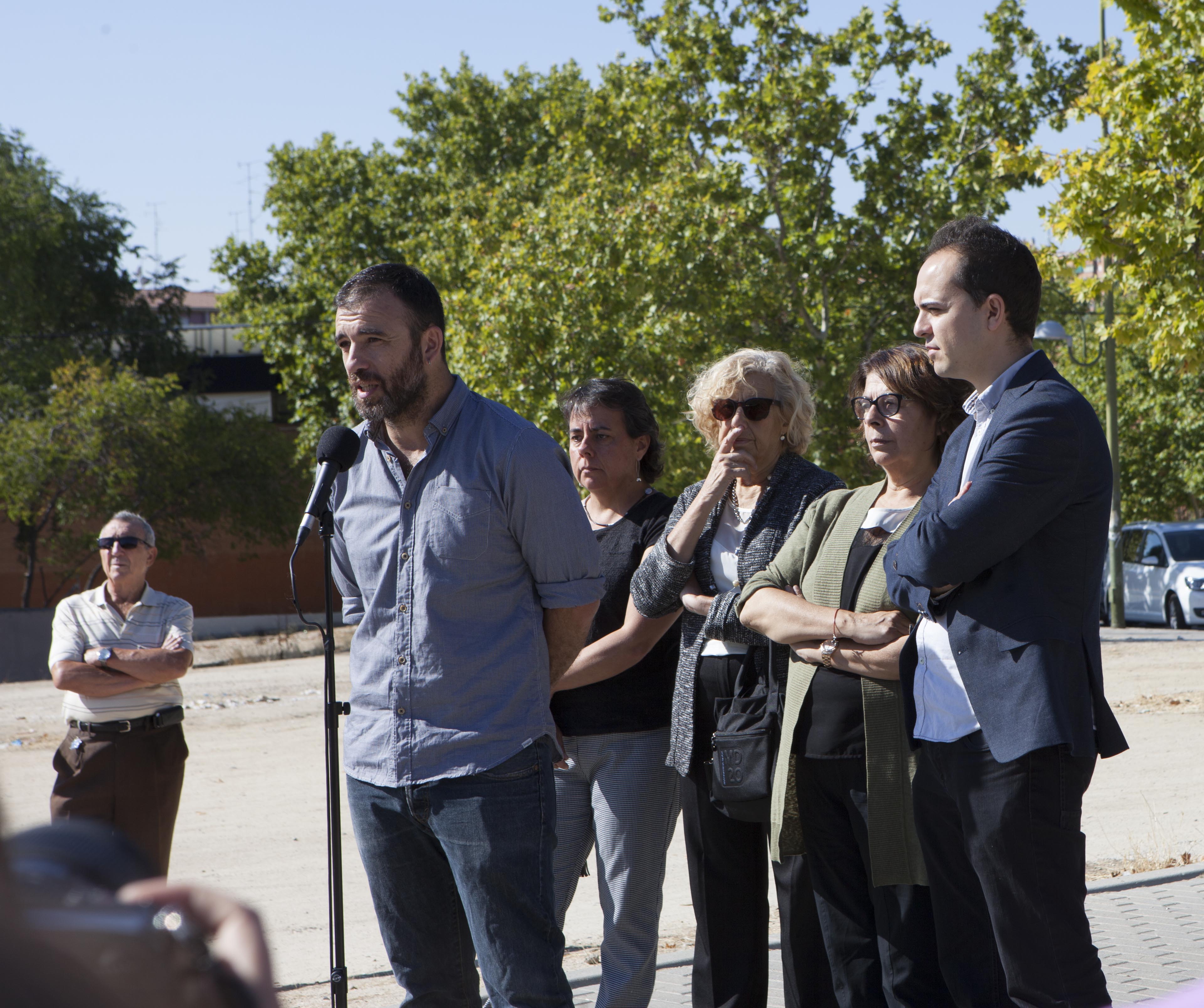 "Me encantaría anunciar lo antes posible que este solar donde hoy nos reunimos, y que de hecho es conocida como plaza Cívica, será pronto una plaza digna, con todos los equipamientos adecuados, para todos los vecinos y vecinas del distrito". Gómez Lahoz hacía estas declaraciones al término de la visita, que ha comenzado a las 10 de la mañana en la Junta Municipal (Avda. Arcentales, 28) y ha continuado por el Estadio de La Peineta, el Centro Acuático y la finca de Torre Arias.