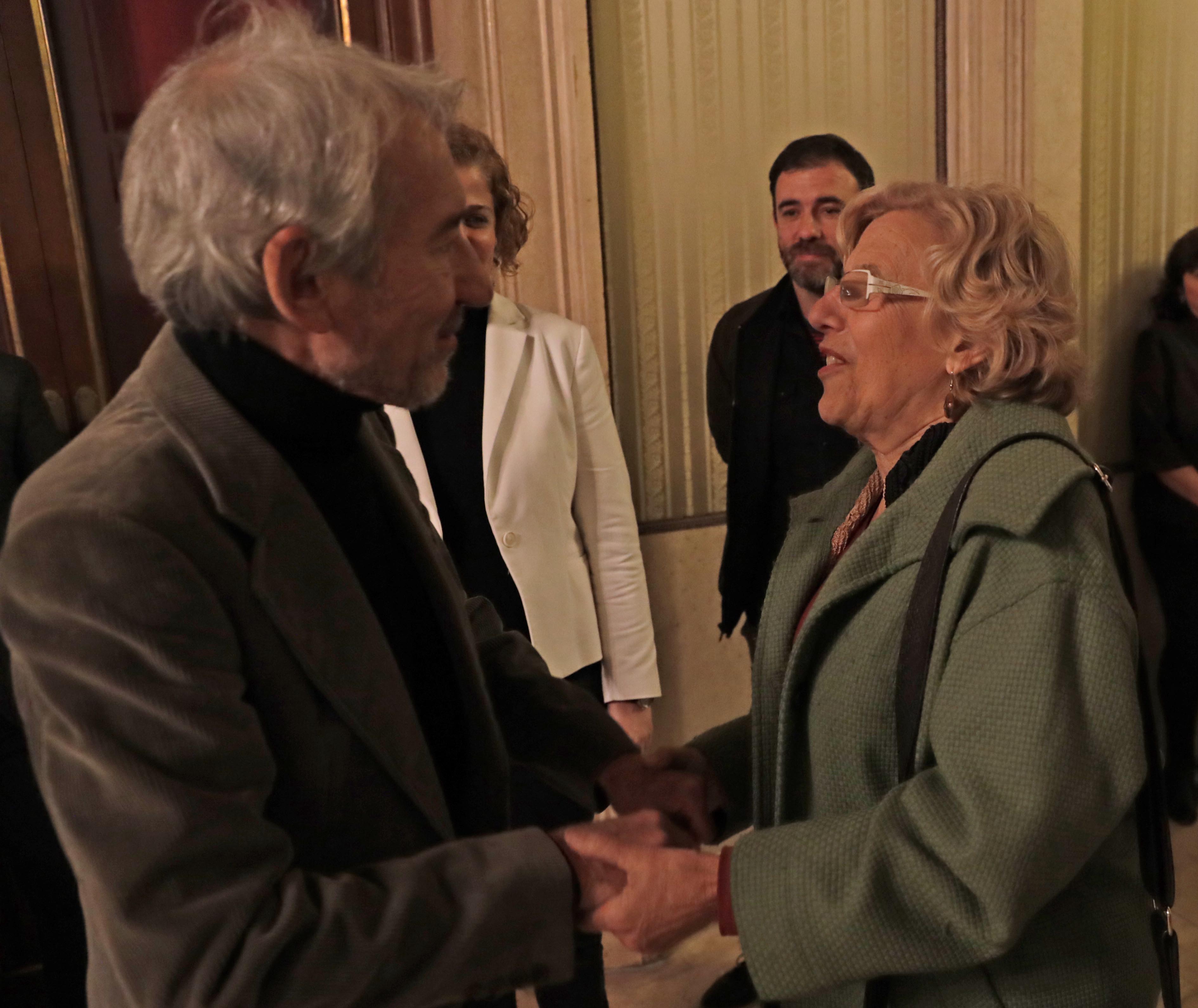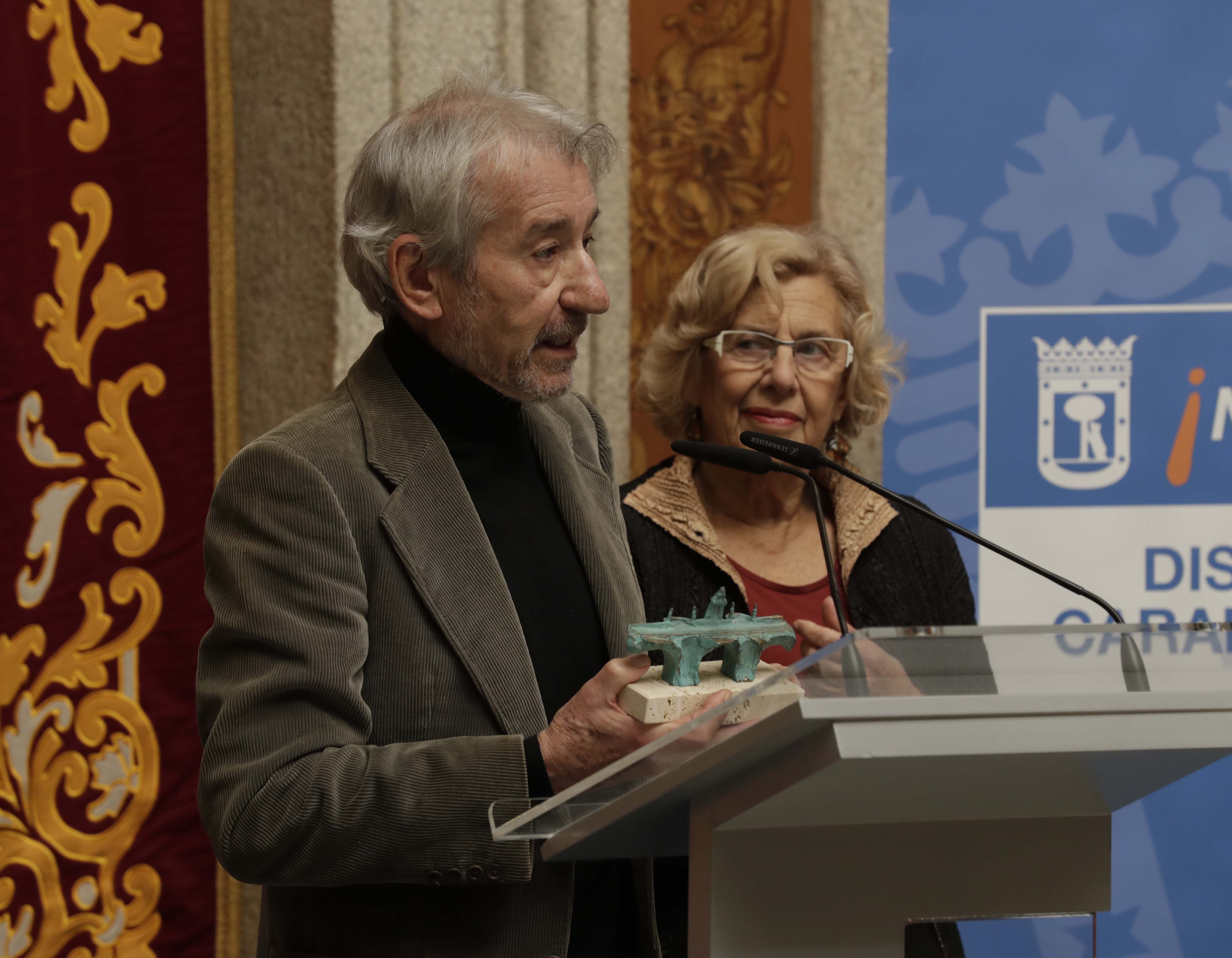 Carmena se ha congratulado por tener la oportunidad de darle este premio a José Sacristán, que se ha otorgado en reconocimiento a su gran trayectoria como actor. La alcaldesa, dirigiéndose a Sacristán, ha dicho que estaba encantada de darle este galardón “porque creo que tú y, en general, todos los actores tenéis esa facilidad de ‘meteros’ en nuestras vidas. De alguna manera tú eres un poco de todos, de todos los madrileños, porque durante tanto tiempo hemos conseguido identificarnos contigo… nos has hecho sentir que eras de los nuestros”. El actor por su parte, ha querido explicar a los asistentes su gran sueño de niño de ser actor y su conexión con Carabanchel.