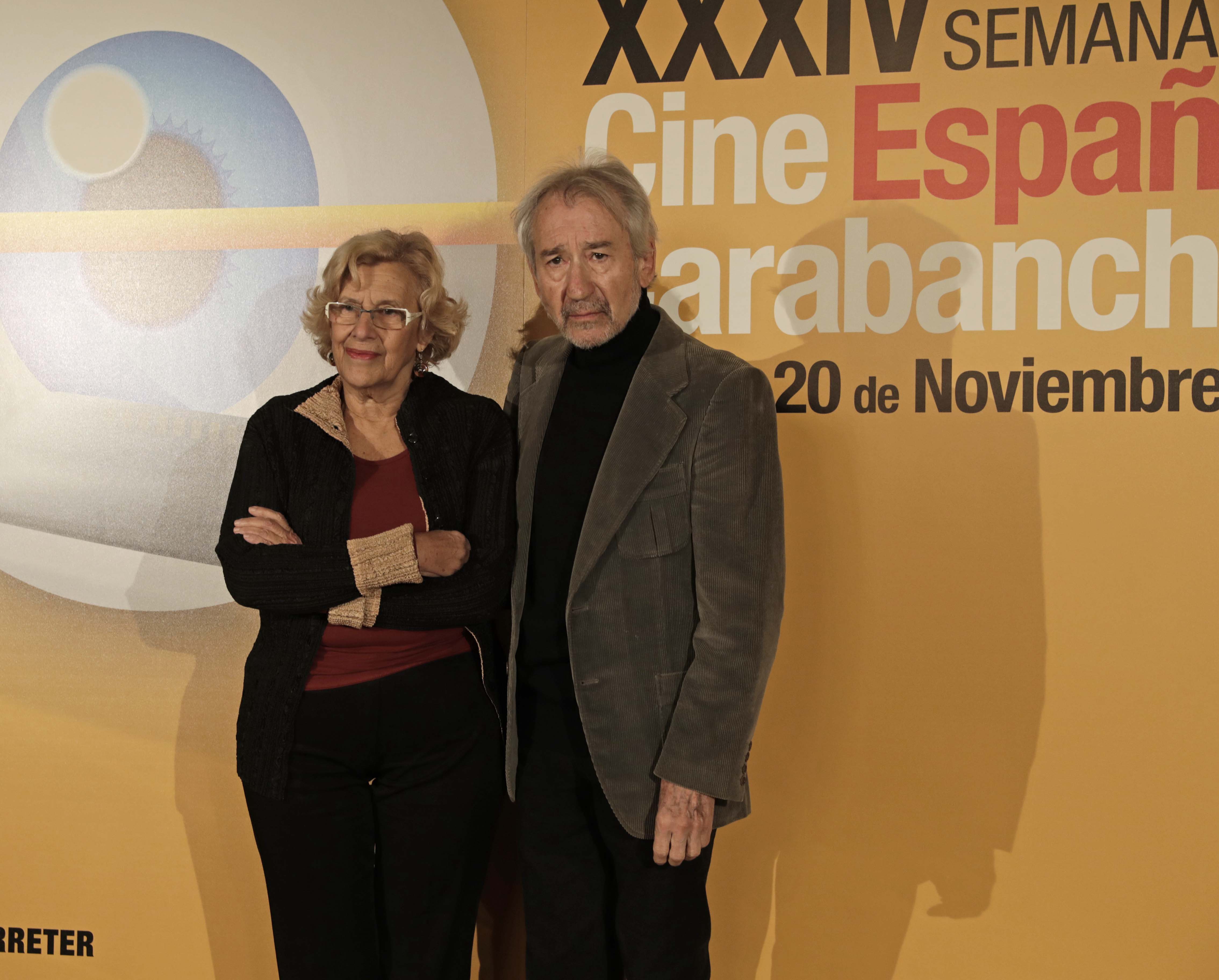 La alcaldesa de Madrid, Manuela Carmena, ha entregado el premio Puente de Toledo al actor José Sacristán durante la gala de presentación de la XXXIV Semana de Cine Español de Carabanchel.