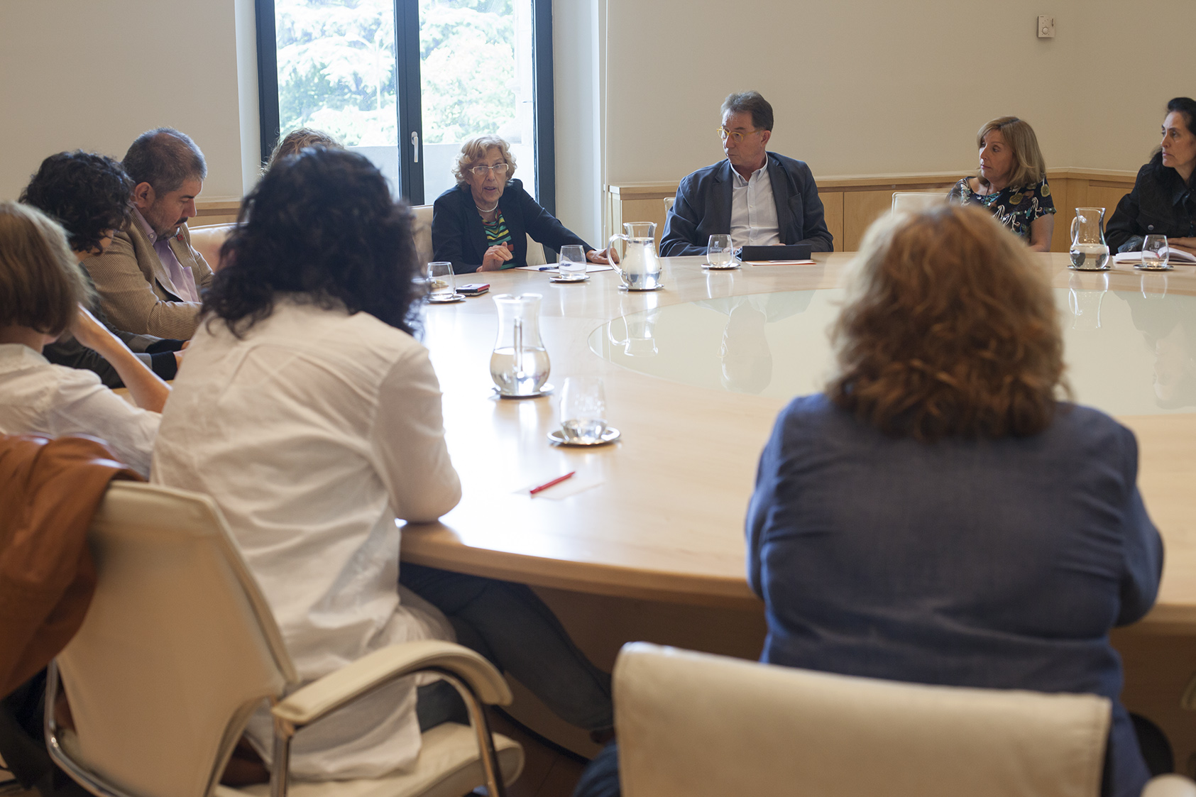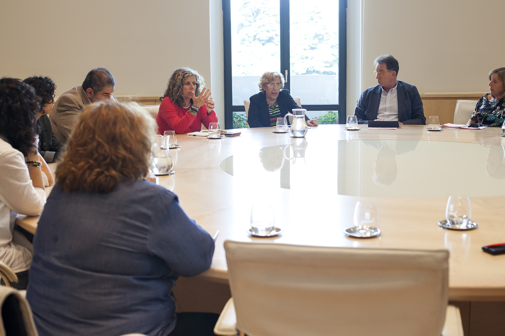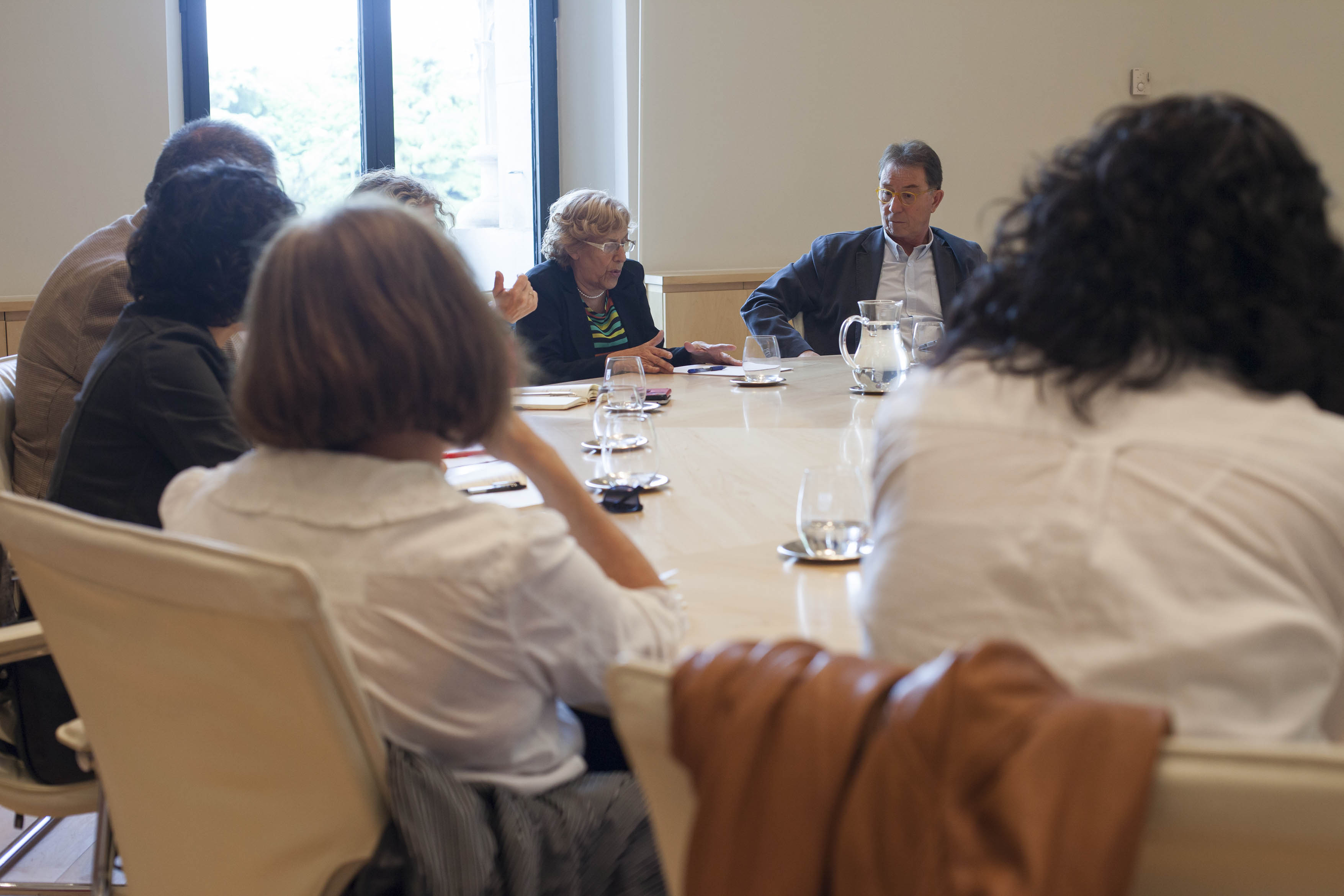 La alcaldesa de Madrid, Manuela Carmena, se ha reunido esta mañana (lunes, 30 de mayo) con Jaime Cedrún, secretario general de CCOO de Madrid. En la entrevista, la primera de la alcaldesa con CCOO de Madrid y en la que el sindicato ha presentado su ejecutiva a Carmena, se han tratado fundamentalmente los problemas de empleo en Madrid.