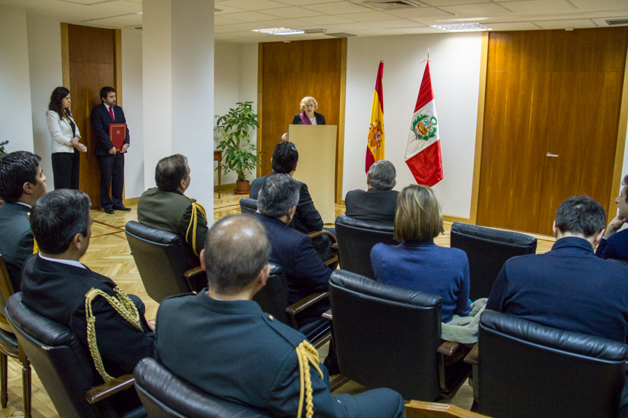 Para finalizar el acto, la alcaldesa de Madrid ha trasmitido al embajador Rafael Roncagliolo su "emoción, alegría y agradecimiento" por esta distinción y que transmita estos sentimientos al Presidente de la República del Perú, Ollanta Humala./