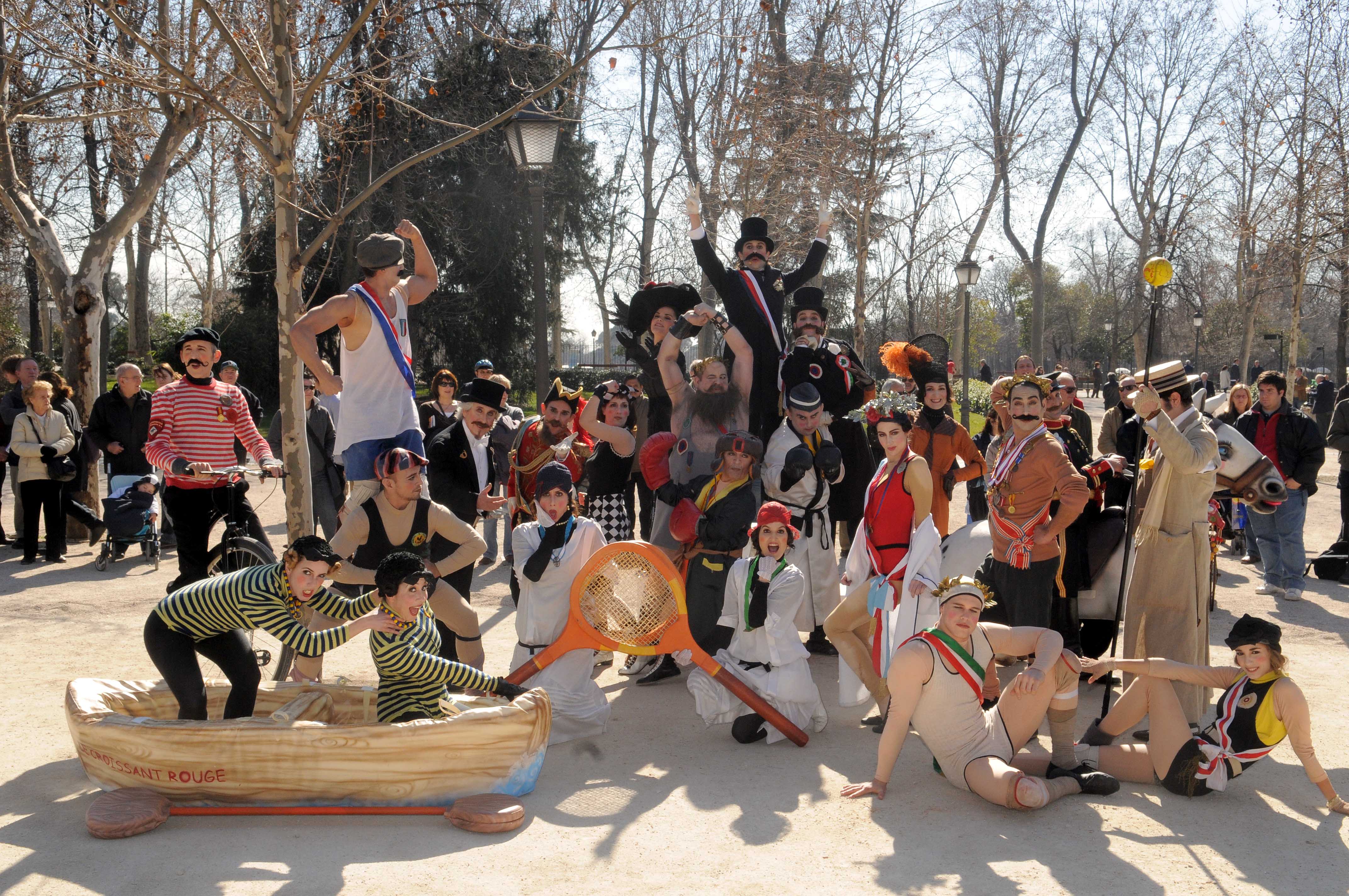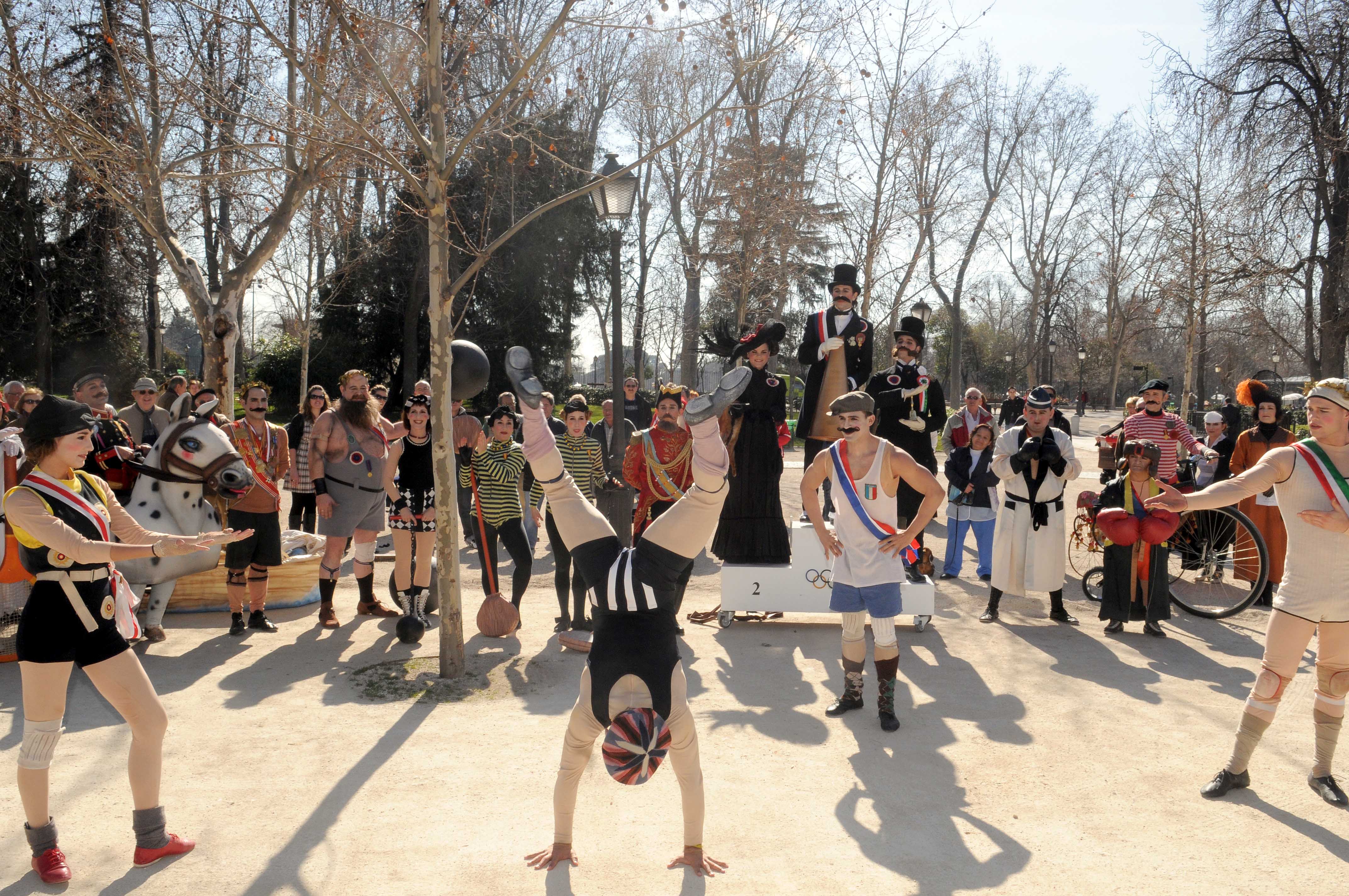 En el año en que Madrid sabrá finalmente si será la ciudad elegida para albergar los Juegos Olímpicos de 2016, el Área de Las Artes ha preparado un Carnaval inspirado en la estética de los orígenes de las Olimpiadas. Retrocederá en el tiempo hasta 1896 y recuperará la figura del Barón de Coubertain, quien, acompañado por miembros de su peculiar Comité Olímpico, intercambiará con el Ayuntamiento los aros olímpicos y las llaves de la Ciudad.