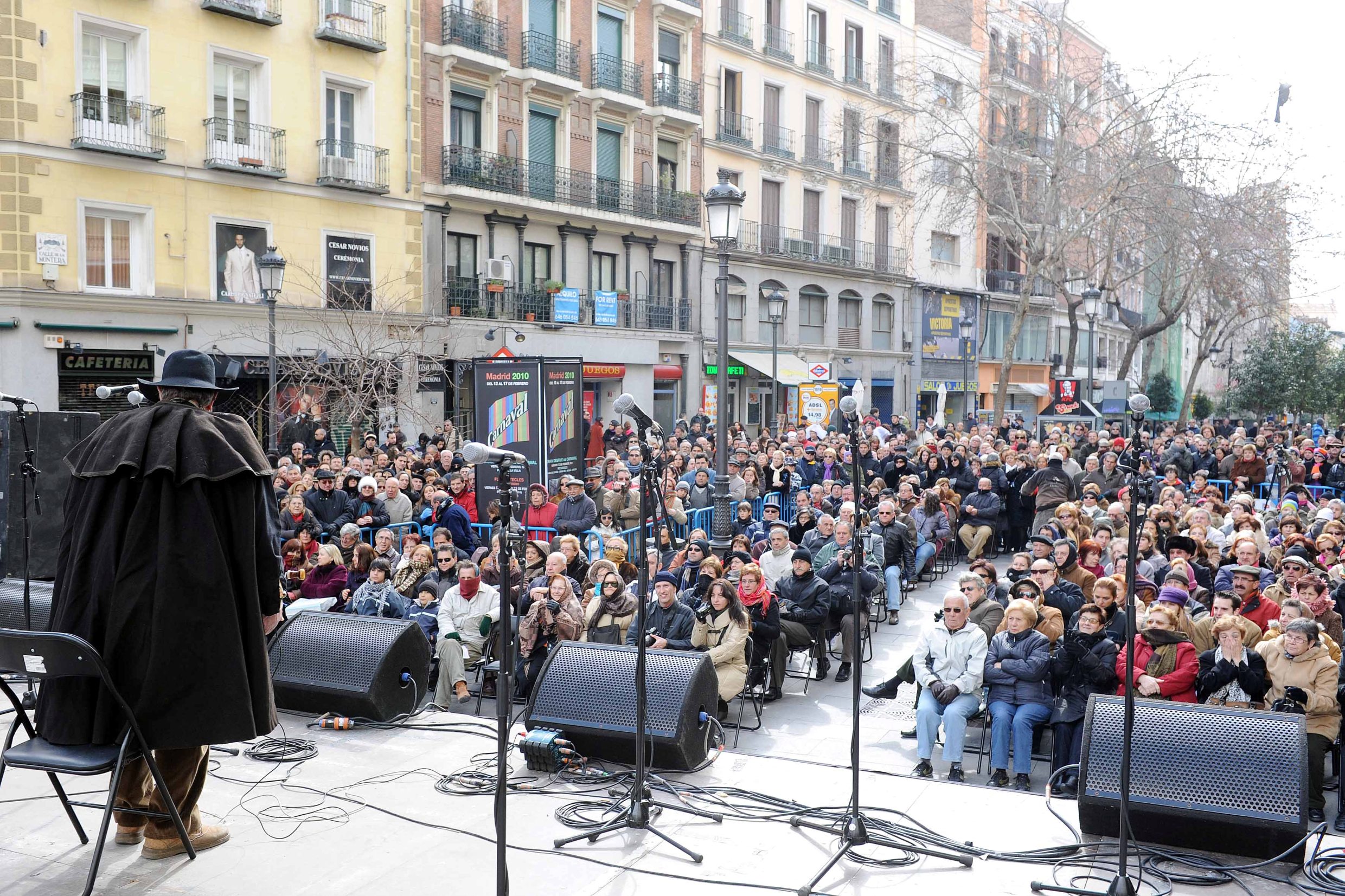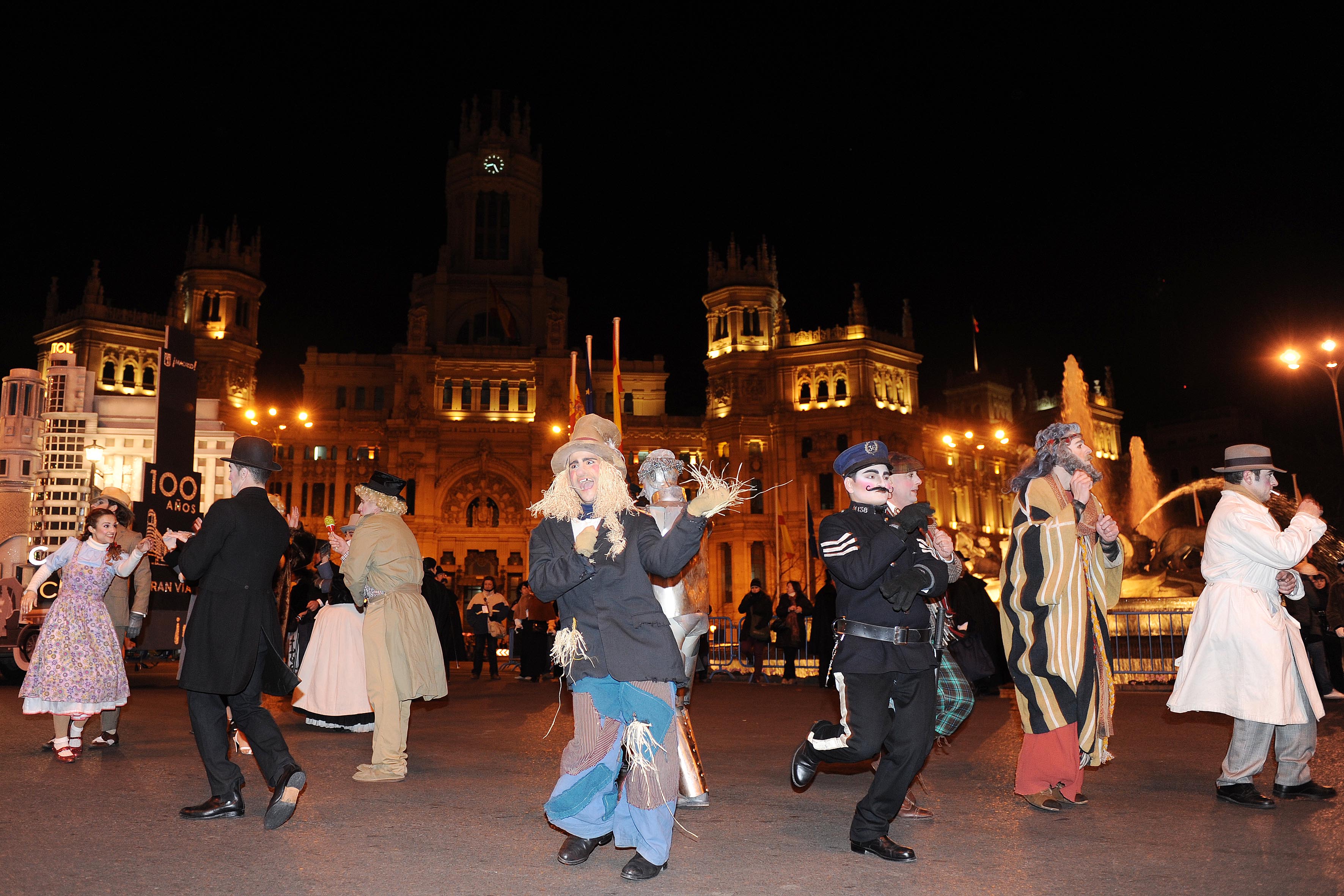 ‘Un Carnaval de cine’ es el lema de los actos que componen el programa que ha preparado el Área de las Artes, del Ayuntamiento de Madrid, y el que presidió el desfile que tuvo lugar en la tarde de ayer. Con personajes de cine y maquetas de los edificios más emblemáticos de la avenida, que cumple ahora cien años de existencia, el acto tuvo una masiva asistencia de ciudadanos, muchos de los cuales acudieron con sus disfraces. Posteriormente se organizó un concurso de disfraces de Carnaval en el Círculo de Bellas Artes. Las murgas y comparsas han salido hoy a la calle y se han congregado en la Red de San Luis para continuar con la fiesta, que se extenderá hasta el próximo miércoles, cuando se celebrará el tradicional Entierro de la Sardina.
