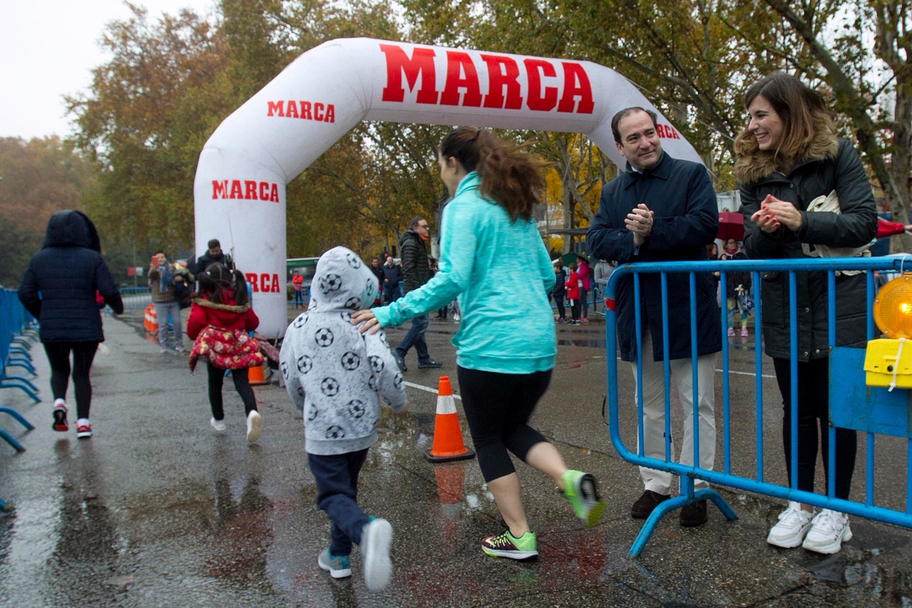 La prueba ha tenido recorridos adaptados a los diferentes tramos de edad en los que estaba dividida esta cita deportiva de inscripción gratuita y organizada por el Área Delegada de Deporte del Ayuntamiento de Madrid. Los menores de tres a seis años, acompañados de un adulto, han recorrido una distancia de 450 metros, los de 7 a 11 años, 800 metros y los de 13 a 15 años, 1.200 metros. Al finalizar, todos ellos han recibido un obsequio de recuerdo de manos de Carabante y Miranda por su aportación en la lucha contra el cambio climático. /