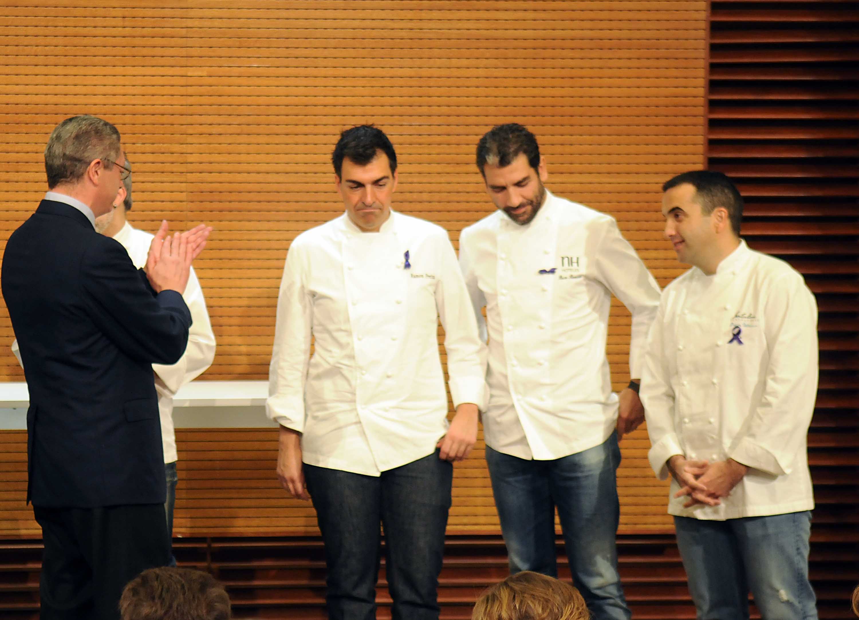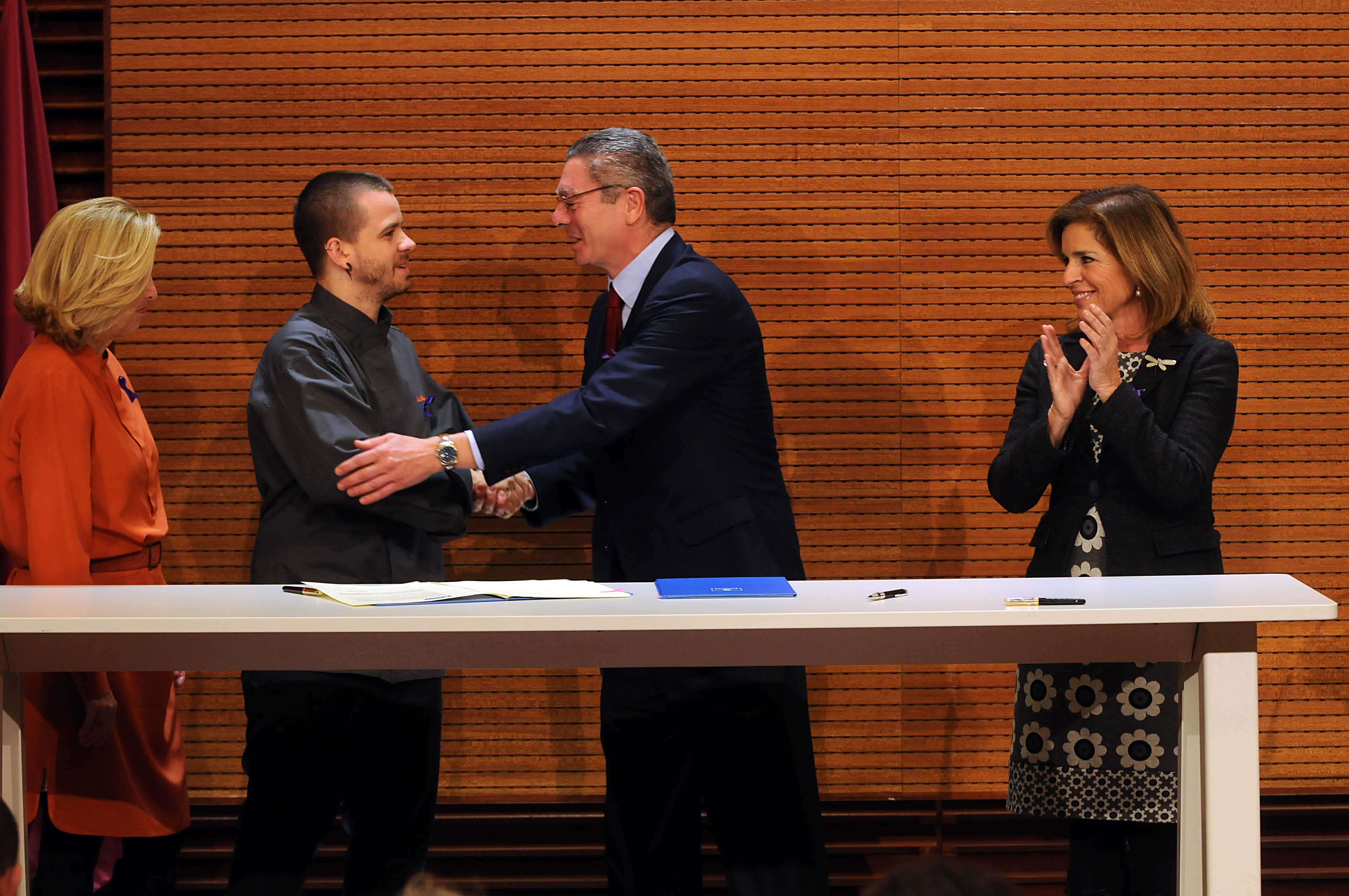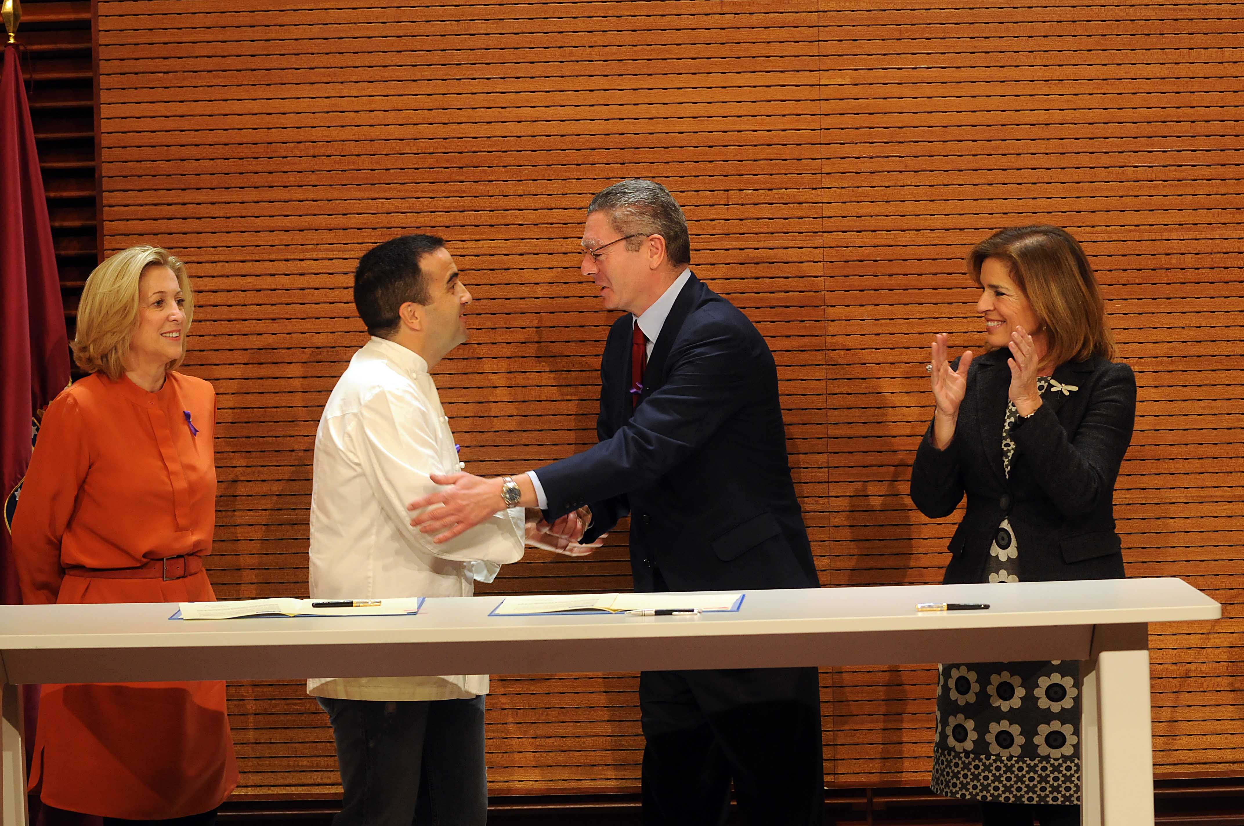 Los seis restaurantes madrileños con dos estrellas Michelín -Santceloni, de Oscar Velasco; la Terraza del Casino, de Paco Roncero; Sergi Arola Gastro; Ramón Freixa Madrid; Diverxo, de David Muñoz, y el Club Allard, de Diego Guerrero- han asumido el compromiso de preparar la cena de Nochebuena para las 89 mujeres que pasarán este día tan especial en los diferentes Centros de Alojamiento Protegido del Ayuntamiento de Madrid. Esta iniciativa se ha plasmado en un protocolo de colaboración firmado hoy por el alcalde, Alberto Ruiz-Gallardón, la delegada de Familia y Servicios Sociales, Concepción Dancausa, y los seis chefs Michelin.