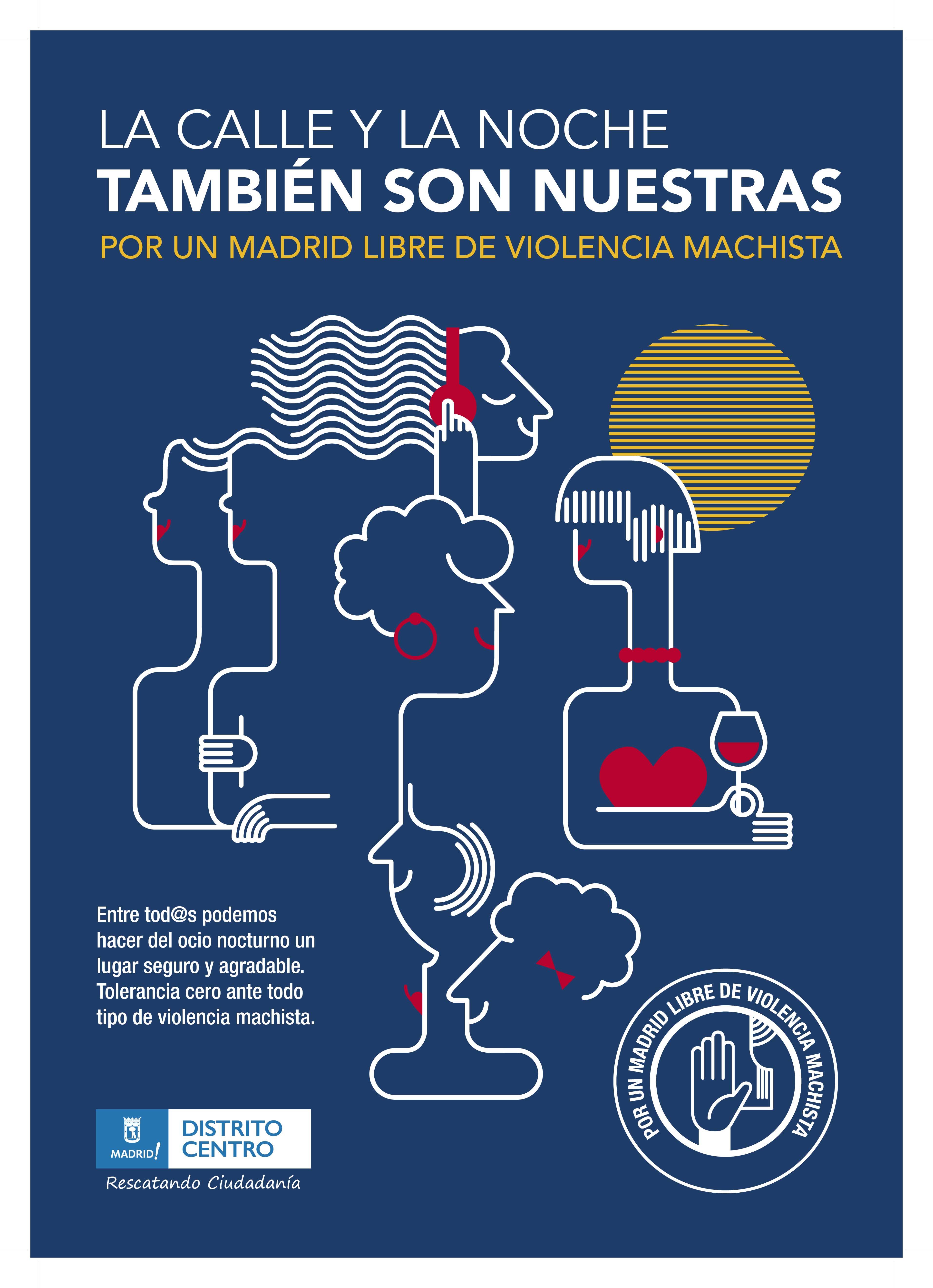 El distrito Centro pone en marcha hoy la campaña "La calle y la noche también son nuestras. Por un Madrid libre de violencias machistas", que se desarrollará principalmente en locales de ocio nocturno y que tiene como objetivo la recuperación de los espacios públicos para las mujeres.
