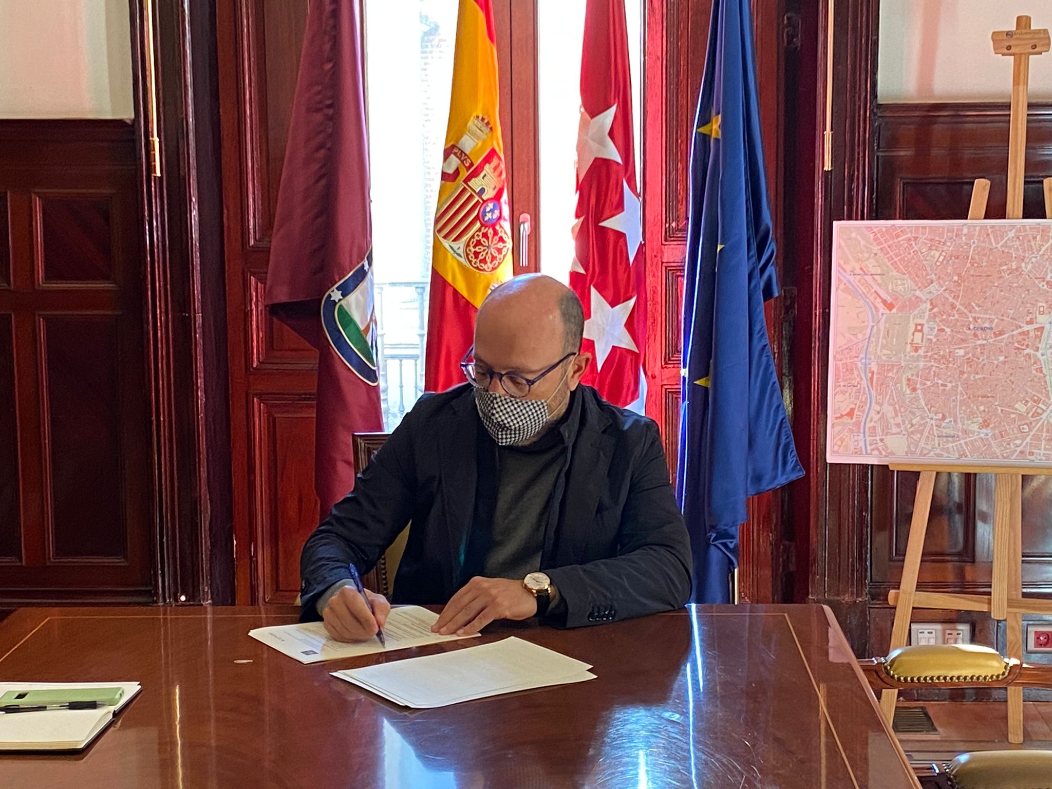 El concejal del distrito de Centro, José Fernández, y la presidenta del Club Deportivo Elemental Dragones de Lavapiés, Dolores Galindo, han suscrito un convenio de colaboración para poner en macha la iniciativa deportiva, participativa y social ‘Fútbol para la igualdad de género en el barrio de Embajadores’.