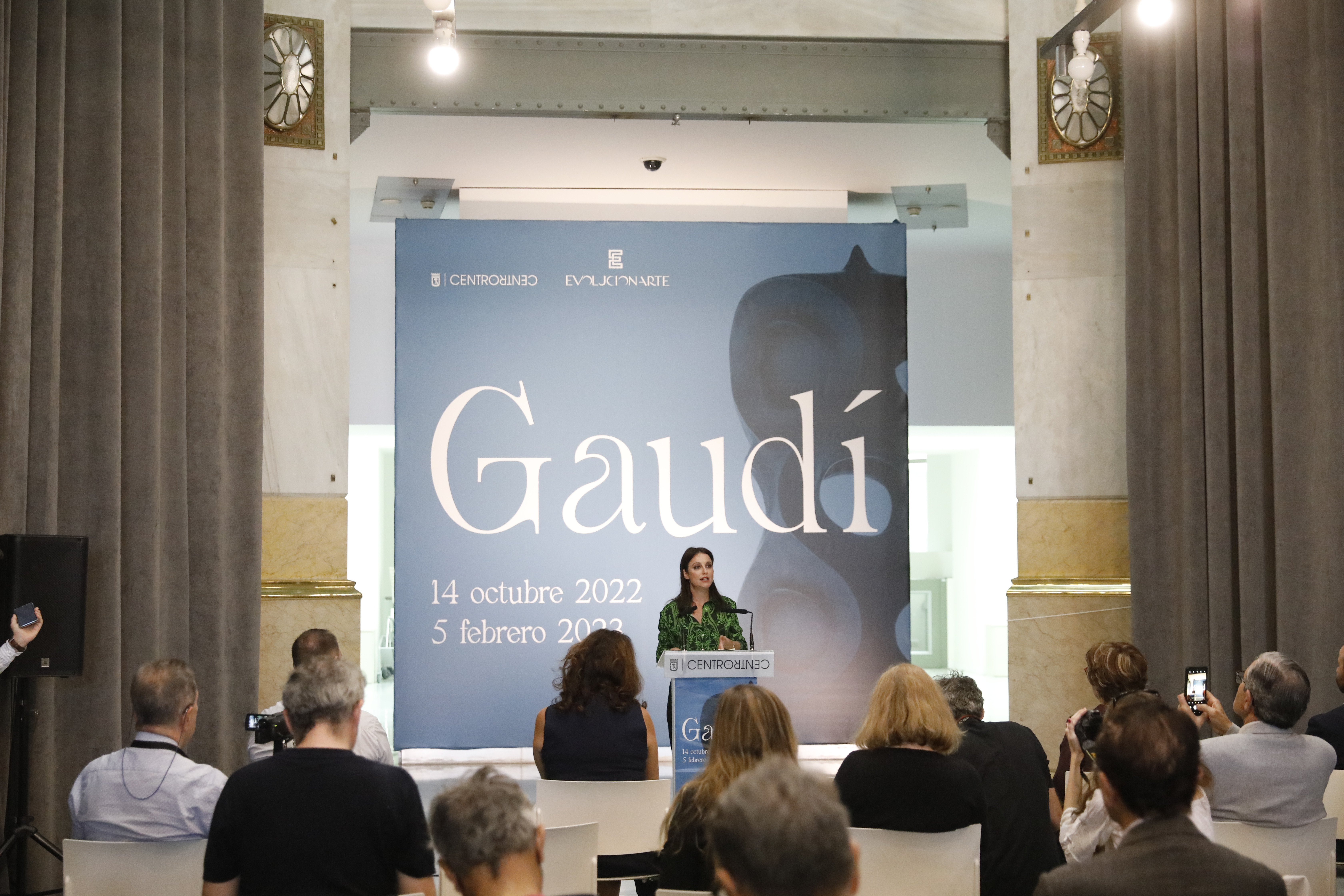 La delegada del Área de Cultura, Turismo y Deporte, Andrea Levy, ha presentado hoy en CentroCentro la exposición Gaudí. Organizada por Evolucionarte y CentroCentro y comisariada por Charo Sanjuán, podrá verse en este espacio cultural del Ayuntamiento de Madrid desde mañana hasta el 5 de febrero de 2023. Levy ha agradecido la colaboración a las instituciones públicas y privadas, museos, universidades, archivos, galeristas y coleccionistas privados, "sin los cuales esta exposición, la primera en veinte años que Madrid dedica a este creador, no hubiera sido posible".