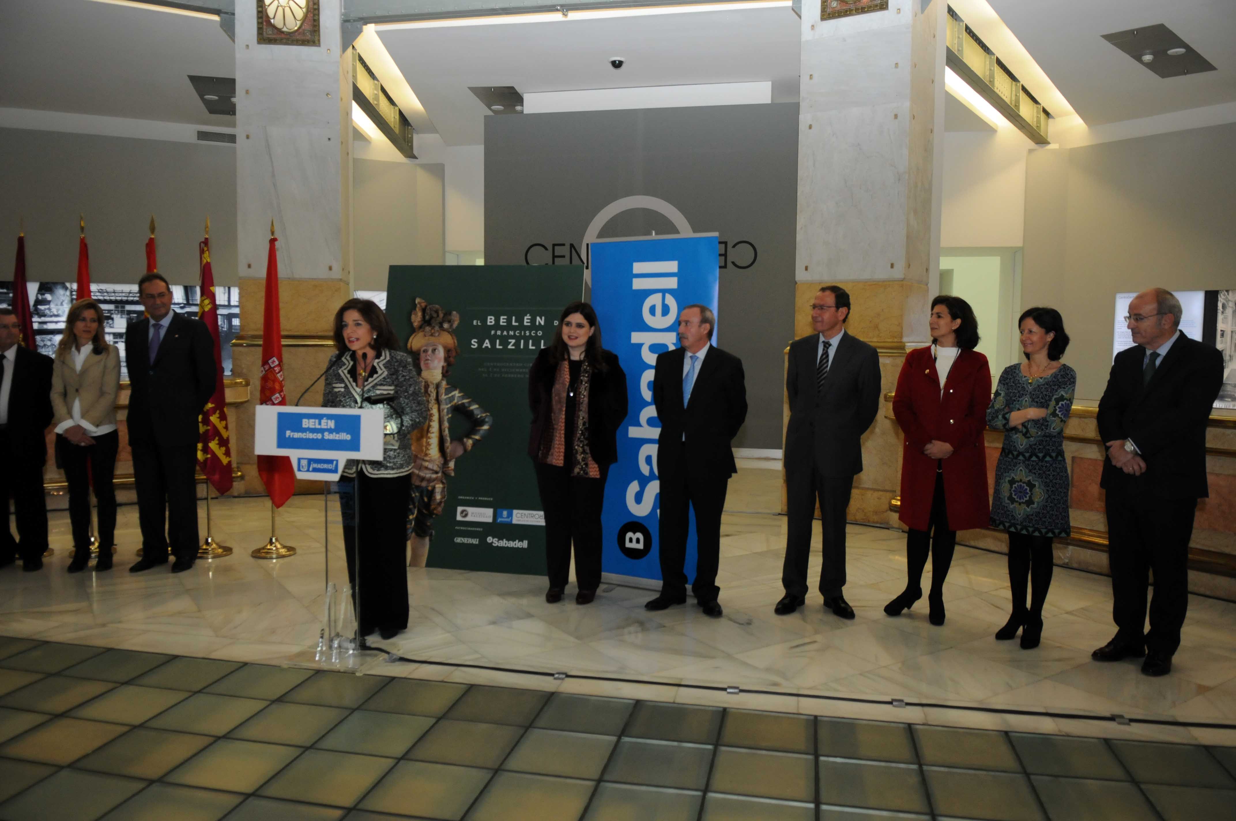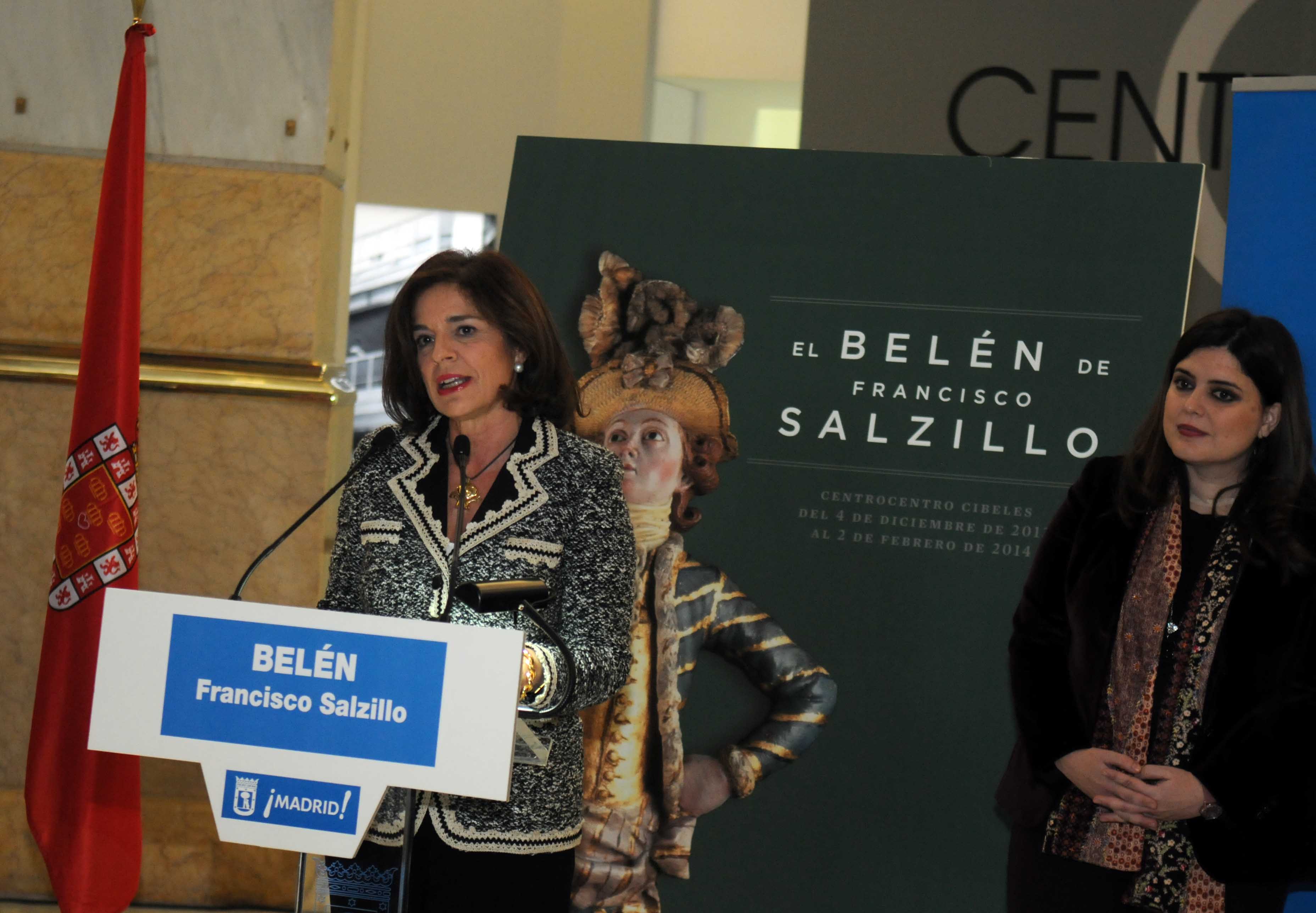La alcaldesa de Madrid, Ana Botella, junto con su homólogo de Murcia, Miguel Ángel Cámara, y el presidente de la Comisión Ejecutiva del Museo Salzillo, Antonio Gómez Fayrén, han inaugurado esta mañana la exposición del Belén de Francisco Salzillo, que se podrá visitar desde hoy y hasta el próximo 2 de febrero en la planta principal de CentroCentro Cibeles. Botella ha señalado que "se trata de uno de los conjuntos escultóricos sobre la Navidad más señalados de la historia del arte español, y está declarado Patrimonio Cultural Nacional, por lo que es un orgullo poder exhibirlo en estas instalaciones municipales".