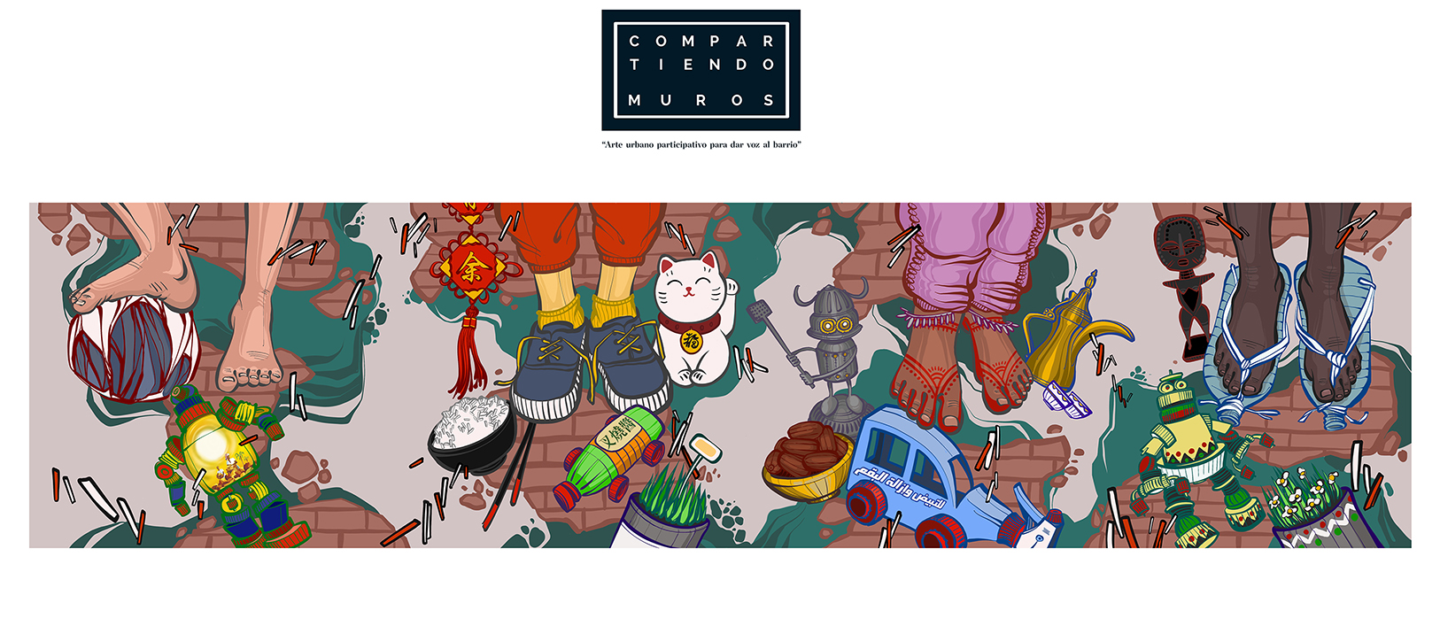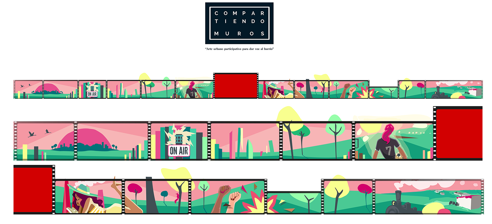 Con el programa ‘Compartiendo muros’, el Ayuntamiento de Madrid persigue que la ciudadanía se identifique con el espacio público y participe en su embellecimiento a través de intervenciones artísticas que reflejen el imaginario colectivo del distrito, sus señas de identidad. Por eso es tan importante que hayan sido los propios vecinos y vecinas los que han sugerido los temas del mural y también que vayan a participar en su realización.