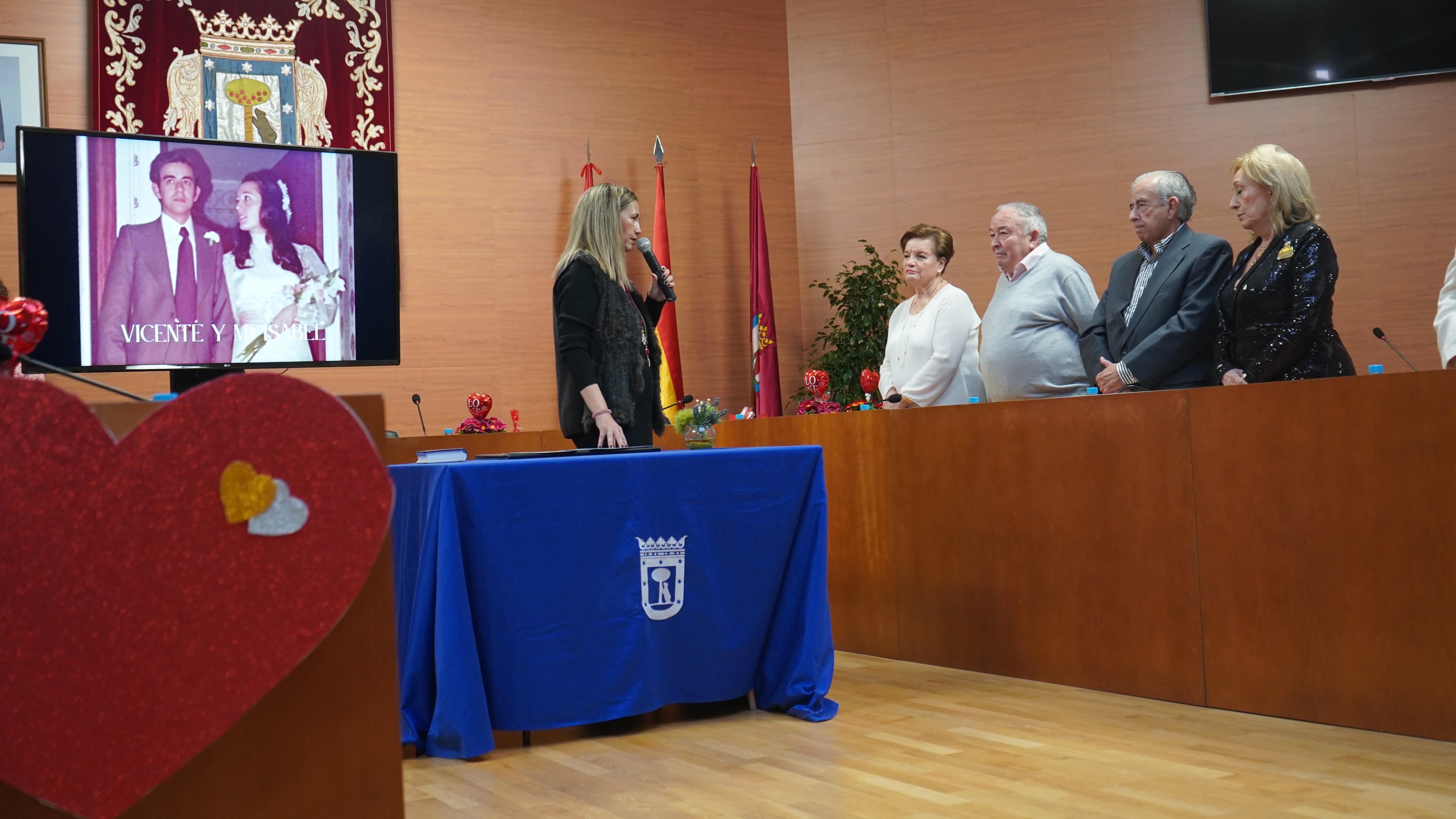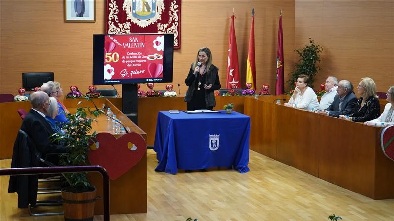 Con motivo de la celebración de San Valentín, cinco parejas de Chamartín, socios de los centros municipales de mayores, han renovado sus votos nupciales durante un homenaje a las parejas que cumplen sus bodas de oro este año. La ceremonia ha sido oficiada por la concejala del distrito, Yolanda Estrada, en el salón de actos de la junta municipal, decorado especialmente para la ocasión y con la presencia de una treintena de personas entre familiares, amigos y socios de los centros.