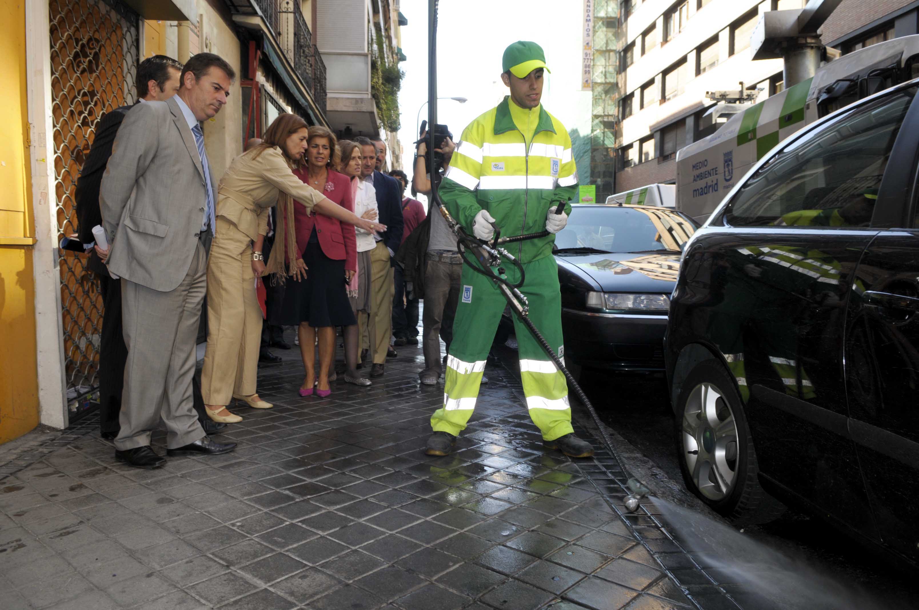 "La ampliación de los contratos para estas labores ha sido fundamental para mejorar la limpieza de la ciudad", afirmó Botella. Y puso como ejemplo el distrito objeto de su visita: Chamberí, cuyo nuevo contrato es de 81 millones de euros para los próximos seis años. Con este presupuesto se ha aumentado la plantilla en un 50% y se ha incrementado en un 60% la inversión en maquinaría con la tecnología más avanzada para reducir el ruido y la contaminación. También ha repercutido en la mejora de la limpieza en las zonas de ocio, ya que se ha creado un nuevo turno de trabajo durante los fines de semana y festivos. Ahora la limpieza se inicia a las 5 de la mañana, dos horas antes del horario que había antes.